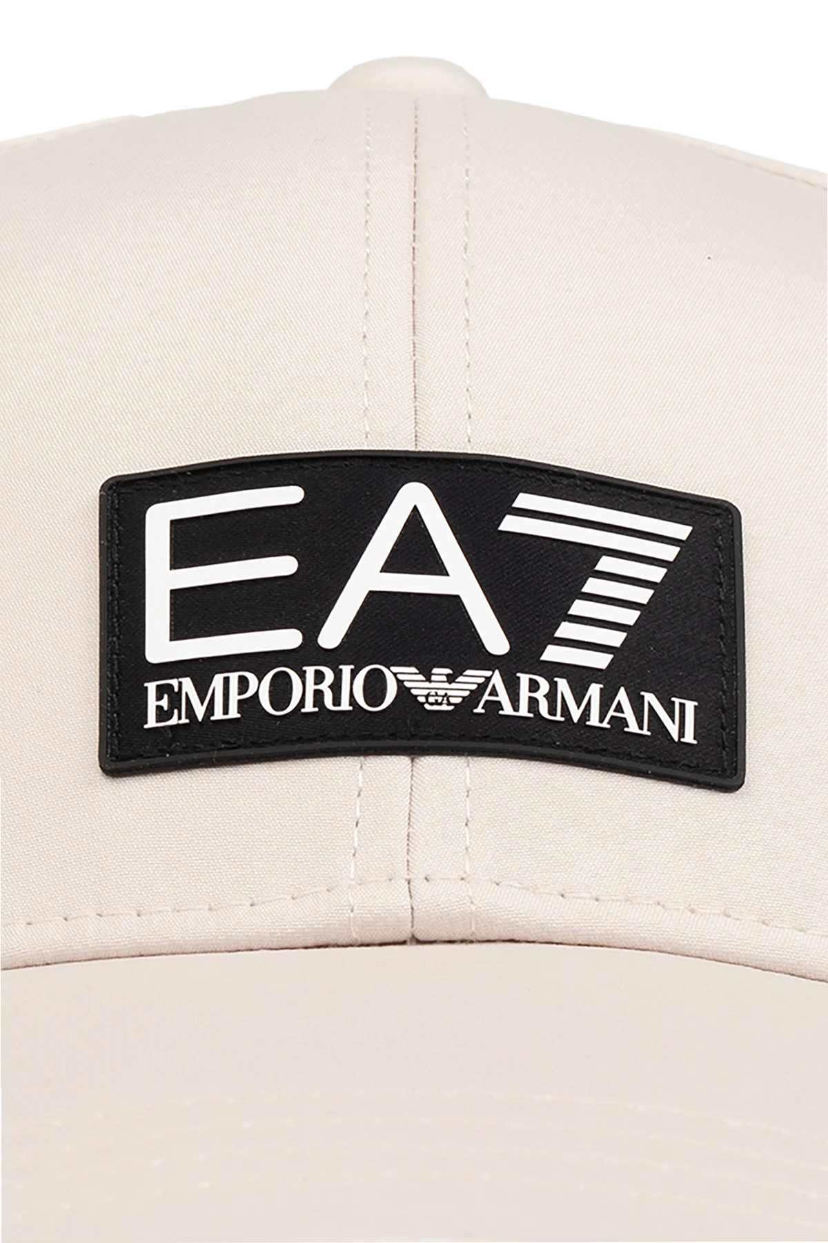 Discover the epitome of luxurious accessorizing with the EA7 Emporio Armani Cap from the esteemed \'Sustainability\' collection. Crafted with an eye for detail and a commitment to eco-conscious fashion, this cap is more than just a statement piece; it\'s a testament to the harmonious blend of style and sustainability. Made from a sophisticated blend of 97% polyester and 3% elastane, this cap offers a smooth, uniform appearance in a chic cream hue, epitomizing minimalist elegance. Its well-defined shape, featuring a rounded visor to shield your eyes from the sun, and a deeper back for a snug fit, accentuates the modern silhouette. The front boasts a striking, rectangular, contrasting patch adorned with the iconic \"EA\" logo and the name \"Emporio Armani,\" set against a black rubber background. This signature detail elevates the cap\'s allure, making it an exclusive accessory for those with discerning taste. A silver-toned buckle on the adjustable strap ensures a perfect fit, marrying functionality with Armani’s signature aesthetic. Why invest in this cap? Eco-friendly Fashion: A part of the \'Sustainability\' collection, it represents a step towards a more sustainable wardrobe. Unmatched Quality: Crafted from high-quality materials for durability and comfort. Iconic Branding: Features the distinguished Emporio Armani logo, a symbol of luxury and sophistication. Versatile Style: Its cream color and sleek design make it a versatile addition to any outfit. Adjustable Fit: The silver-toned buckle and strap allow for a personalized fit.