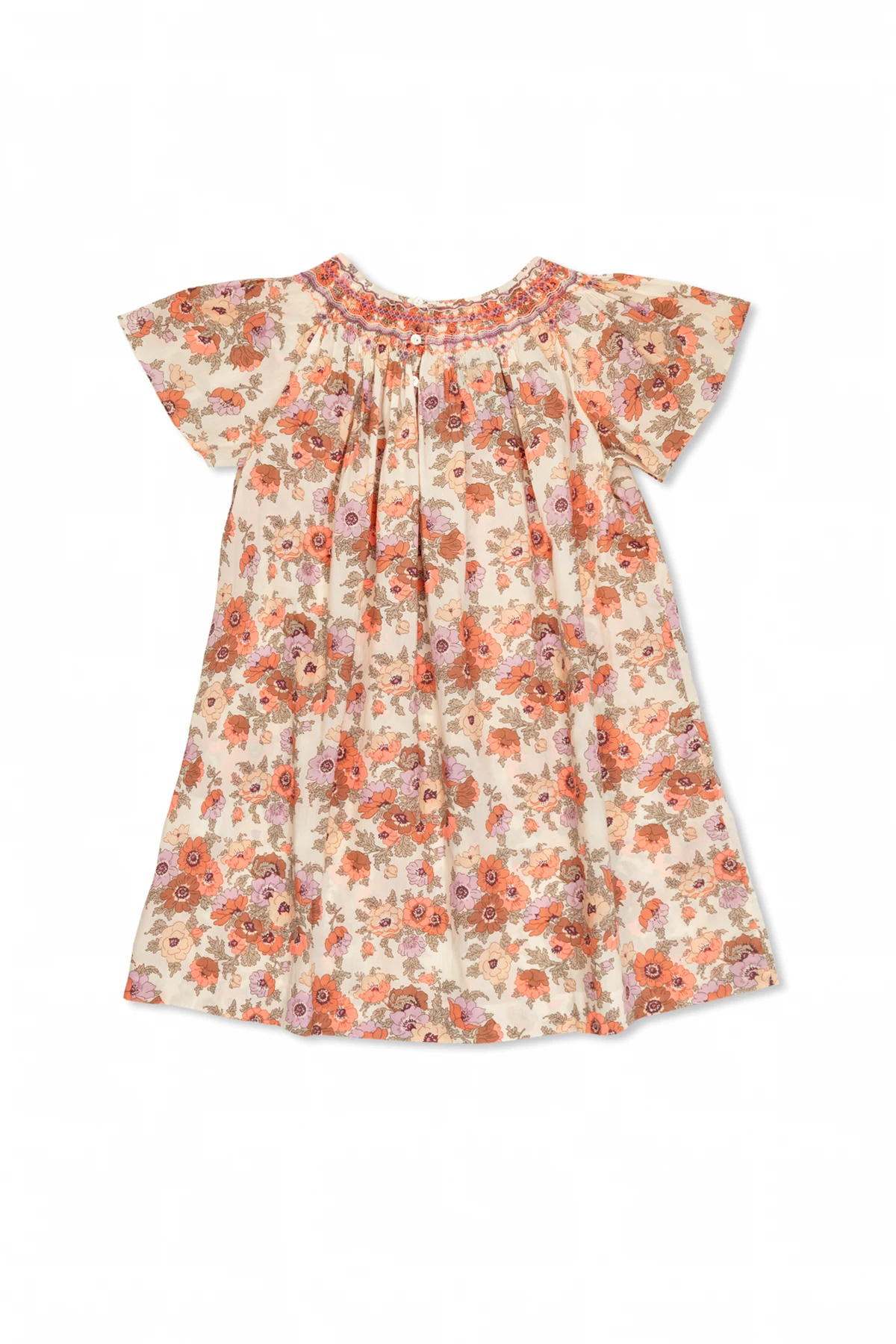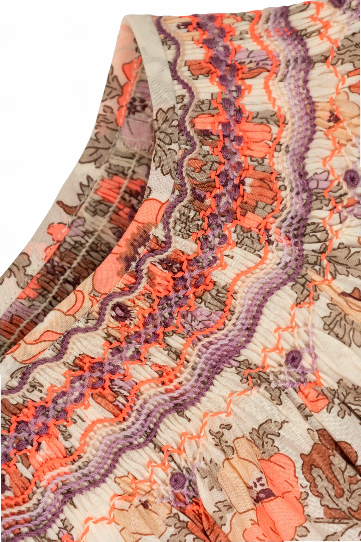 Introducing the Arlene Dress from Bonpoint\'s exclusive collection, a testament to refined elegance and comfort for young fashion enthusiasts. This multicolored dress, adorned with a charming floral motif, gracefully marries vibrant shades of orange, pink, purple, and brown against a light backdrop, exuding a playful yet sophisticated aura. Crafted from lightweight, breathable cotton, the dress features a simple, loose silhouette with short sleeves, enhanced by delicate gathers at the neckline. Exquisite embroidery and gathers in contrasting orange and purple around the neckline add a touch of unique elegance. The Arlene Dress not only exemplifies the timeless and luxurious aesthetics of the esteemed French brand Bonpoint but also ensures ultimate comfort, making it perfect for various occasions for girls aged 4-14. Why Choose This Product? Exclusive floral design with vibrant colors. Lightweight cotton for comfort in warm weather. Elegant details with unique embroidery and gathers. Renowned Bonpoint craftsmanship and quality.