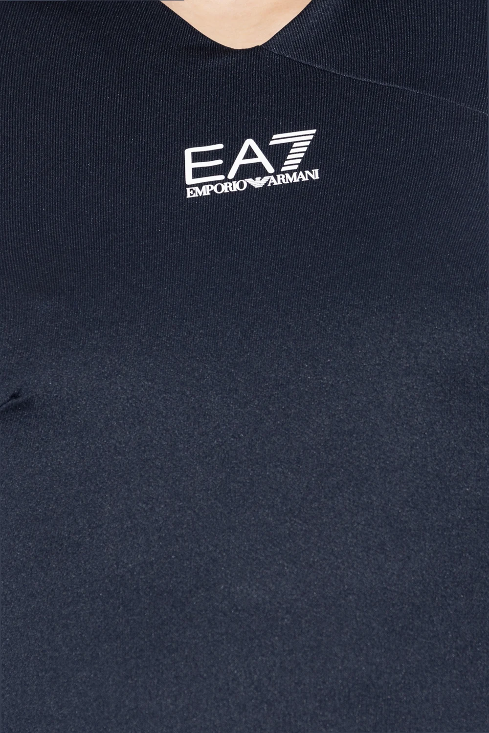 Dark navy sleeveless dress and training shorts set with an elastic waistband and white logo print from EA7 Emporio Armani. Crafted with VENTUS7 – a flexible technical material offering the right amount of breathability, equipped with the Airduct technology and mesh inserts.