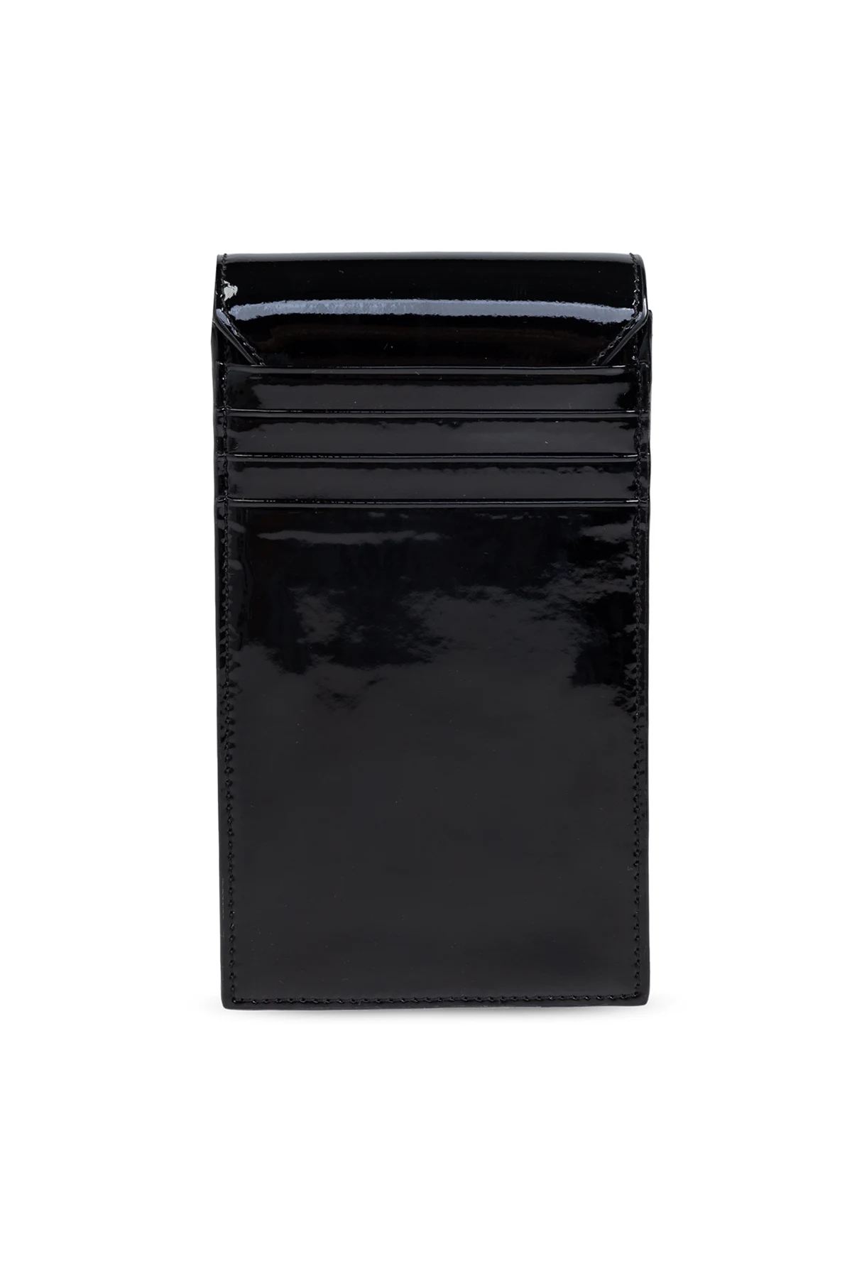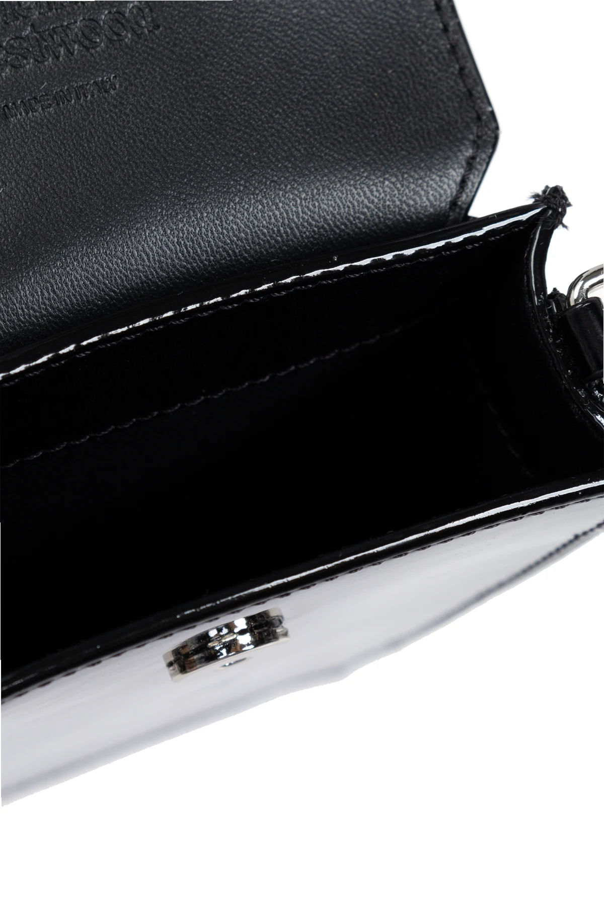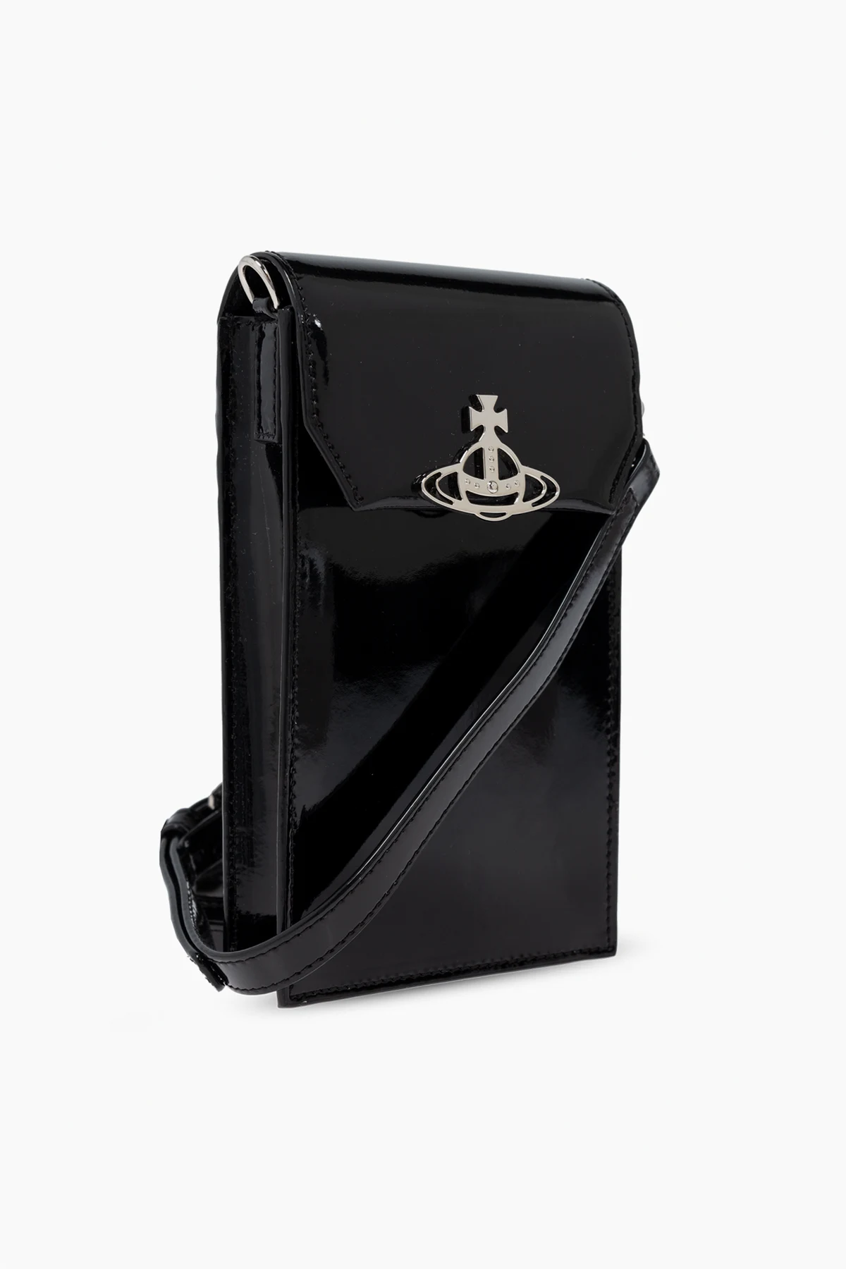 Introducing the epitome of sophistication and utility - the Vivienne Westwood Phone Case. Crafted with meticulous attention to detail, this accessory is fashioned from 100% genuine black, glossy leather that exudes an undeniable allure. The front of the case is adorned with the iconic silver anchor and cross logo set against a circle, a distinctive hallmark of the Vivienne Westwood brand, symbolizing luxury and exclusivity. The case boasts a rectangular silhouette with gracefully rounded corners at the top, enhanced by a simple, straight stitch along the upper flap, lending an additional layer of elegance. Its versatile design includes a thin, detachable strap, allowing it to be worn as a chic, small shoulder bag or slung across the body for a more casual look. On the reverse, a sleek, flat pocket offers a convenient space for storing cards or other small essentials. The interior, lined with 100% cotton, seamlessly combines functionality with aesthetic appeal, further distinguished by a magnetic closure and four slip pockets for optimal organization. Why Invest in This Product? Unparalleled blend of elegance and practicality. Signature Vivienne Westwood design for brand enthusiasts. High-quality materials - genuine leather and cotton. Versatile carrying options with a detachable strap. Ample storage with an additional pocket and four slip pockets.