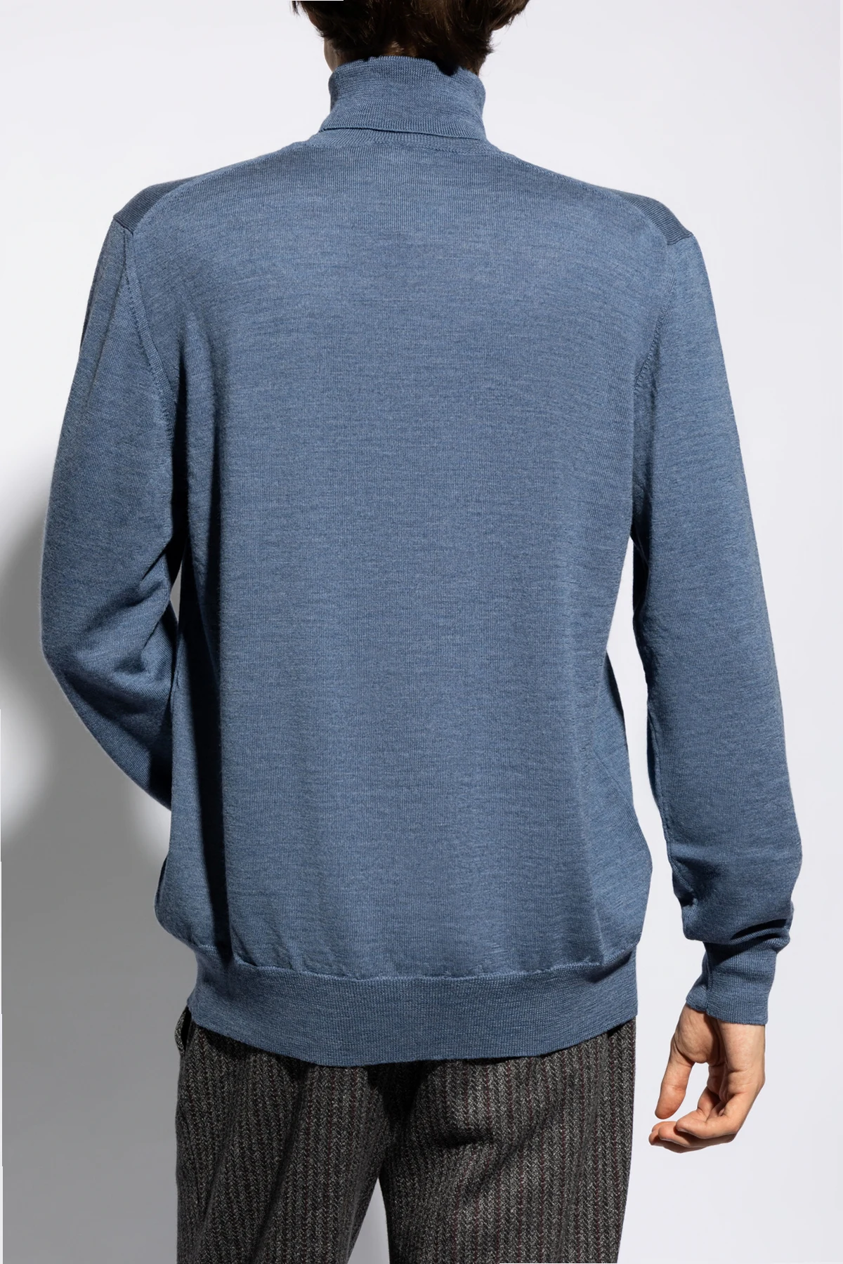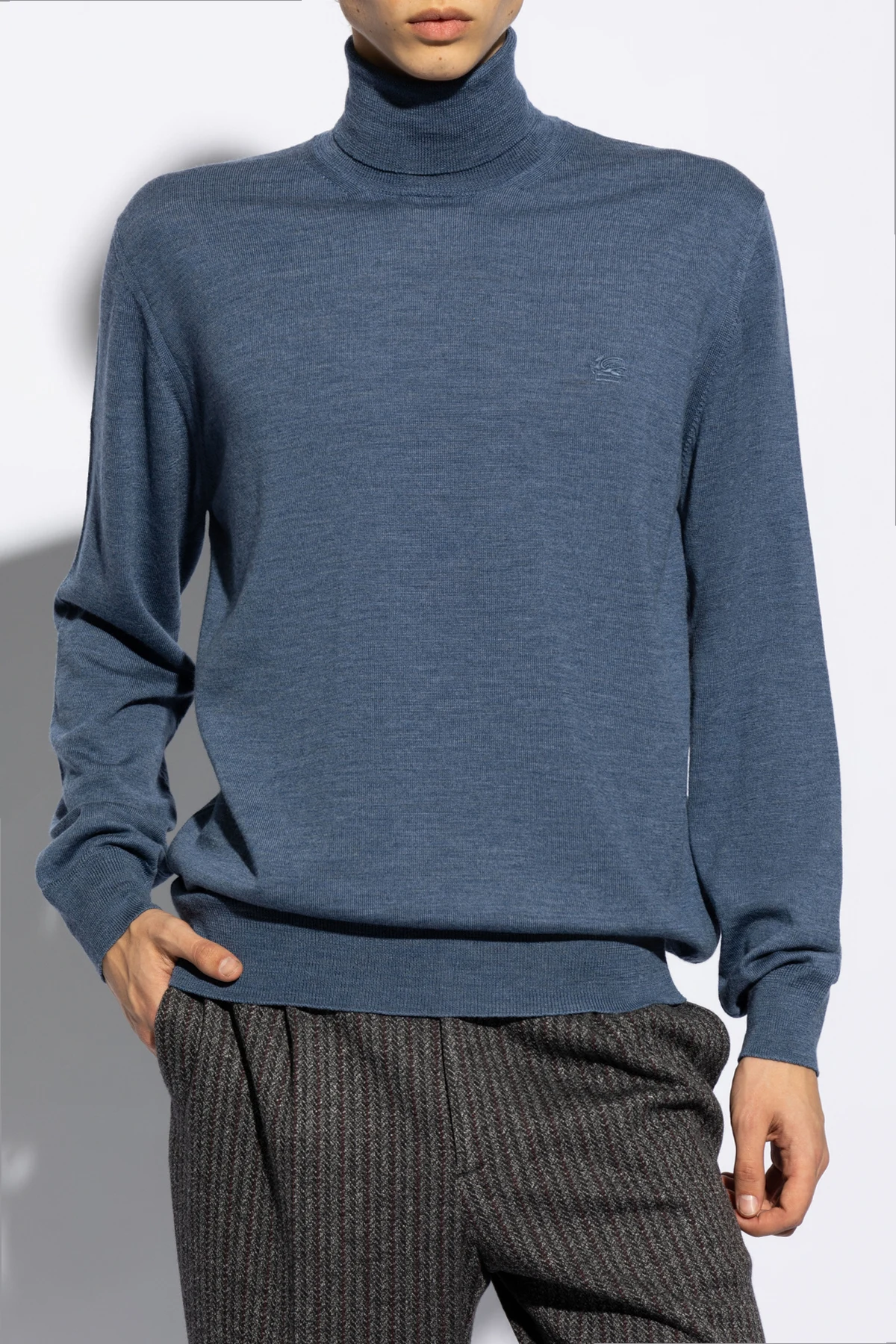 Introducing the quintessence of luxurious knitwear, Etro\'s Woolen Turtleneck in a mesmerizing shade of blue. This garment is a testament to the brand\'s commitment to excellence in craftsmanship and an unwavering dedication to quality. Fashioned from 100% premium wool, this turtleneck promises not only supreme comfort but also durability. The classic, round neckline epitomizes timeless elegance, making it a versatile addition to any wardrobe. Its sleeves and hem are delicately finished with ribbed cuffs, enhancing the sweater\'s flexibility and ensuring a flawless fit to the silhouette. A distinctive, yet subtle, designer logo adorns the chest, serving as a hallmark of the prestigious Etro brand. The fabric\'s thin and smooth texture, combined with its uniform blue color, underscores the meticulous selection of materials and attention to detail that are synonymous with exclusive fashion collections. This piece is not merely a garment but a statement of refined taste and sophistication. Why Purchase This Product? Exclusive Design: Signature Etro craftsmanship and aesthetic. Luxurious Material: Made from high-quality, 100% wool for comfort and durability. Versatile Elegance: Classic styling with a modern twist, perfect for any occasion. Brand Recognition: Subtle designer logo for an added touch of luxury.