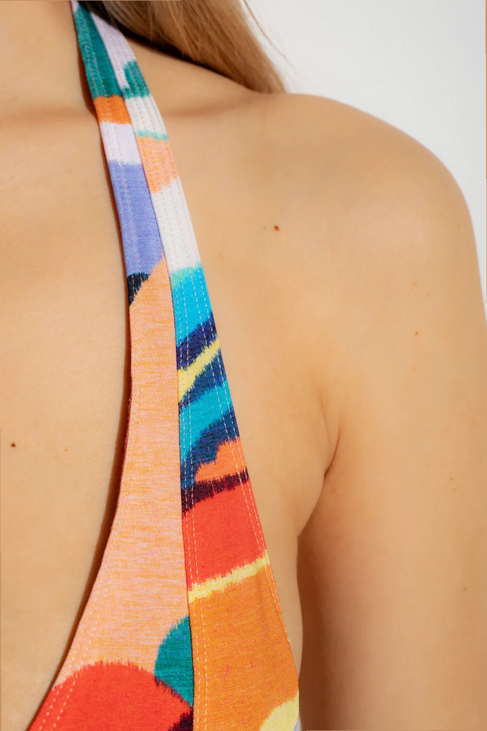 Multicoloured bikini top from Forte Forte. Crafted from stretchy fabric, this style showcases the brand\'s ‘Up Above In The Sky’ pattern and tie closures on the back and neck.