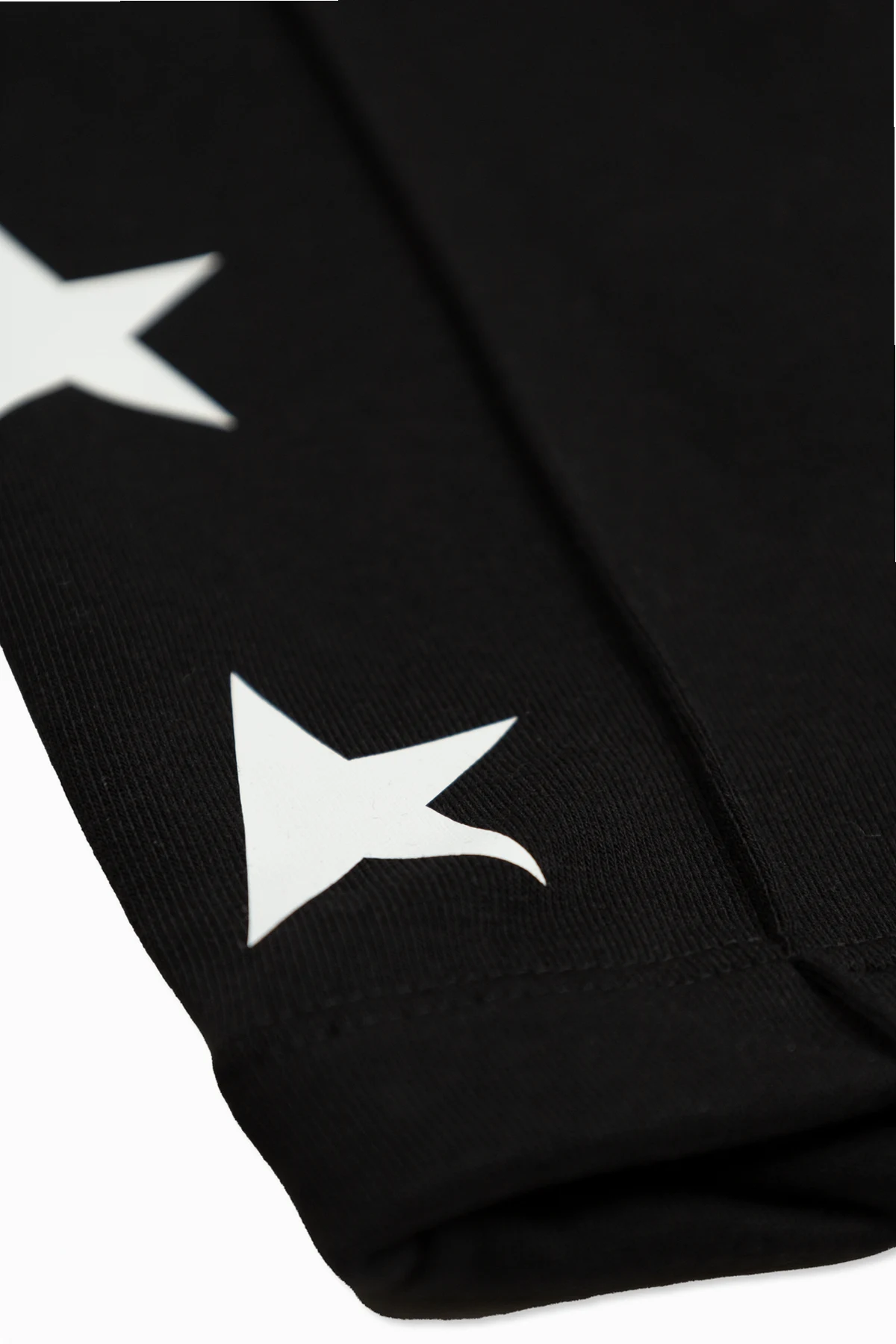 Introducing the Golden Goose Kids Track Pants, a quintessential piece from the exclusive collection of the renowned Italian brand, Golden Goose. Meticulously crafted for young fashionistas aged 4-14, these black track pants embody the perfect harmony of style and comfort. Adorned with white star patterns along the sides of the legs, these pants boast a modern and trendy aesthetic. The fabric, a soft blend of cotton and elastane, ensures a comfortable fit while maintaining durability. The simplistic design is enhanced by the absence of a visible designer logo, emphasizing its minimalist allure. The straight cut and elastic waistband offer ease of movement, while the side pockets add a touch of practicality. As a testament to Golden Goose\'s dedication to quality and detail, these pants reflect the brand\'s unique blend of urban chic with a vintage twist. Dlaczego warto kupić ten produkt? Iconic design with signature star motifs. Luxurious comfort from high-quality materials. Practical with functional side pockets. Perfect for stylish young individuals. Minimalist elegance without a visible logo.