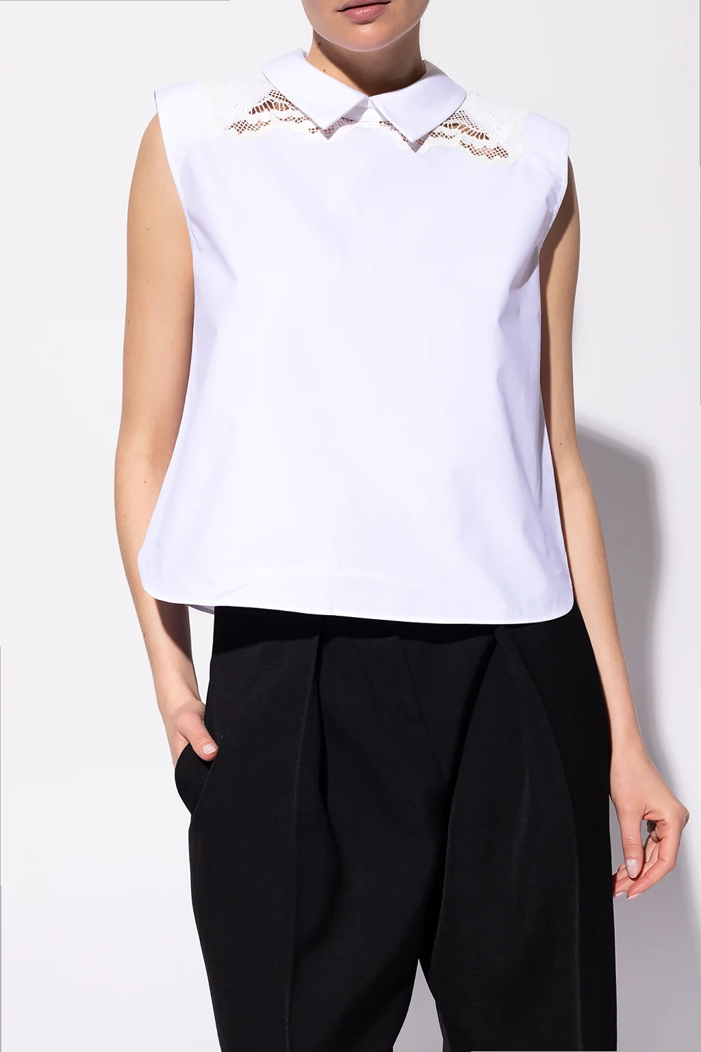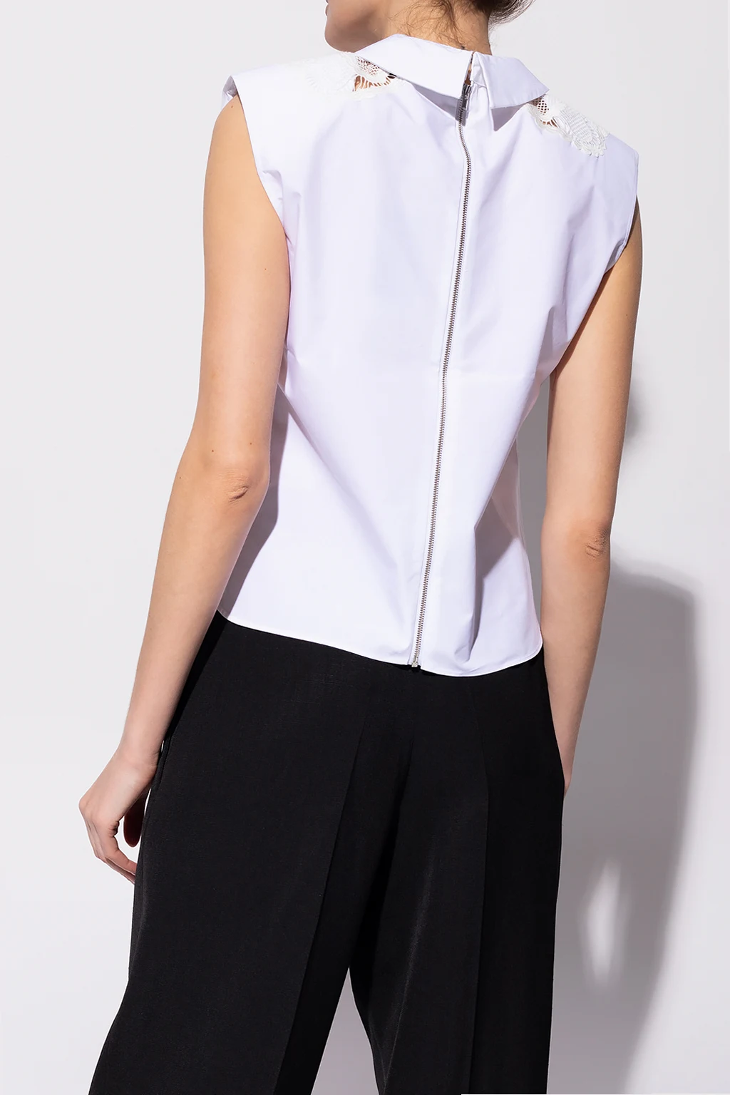 White sleeveless top from Self Portrait. Crafted from cotton, this style features a zip and hook & eye closures at the back and decorative openwork-embroidered details.