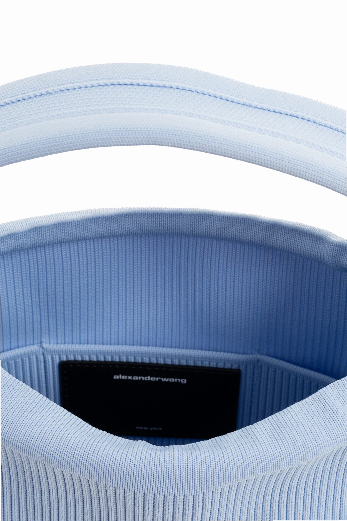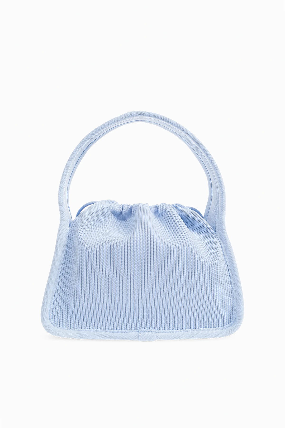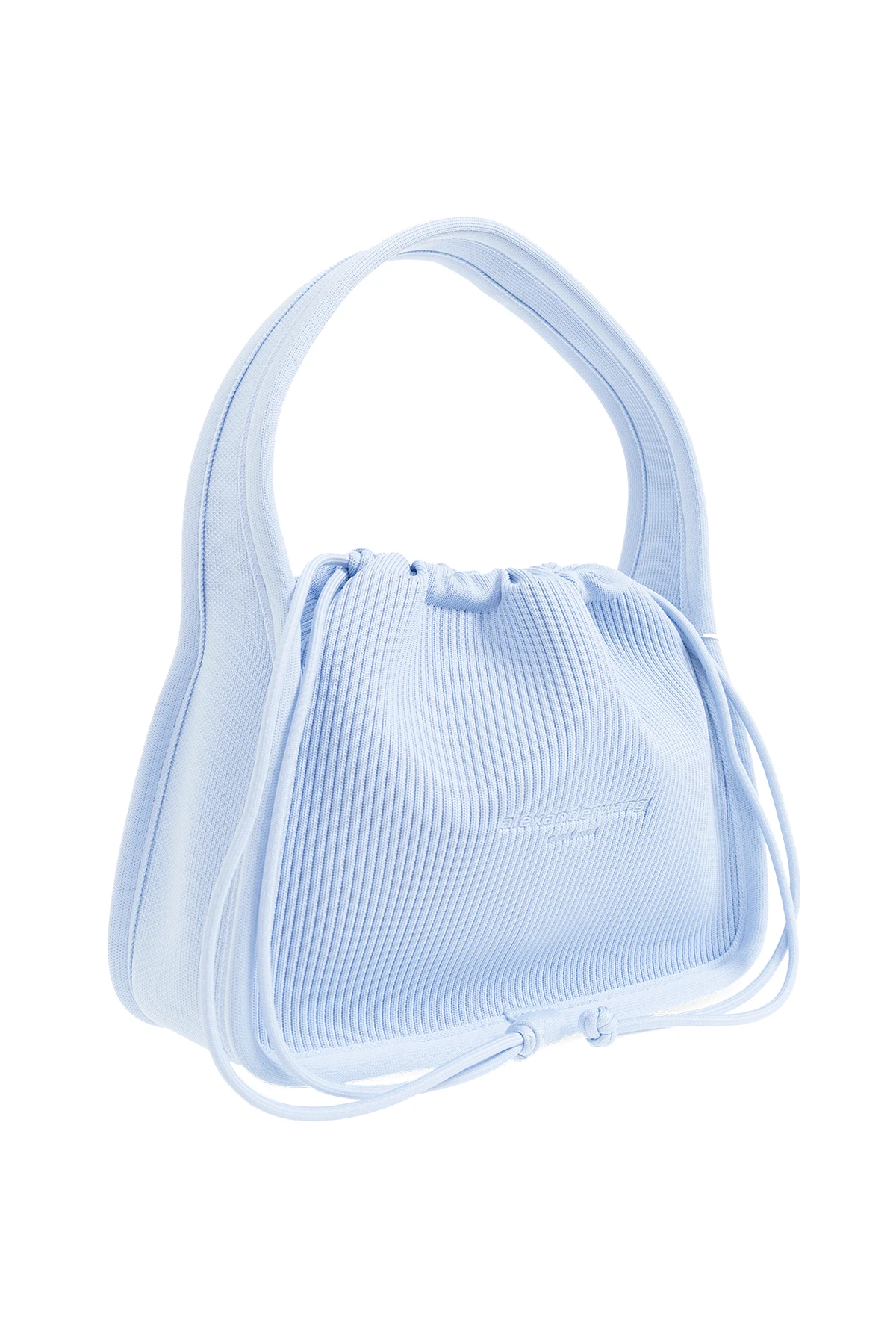 Blue ribbed ‘Ryan Small’ shoulder bag from Alexander Wang. Made of fabric, this design features an embroidered logo pattern, shoulder strap and one internal compartment with drawstrings and one slip pocket.