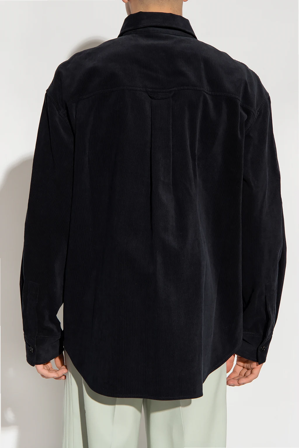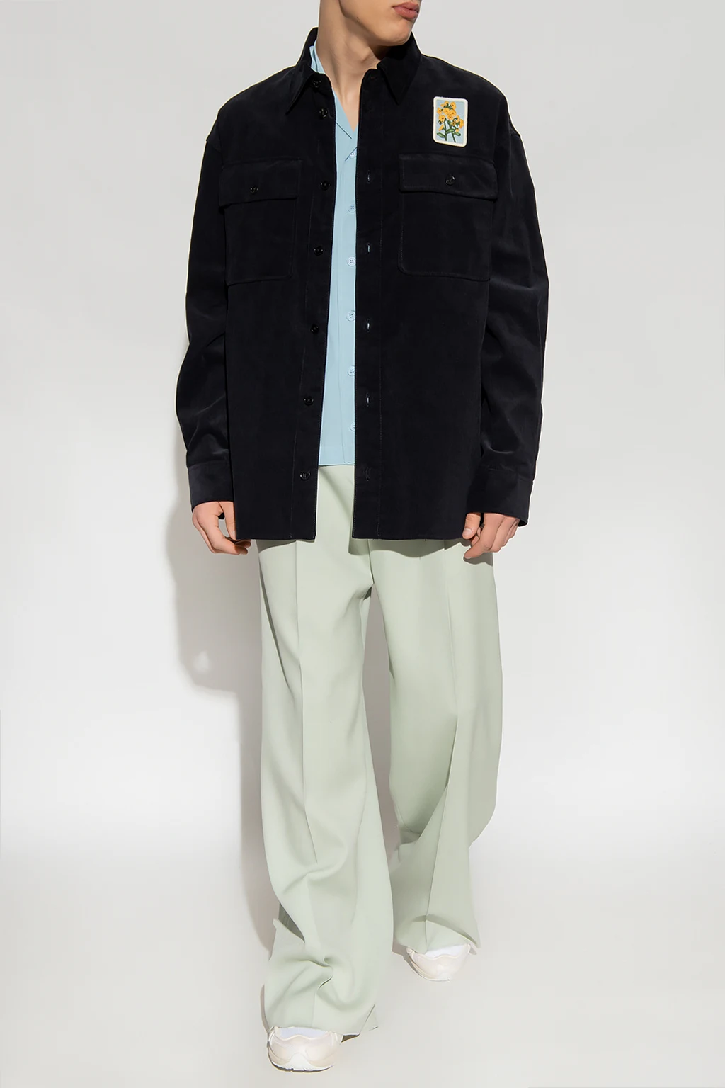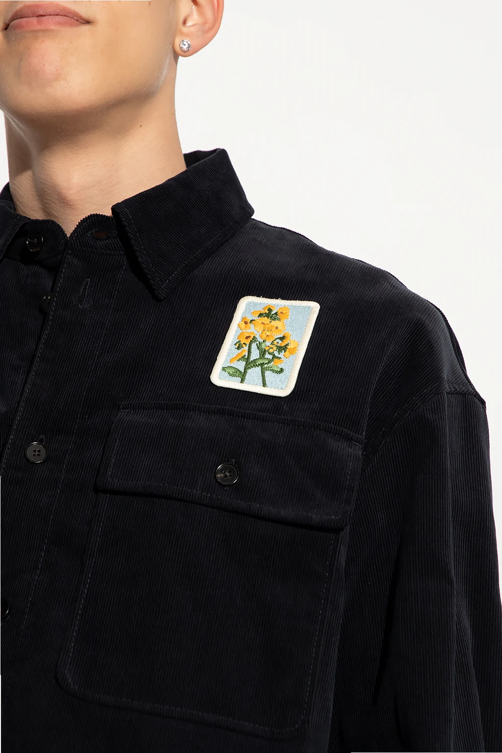 Dark navy shirt from Jil Sander. Made of corduroy, this design features button fastenings, a multicolored floral embroidery, two buttoned flap pockets and long sleeves with buttoned cuffs.