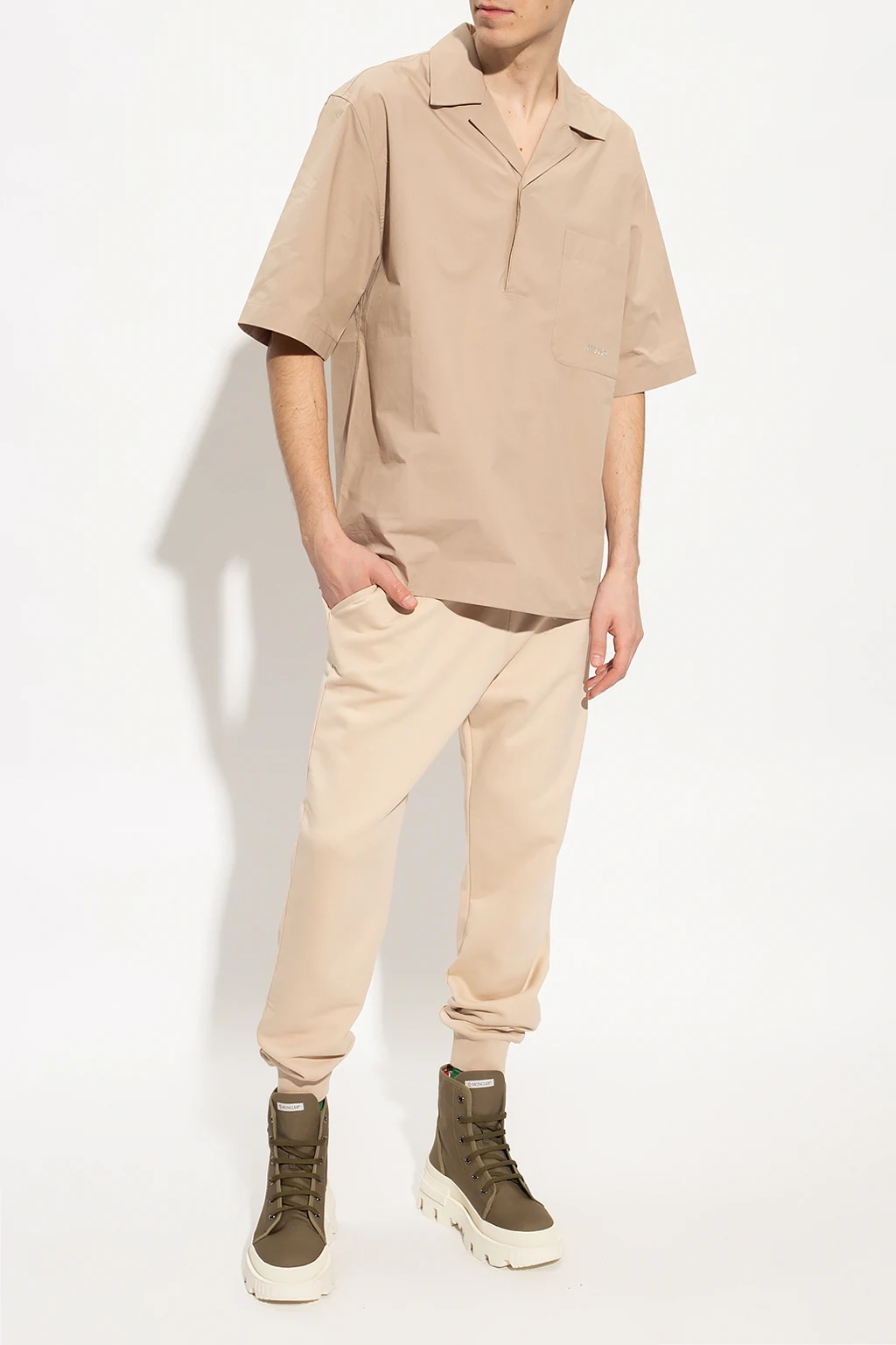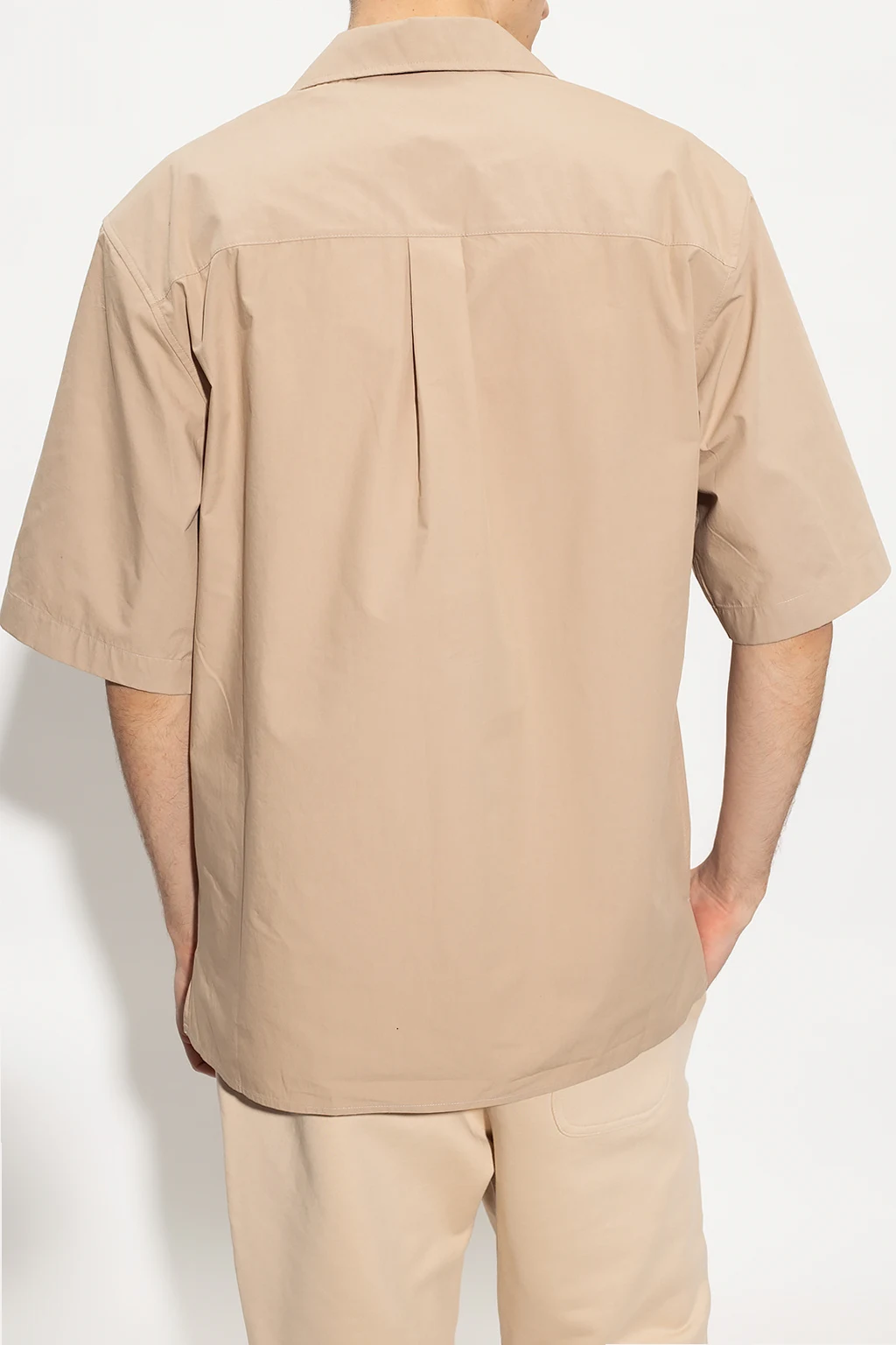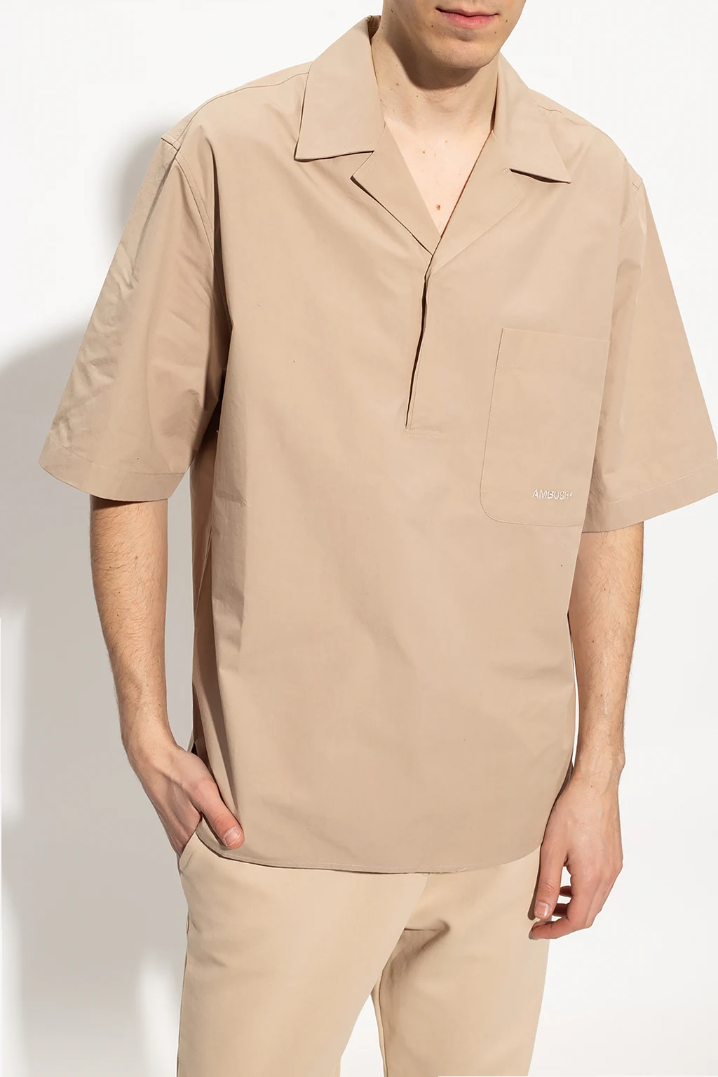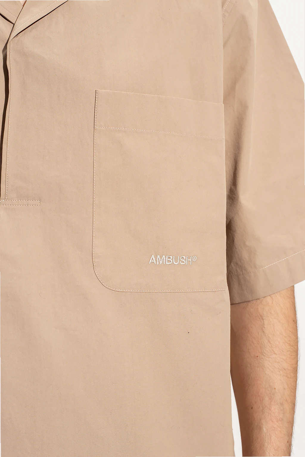 Beige shirt from Ambush. Made of cotton, this short sleeve design features button fastenings, a logo embroidery, notch lapels and slip pocket.