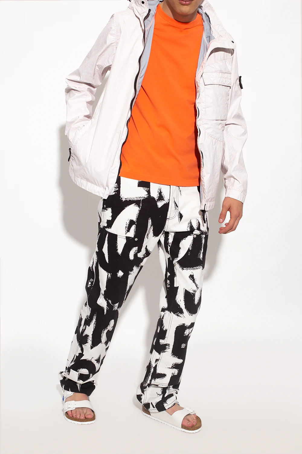 White ‘Milano’ sandals from BIRKENSTOCK x ADERERROR. Crafted from leather, this pair features an adjustable strap with a logo-embossed buckle, snap fastenings at the back as well as a white and brown sole made of cork and EVA foam.