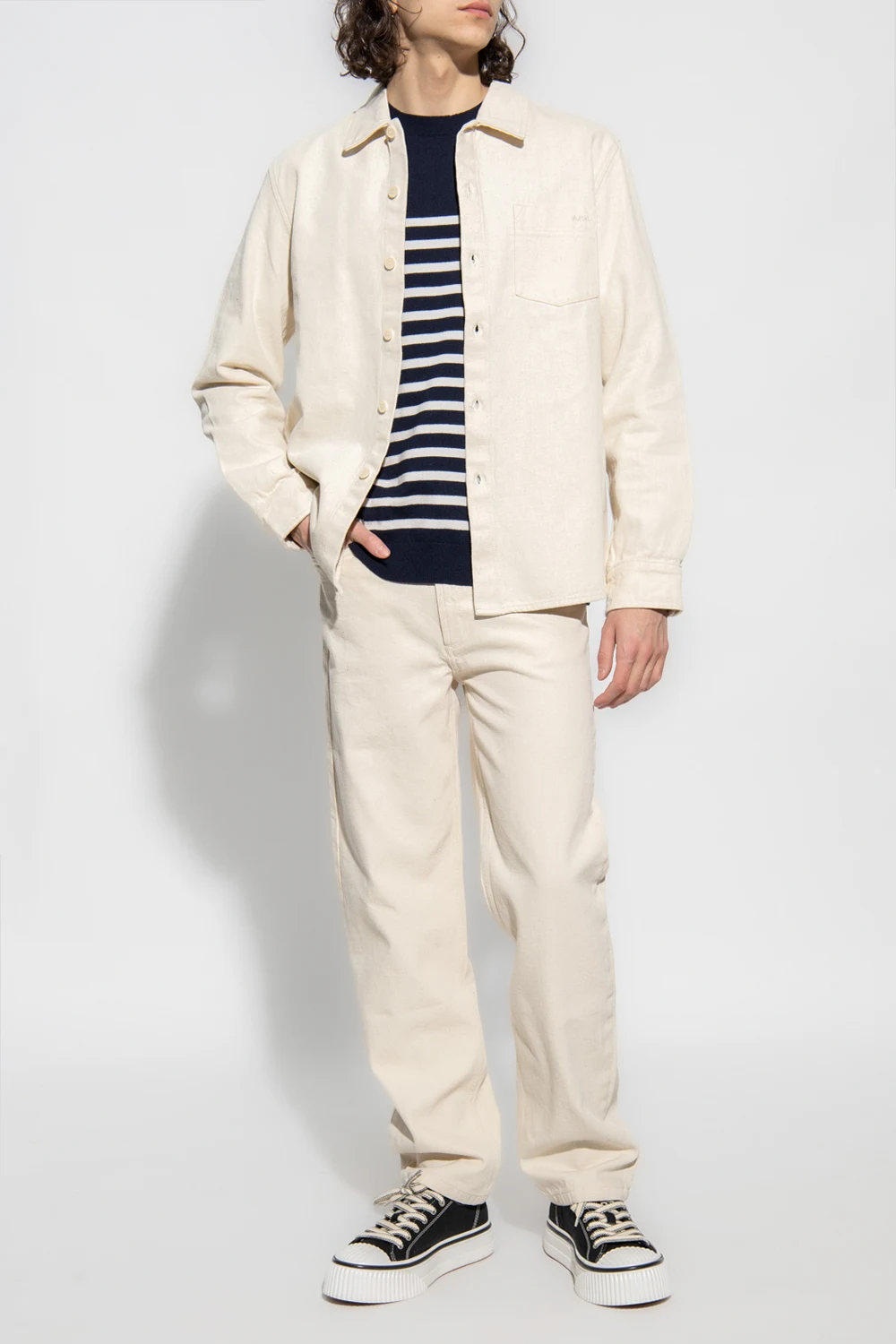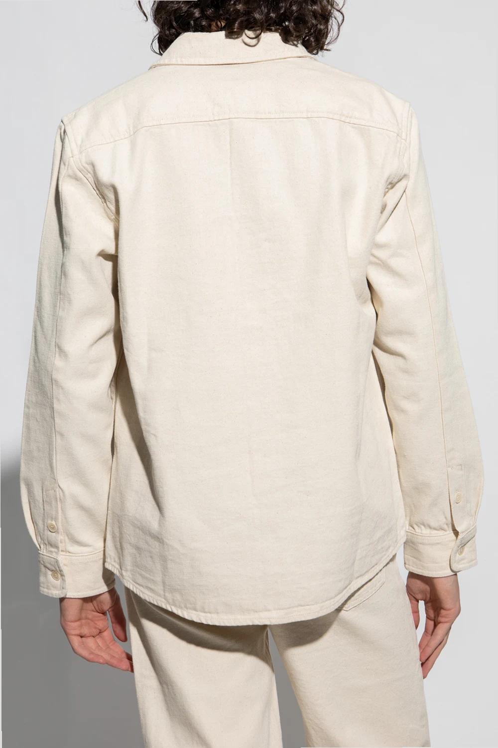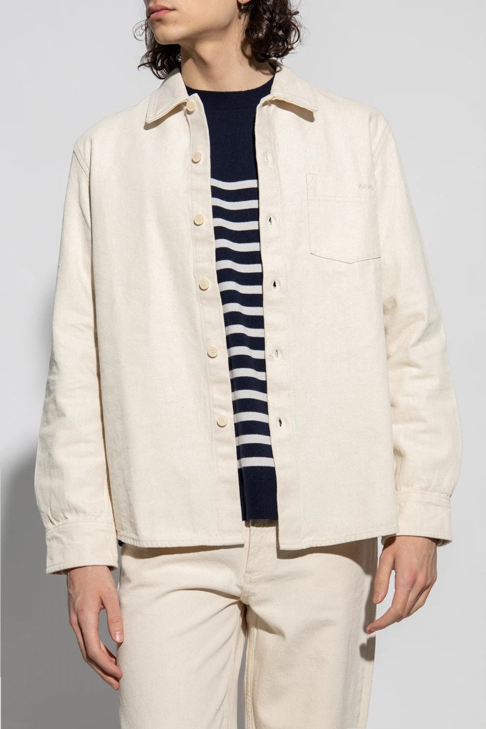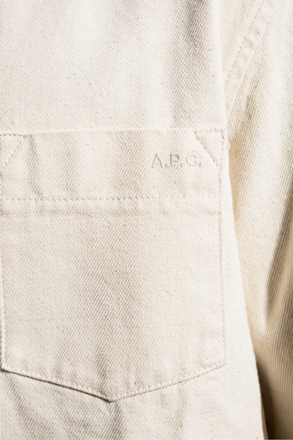 Cream shirt from A.P.C. Crafted from cotton, this style features an embroidered logo, button fastenings, a slip chest pocket and long sleeves with cuffs.