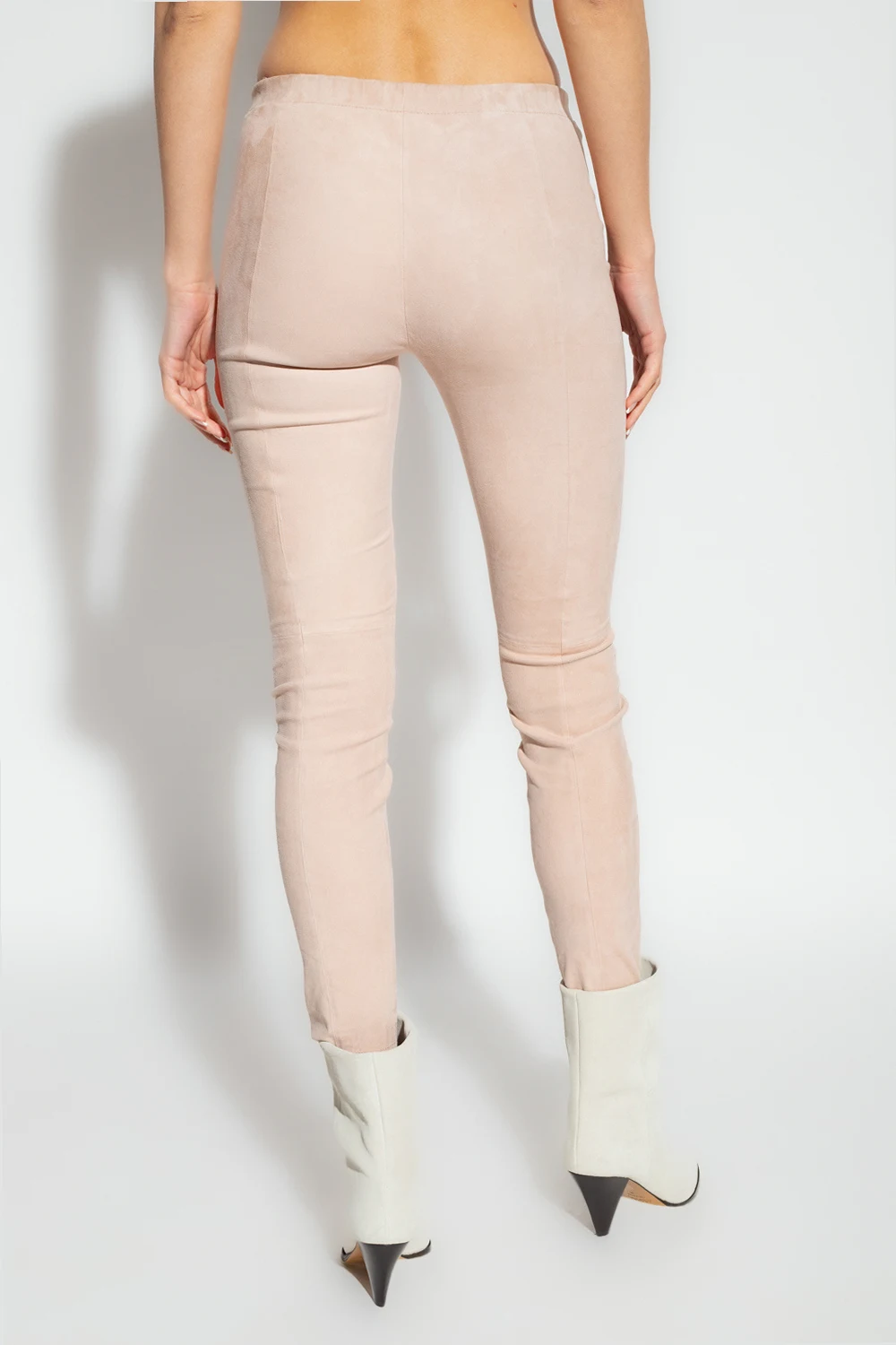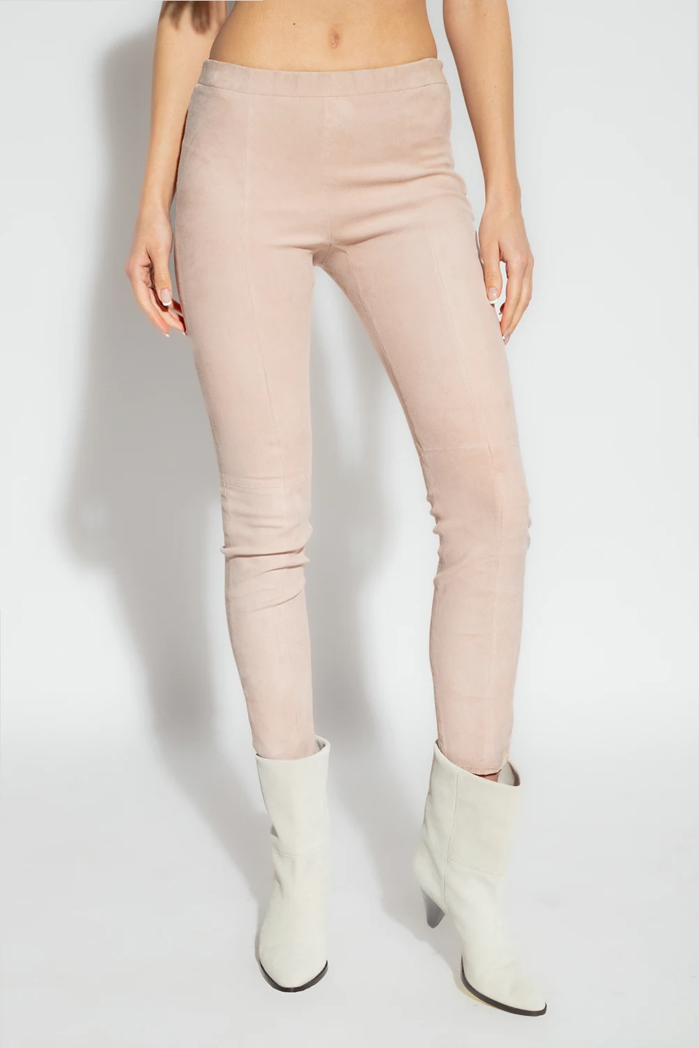 Blush pink trousers from Forte Forte. Made of suede, this pair features an elastic waistband, concealed side zip and tapered legs.