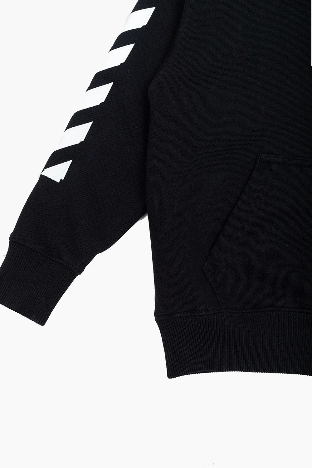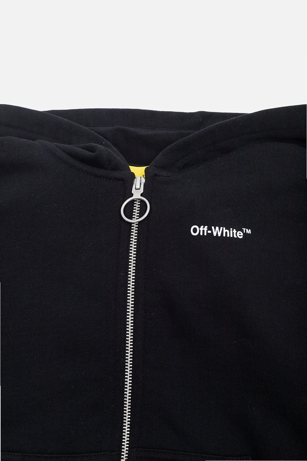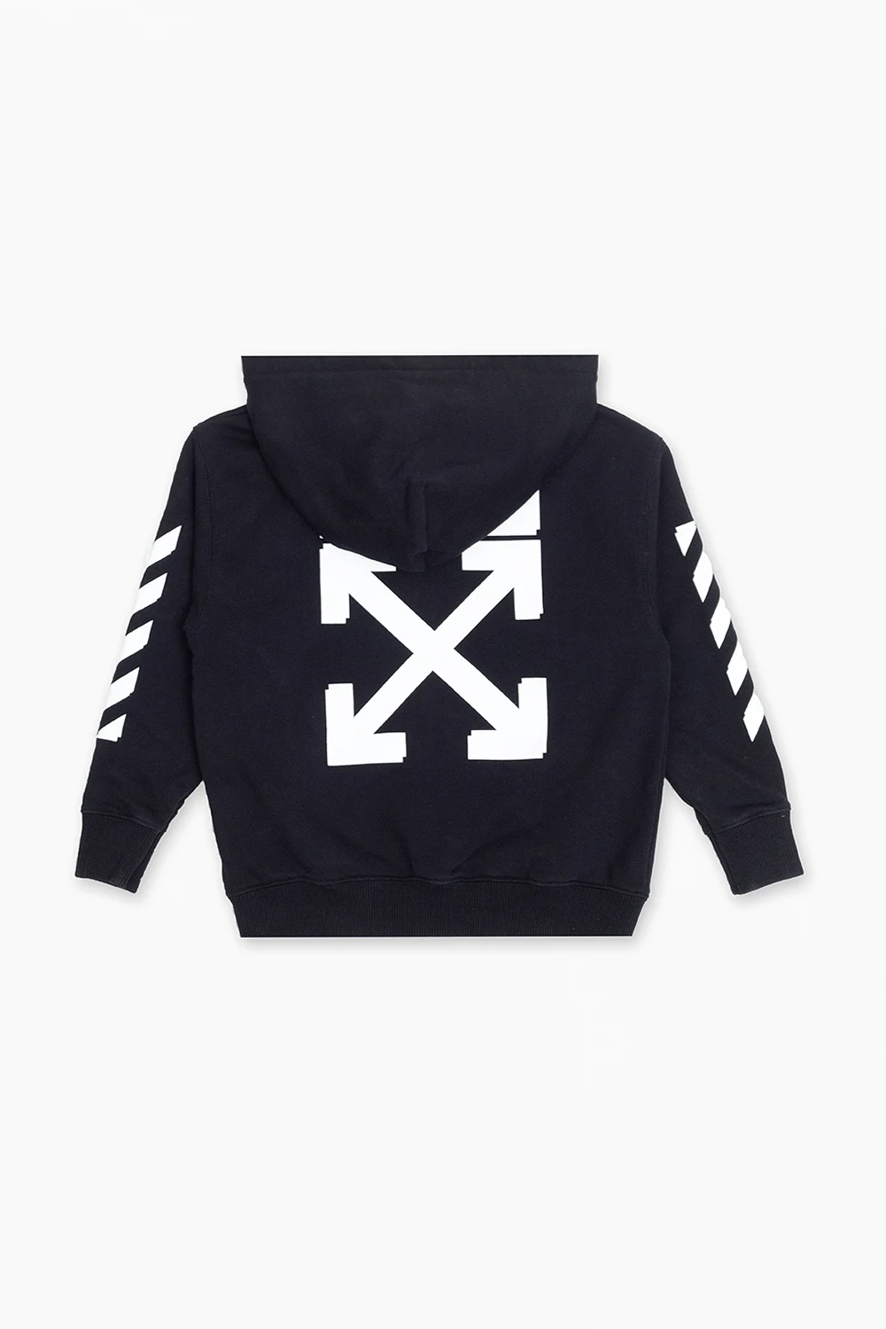 Black hoodie from Off-White Kids. Made of cotton, this style fastens with a zipper and features a printed white logo on the front, two pockets and ribbed trims on the bottom hem and long sleeves.