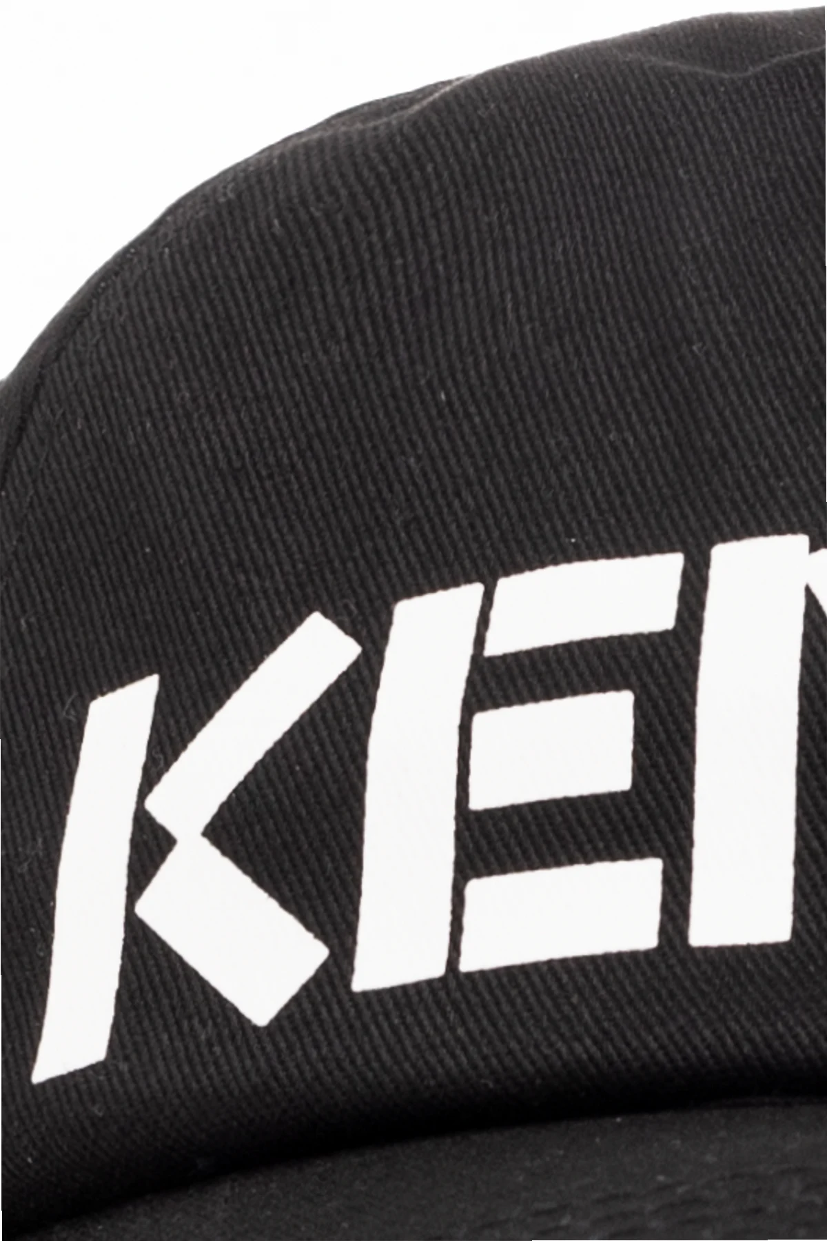 Black baseball cap from Kenzo. Made of cotton, this item adjusts via a back strap with a snap closure and showcases a white graphic logo print.