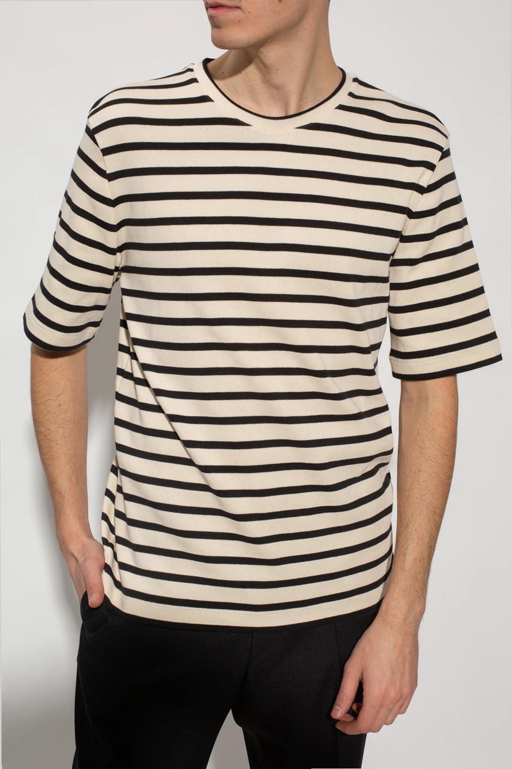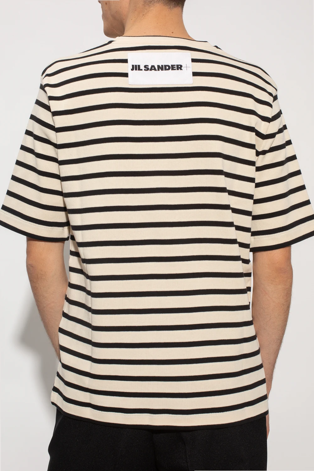 Black and cream crewneck T-shirt from Jil Sander+. Made of cotton, this style features short sleeves and a stripe pattern.