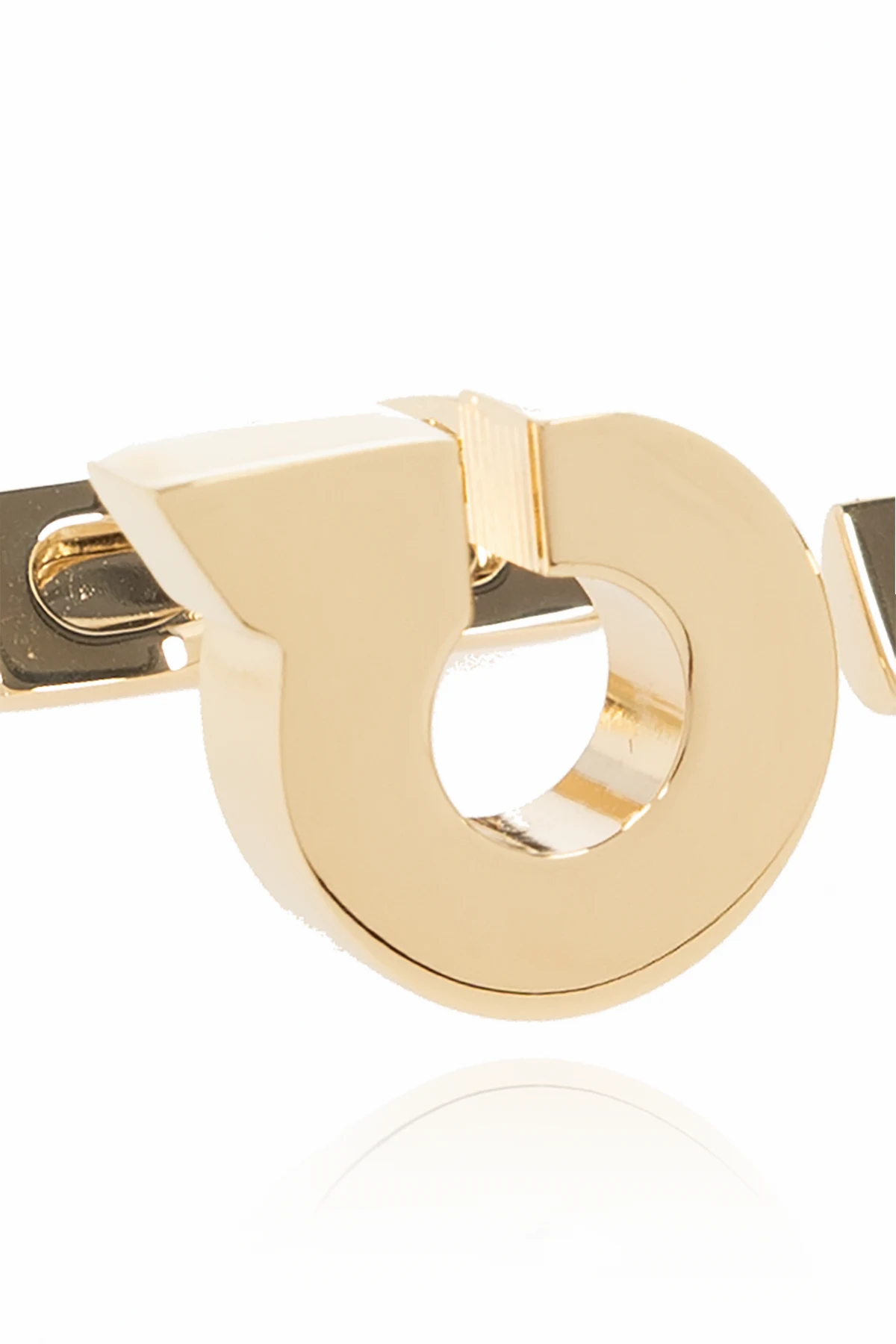 Introducing an exquisite addition to the discerning gentleman\'s accessory collection: the Ferragamo Cufflinks. Crafted with impeccable precision, these cufflinks boast a high-shine finish suggestive of premium gold or gold-plated brass, embodying luxury and sophistication. The distinctive feature of these cufflinks is their unique shape, each representing a letter from the Ferragamo logo, meticulously designed with geometric shapes and open areas, lending a modern and elegant flair. The attention to detail is evident in the smoothly finished edges and the seamless assembly, showcasing the high quality of craftsmanship. Equipped with a traditional fastening mechanism, these cufflinks are designed for easy attachment to shirt cuffs, ensuring both functionality and style. The additional images provide a closer look at the cufflinks from various angles and in use, highlighting the intricate details and superior construction. Why Purchase These Cufflinks? Exclusive Design: Feature the Ferragamo logo in an innovative and stylish manner. Luxurious Material: Made of high-quality gold or gold-plated brass for a lasting shine. Superior Craftsmanship: Smooth edges and flawless assembly reflect exquisite artistry. Iconic Branding: A strong connection to the Ferragamo brand, known for elegance and quality.