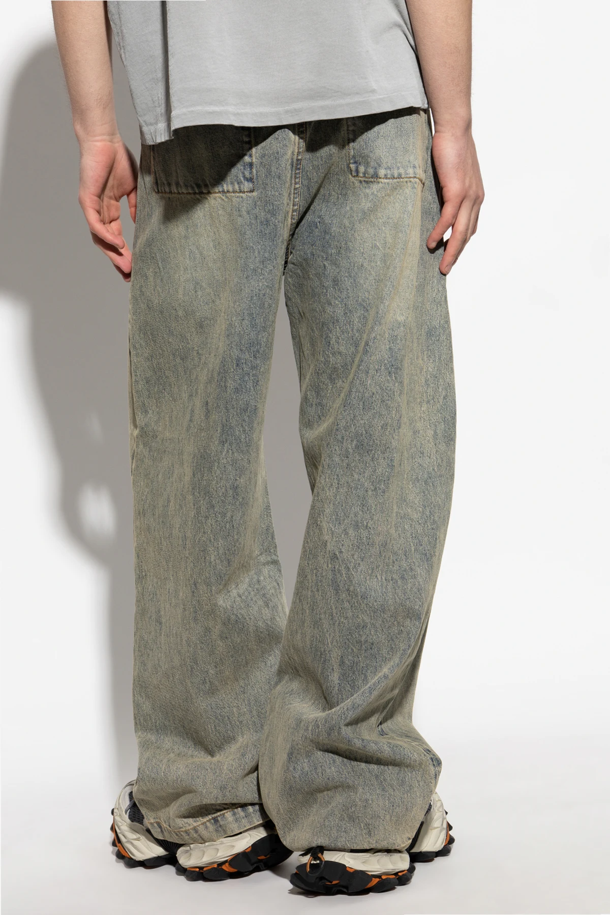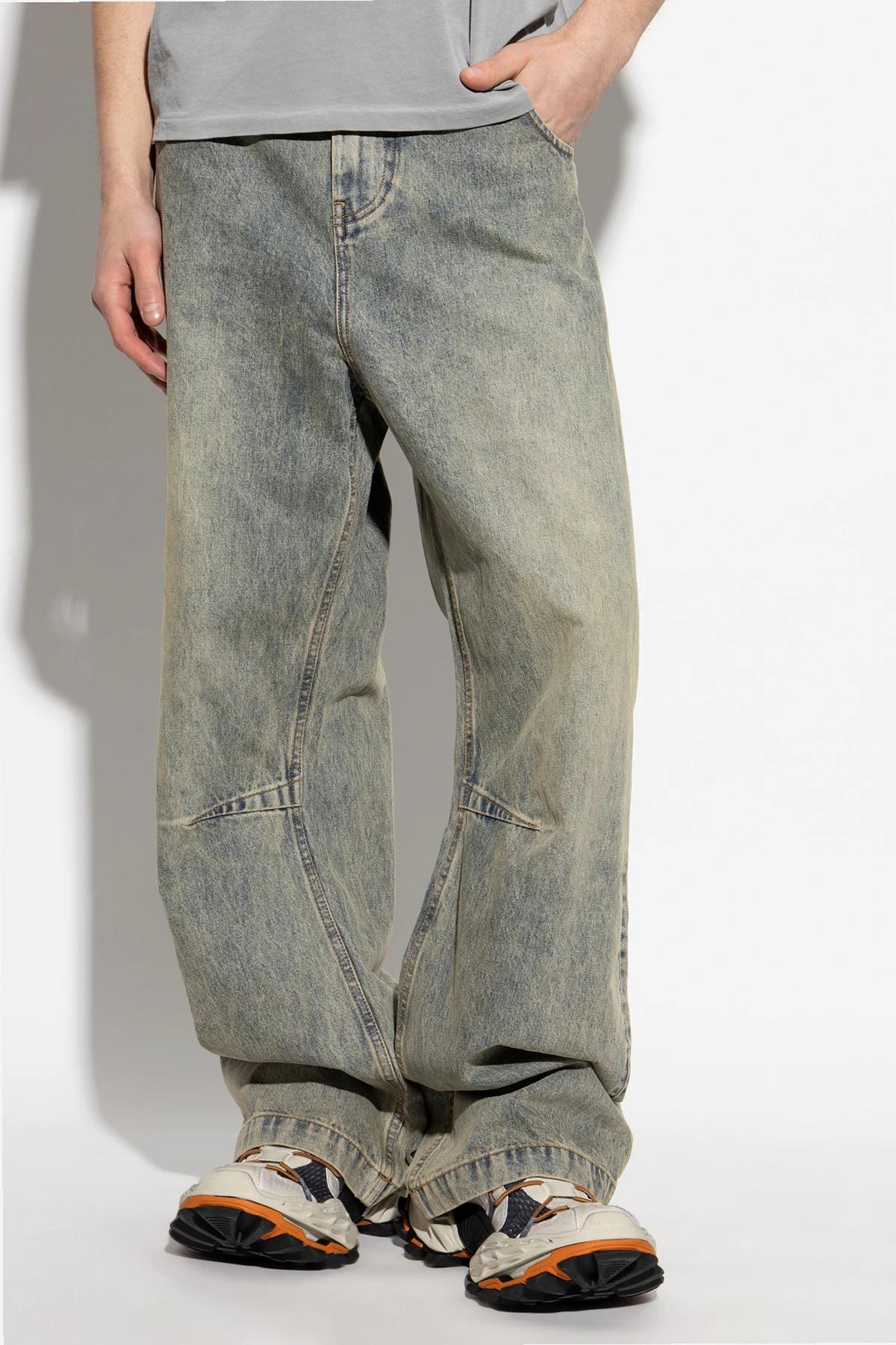 Presenting the Jeans with Logo by ENTIRE STUDIOS, a pair of trousers that epitomizes understated elegance. These distinguished bootcut jeans are crafted from premium, non-stretch 100% cotton, ensuring durability and a refined feel against the skin. The light, washed finish imbues these jeans with a vintage allure, while their relaxed fit offers unparalleled comfort. Classic pockets and meticulous stitching accentuate the casual yet sophisticated style, making them a versatile addition to any wardrobe. Free from overt branding, these jeans embrace a minimalist aesthetic. The blue-beige hue, coupled with a zip and button closure, enhances their timeless appeal. Why Choose This Product? Crafted from high-quality 100% cotton for a luxurious feel. Vintage-inspired design with a modern, relaxed fit. Minimalist style with classic detailing. Exclusively designed by ENTIRE STUDIOS.