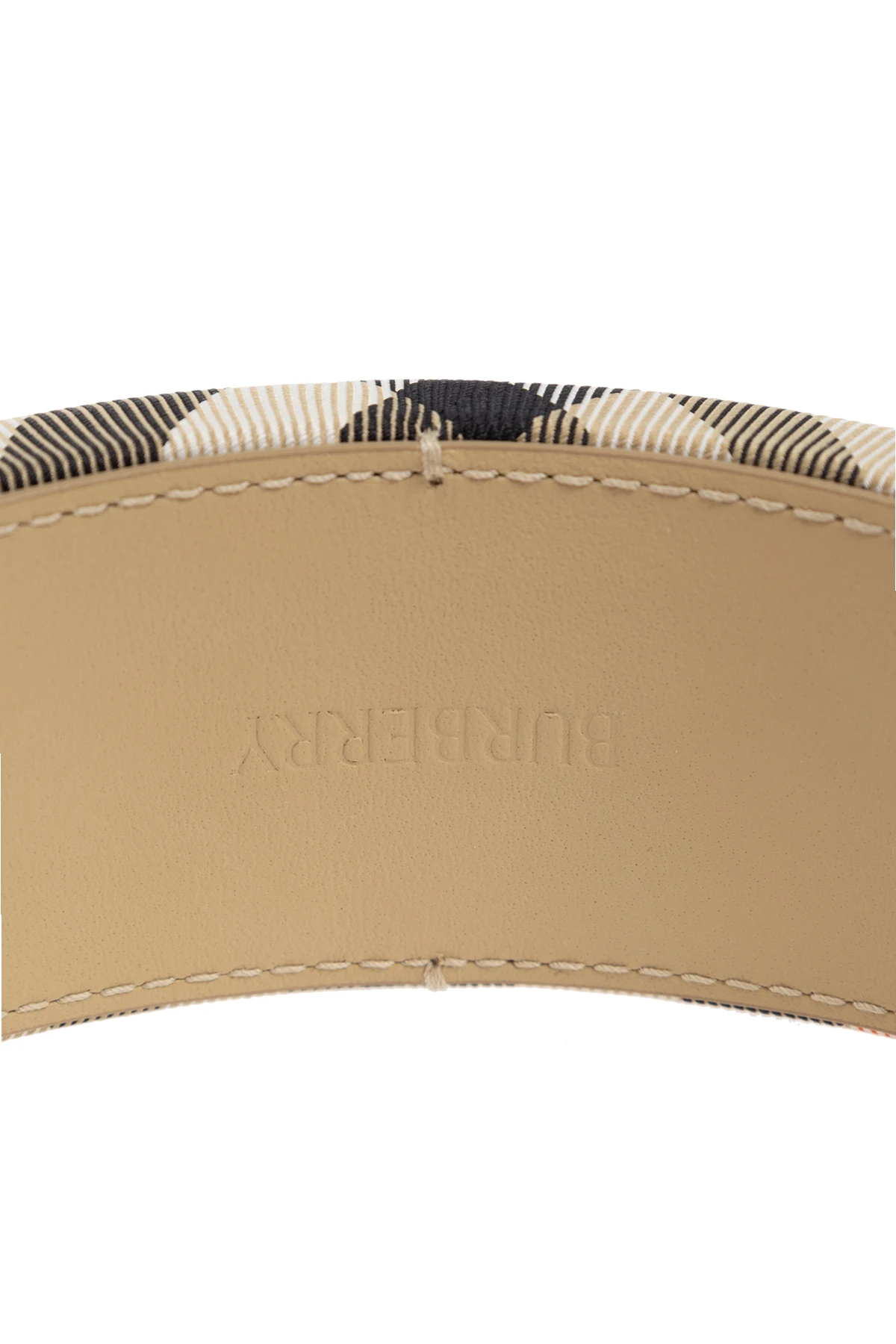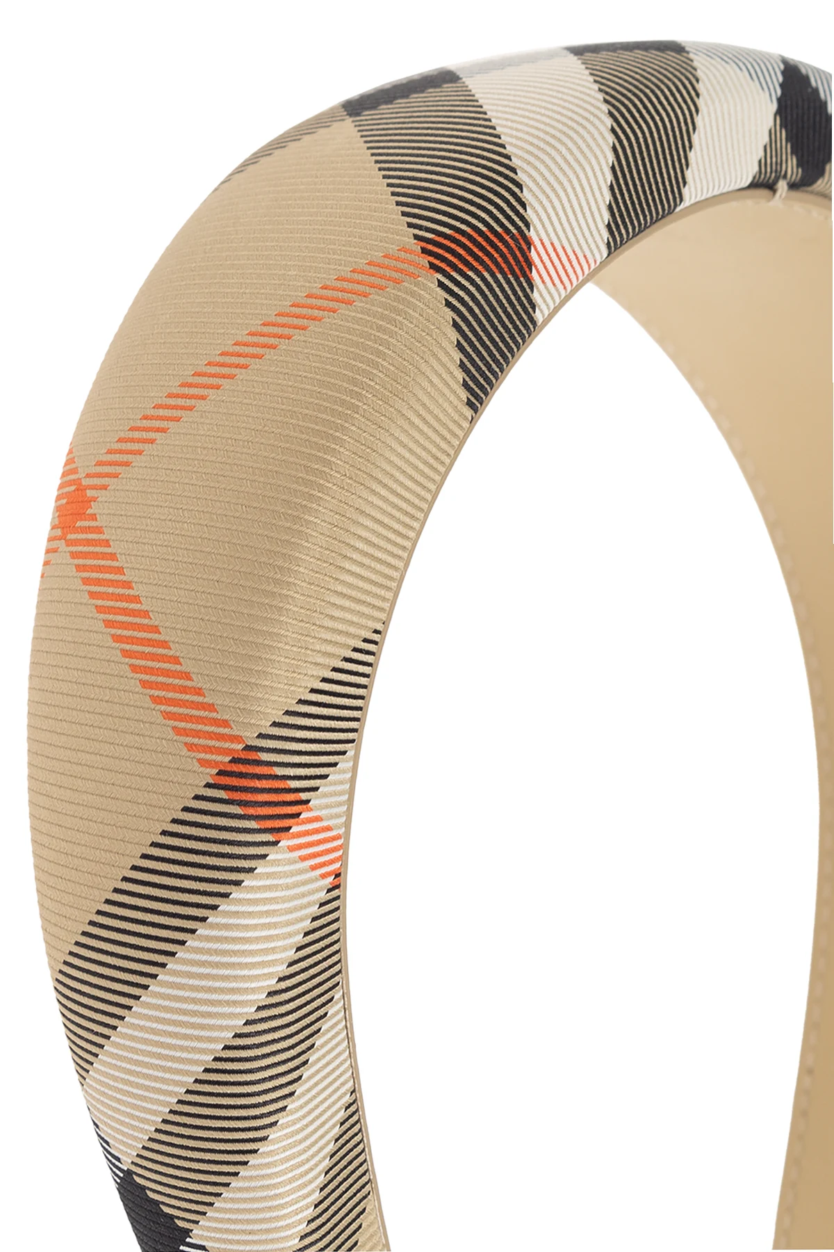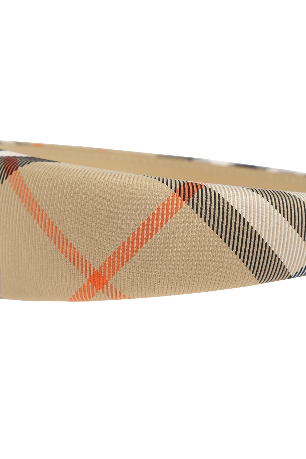 Presenting the exquisite Headband from the exclusive fashion collection by Burberry Kids. This luxurious accessory, adorned with a classic, distinguished check pattern, epitomizes the timeless elegance synonymous with the brand. The palette harmoniously blends beiges with accents of black, white, and vibrant orange, creating a captivating aesthetic. Crafted from high-quality fabric, likely with a hint of synthetics for enhanced flexibility, the headband exudes both comfort and sophistication. The interior features an embossed brand logo, a testament to its authenticity and attention to detail. Designed with a rounded shape, it ensures a comfortable fit, making it the perfect complement to any child\'s wardrobe. Why Choose This Product? Iconic check pattern exclusive to Burberry Elegant color scheme suitable for any occasion High-quality materials ensuring durability Embossed logo for a touch of luxury Comfortable rounded shape for easy wear