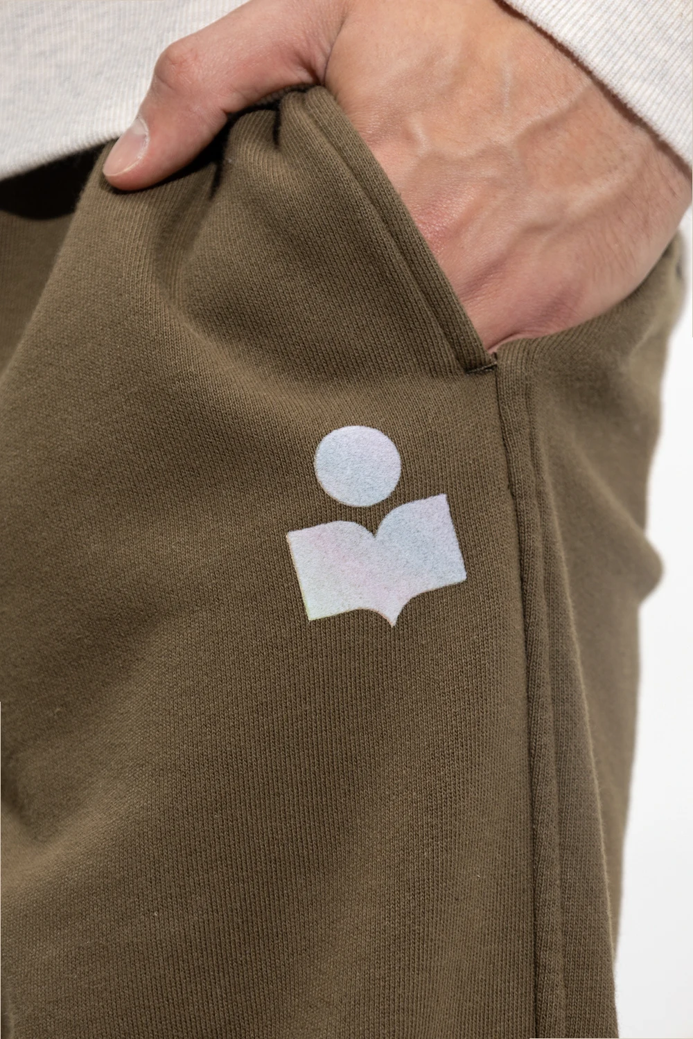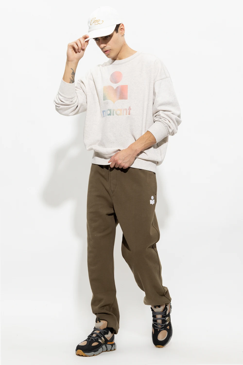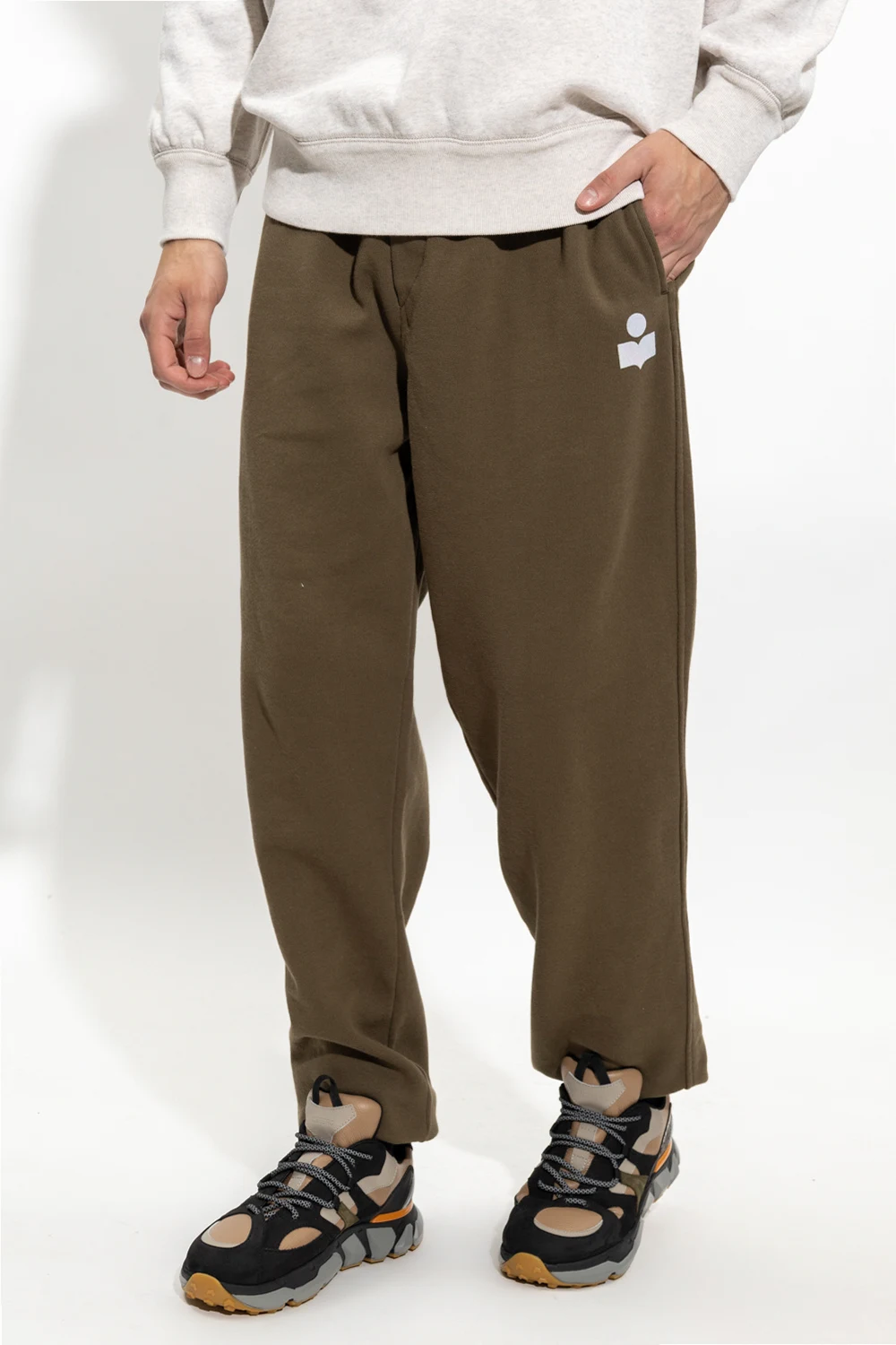 Khaki ‘Mailejo’ sweatpants from Isabel Marant. Crafted from cotton, this pair falls with slightly tapered legs and features an elastic waistband, four slip pockets and a velvet-flocked logo.