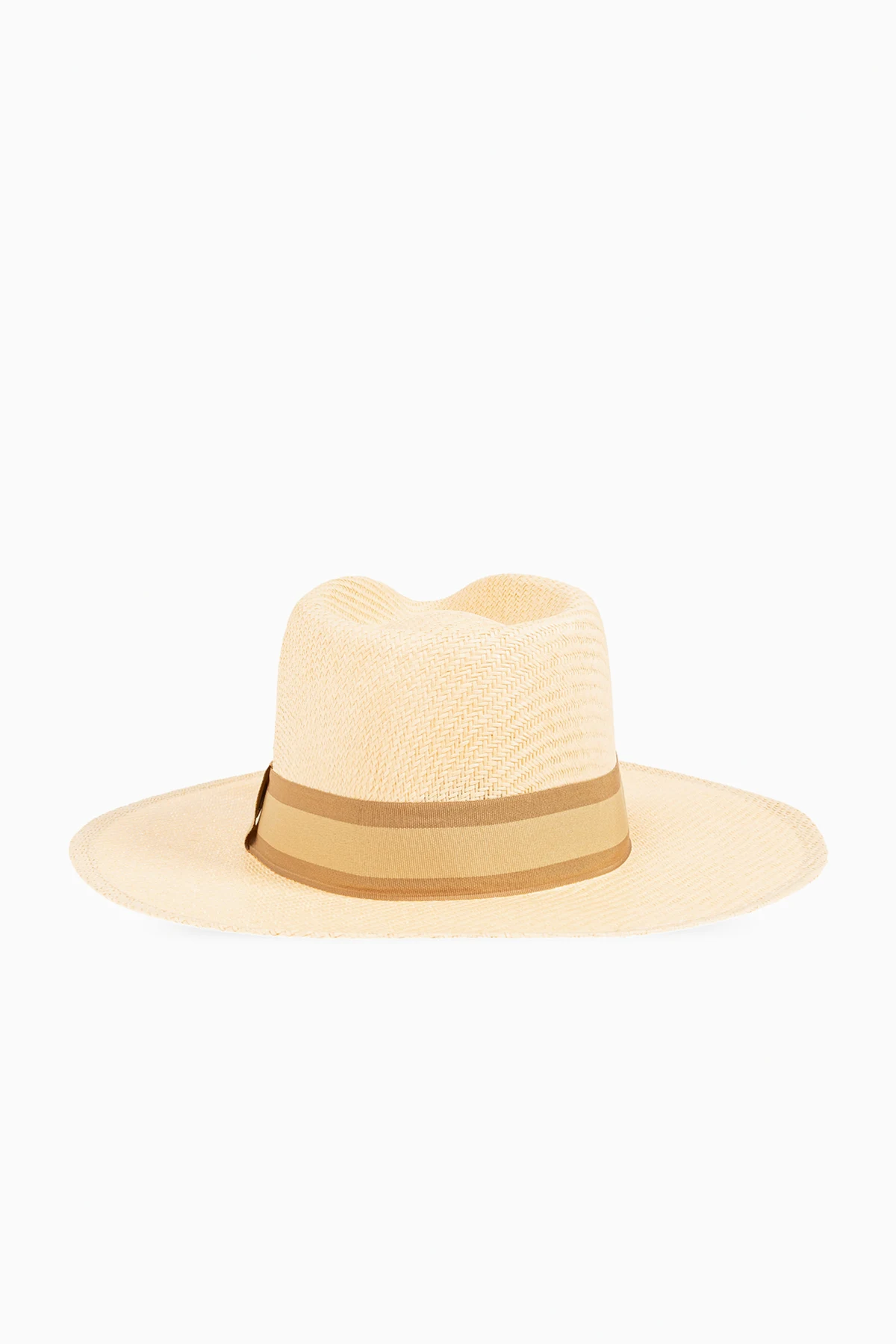 Introducing the Decorative Band Hat, an epitome of timeless elegance crafted by the renowned designer Melissa Odabash. This exquisite wide-brimmed hat, woven from light-hued paper, showcases a classic silhouette with a gently rounded crown. Adorning the crown is a chic beige band, embellished with a small, round designer logo plaque, exuding an air of prestige. The intricate woven pattern imbues the hat with a sense of lightness and sophistication, making it an ideal accessory for the discerning fashionista. The dominant light beige color ensures versatility, effortlessly complementing a myriad of summer ensembles and adding a touch of refinement to any outfit. Why Choose This Product? Elegant Design: Classic shape with a distinctive decorative band. High-Quality Material: Crafted from premium woven paper. Versatile Color: Light beige for easy pairing. Designer Prestige: Created by the acclaimed Melissa Odabash.
