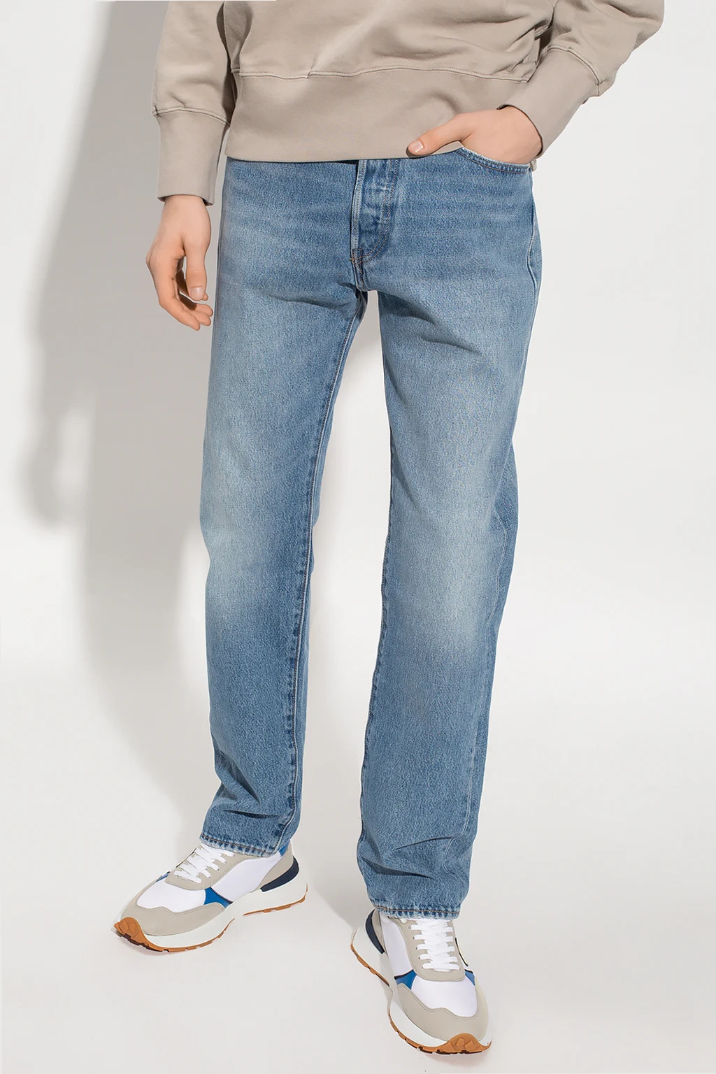 Blue ‘501’ jeans from Levi’s, the ‘Made & Crafted®’ collection. Fastened with buttons, this garment features a logo patch at the back, three front pockets, two back pockets and tapered legs.