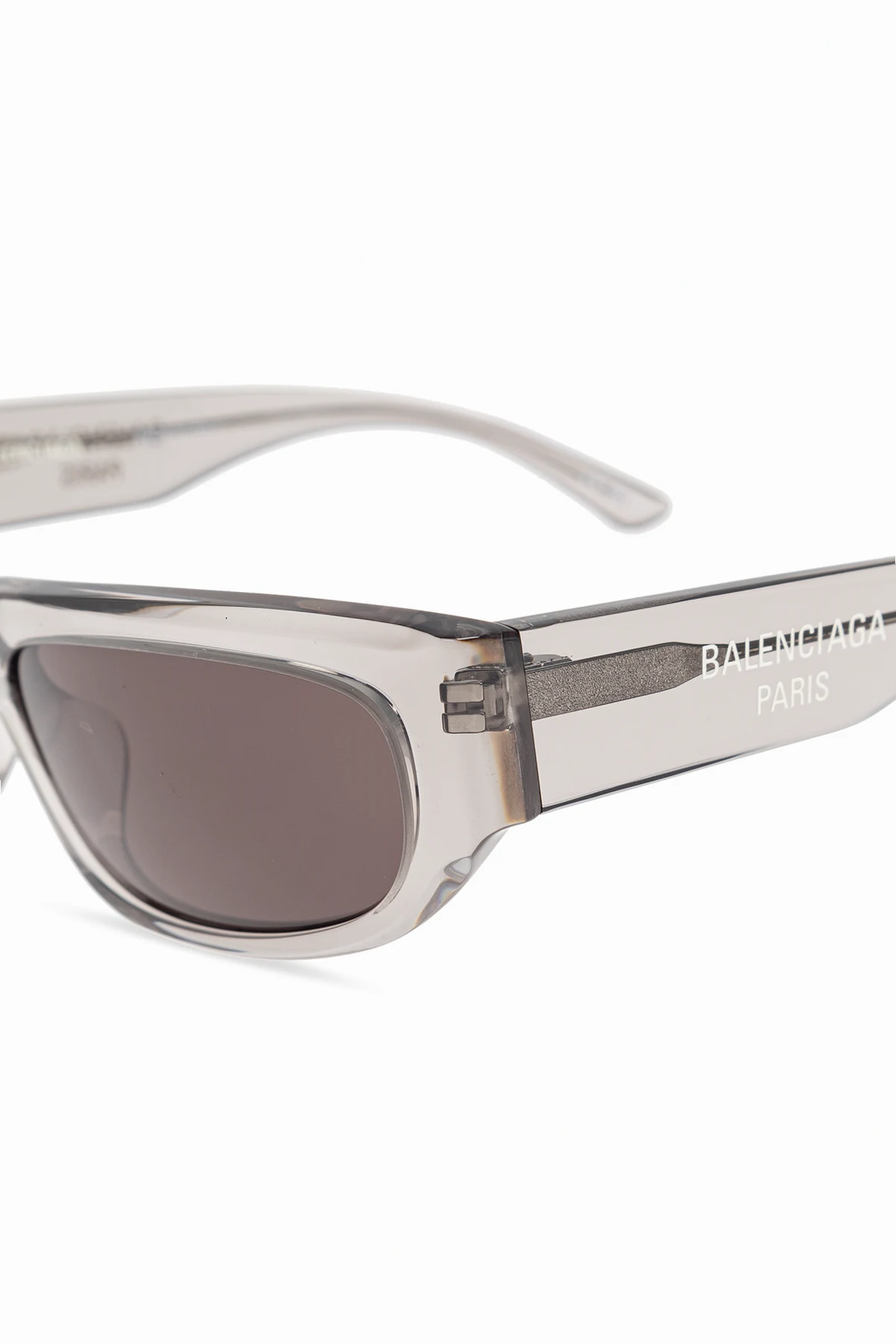 Introducing the Balenciaga Unisex Sunglasses, an epitome of modern elegance and timeless style. These sunglasses feature rectangular, slightly rounded frames crafted from transparent acetate, imparting a sense of lightness and sophistication. The frames are adorned with the distinctive \"BALENCIAGA PARIS\" logo on the temples, a testament to the brand\'s exquisite craftsmanship and exclusivity. The dominant shade of the frames is a subtle gray, perfectly complementing the dark lenses that offer superior UV protection. Designed by the visionary team at Balenciaga, these sunglasses are a perfect accessory for both men and women, blending haute couture heritage with contemporary style. Why Choose This Product? Exquisite design by renowned fashion house Balenciaga. Lightweight and stylish transparent acetate frames. Dark lenses with excellent UV protection. Unisex design suitable for any occasion.