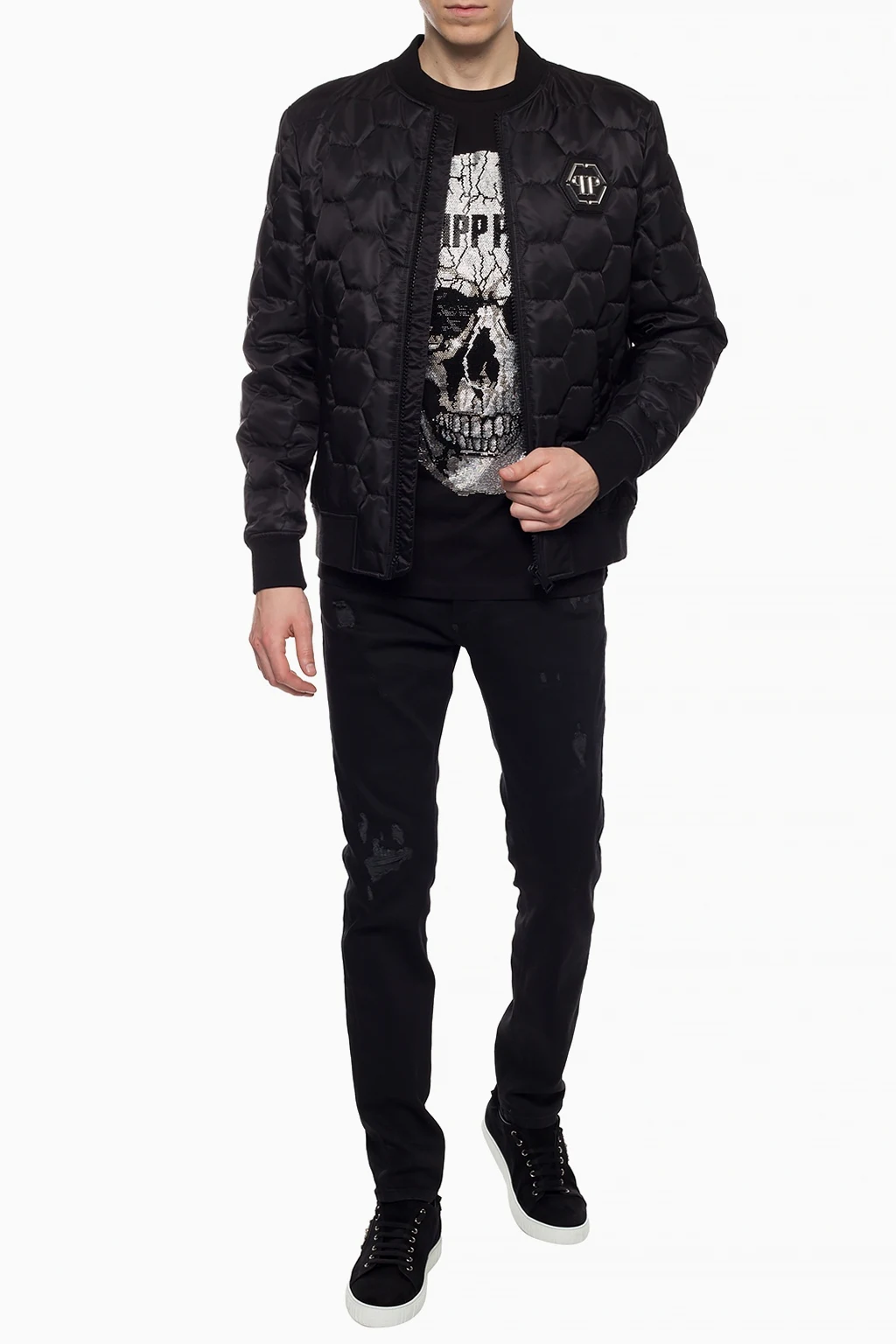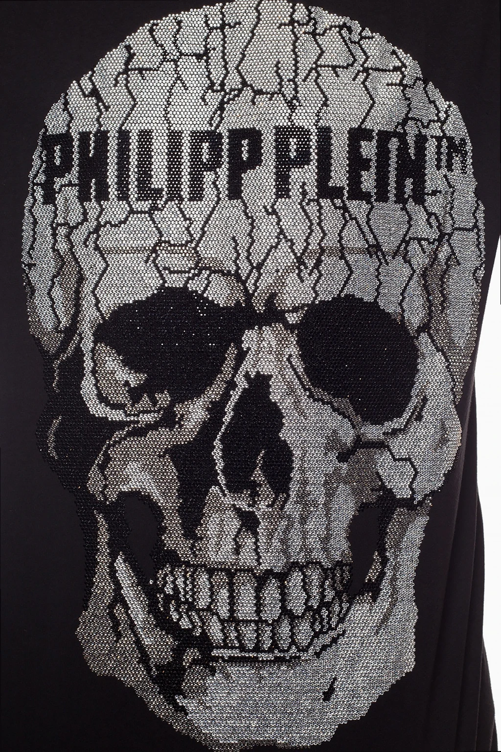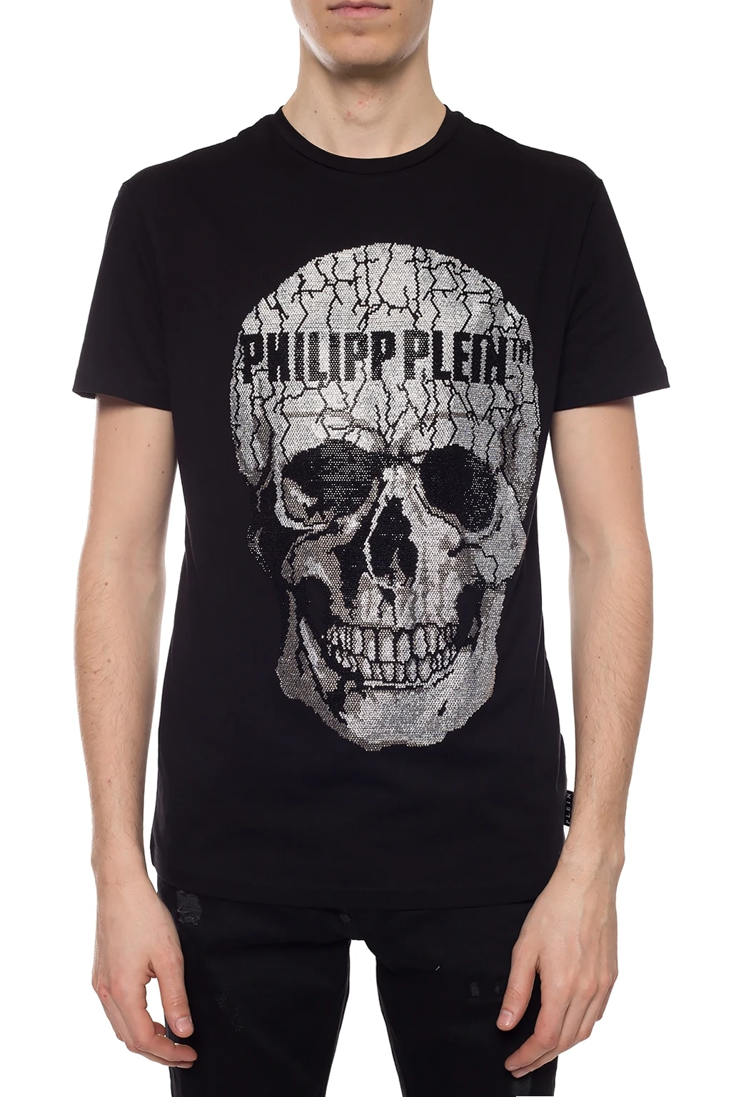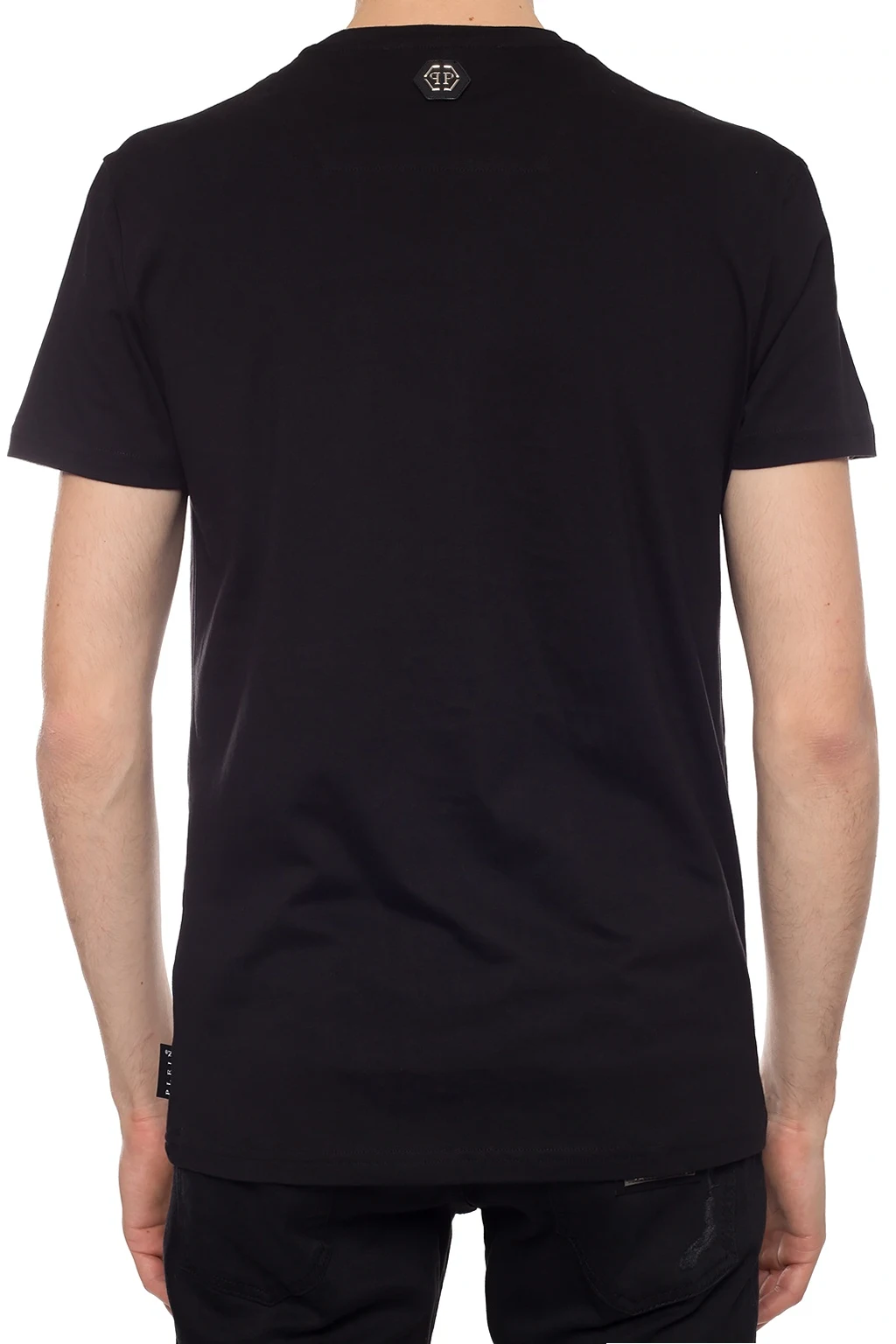 Black T-shirt from Philipp Plein. Made of cotton. Enriched by a decorative element featuring a logo.