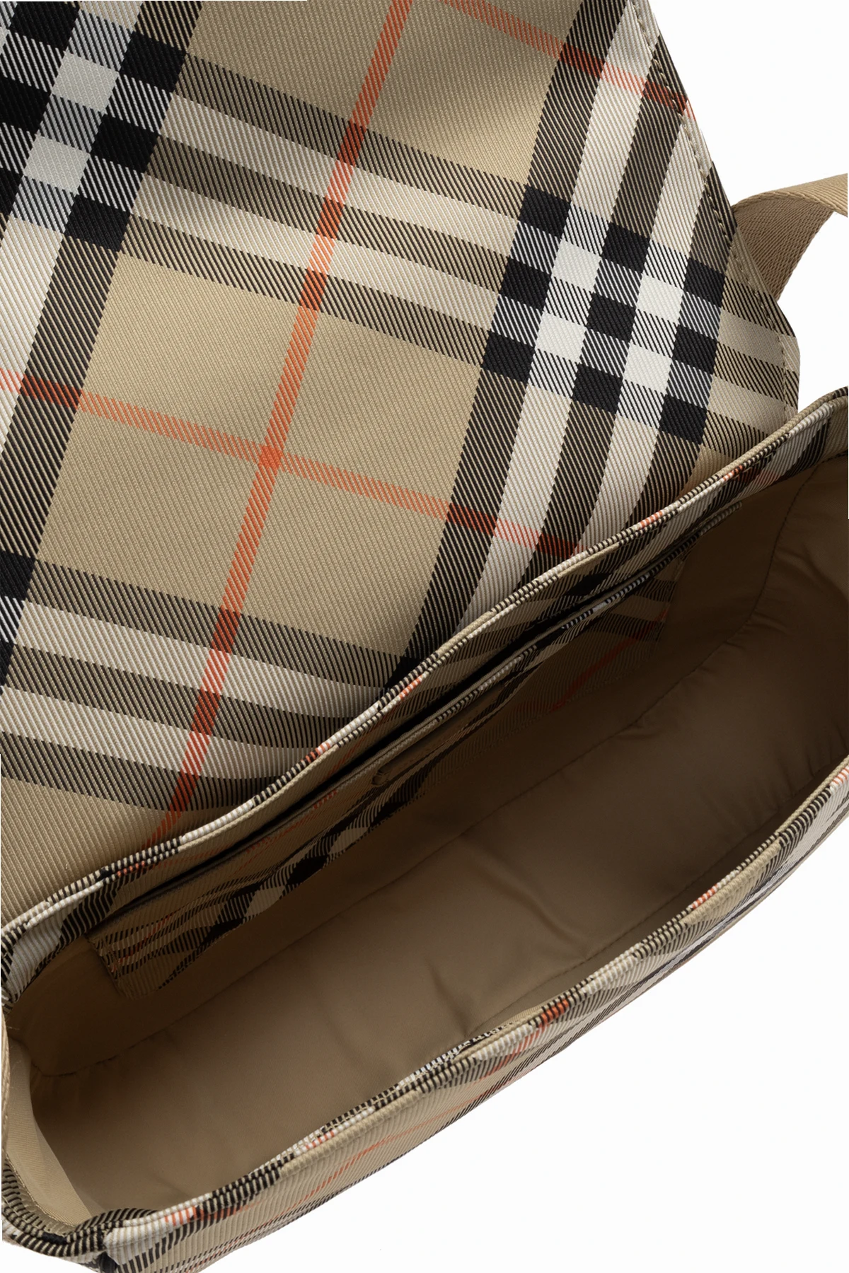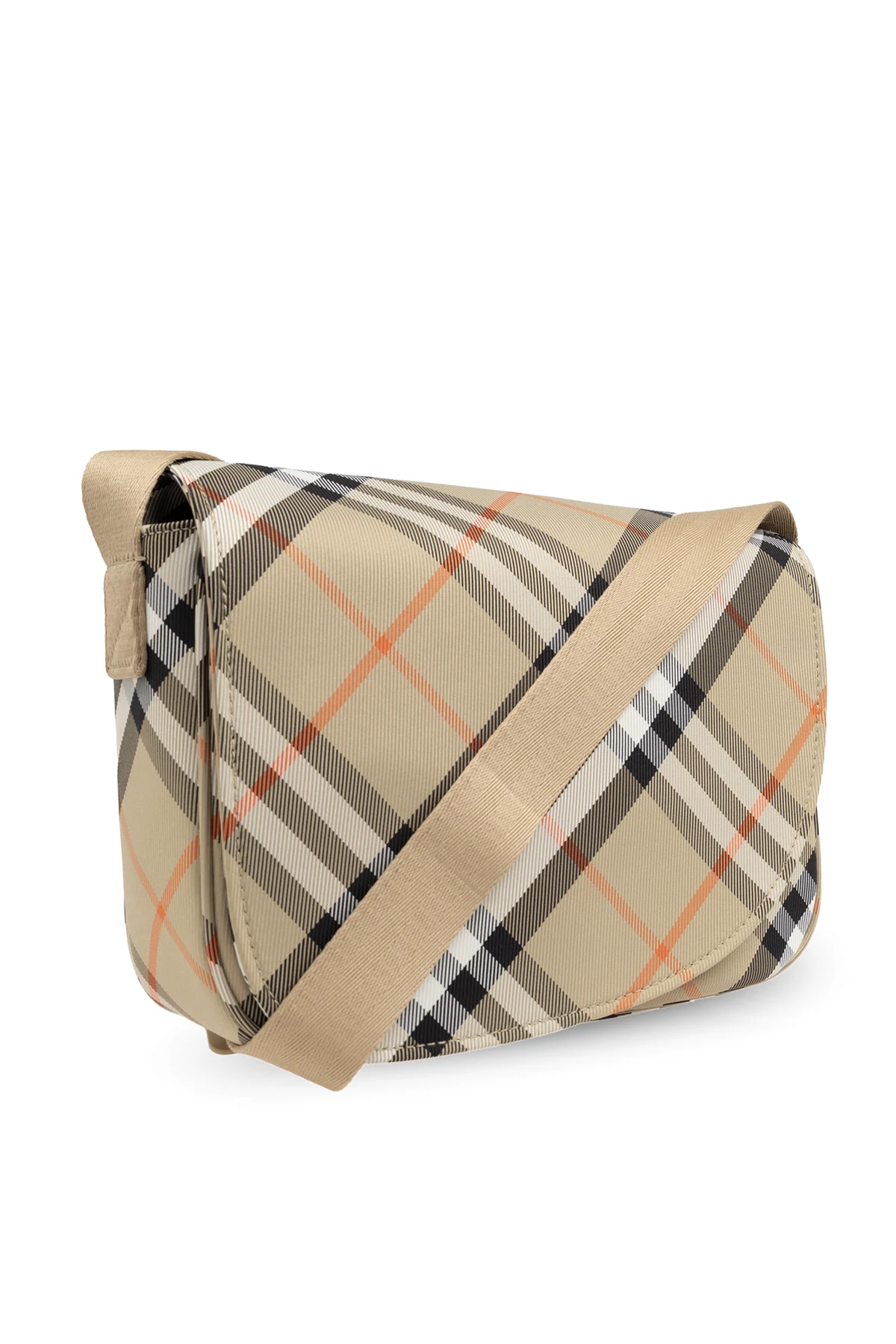 Discover the epitome of sophistication with the Burberry Kids Shoulder Bag, a quintessential accessory from the esteemed Burberry Kids collection. This luxurious bag seamlessly blends timeless British elegance with modern practicality, making it the perfect choice for young fashion connoisseurs. Crafted from durable textile material, the bag features a rectangular shape with rounded corners and an exquisite classic check pattern in beige, black, white, and orange hues. The wide, beige shoulder strap ensures comfort during daily use, while the spacious interior with an additional slip pocket provides ample room for essentials. The bag is secured with a magnetic closure, keeping belongings safe and easily accessible. Although the designer\'s logo is subtly integrated into the design, the iconic Burberry check pattern unmistakably denotes its prestigious origin. Why Choose This Product? Timeless Elegance: Classic check pattern exudes sophistication. Durable Material: High-quality textile ensures longevity. Functional Design: Spacious interior with an additional pocket for organization. Secure Closure: Magnetic fastener offers convenience and security. Designer Prestige: Iconic Burberry aesthetic for discerning young fashionistas.