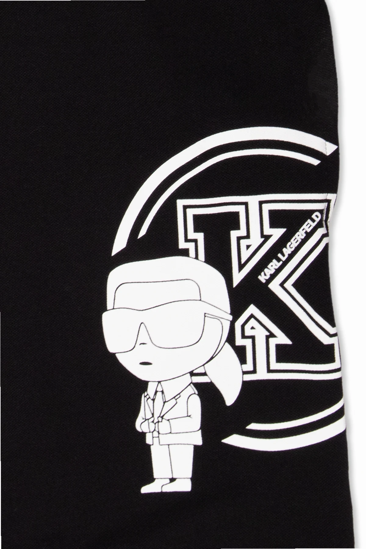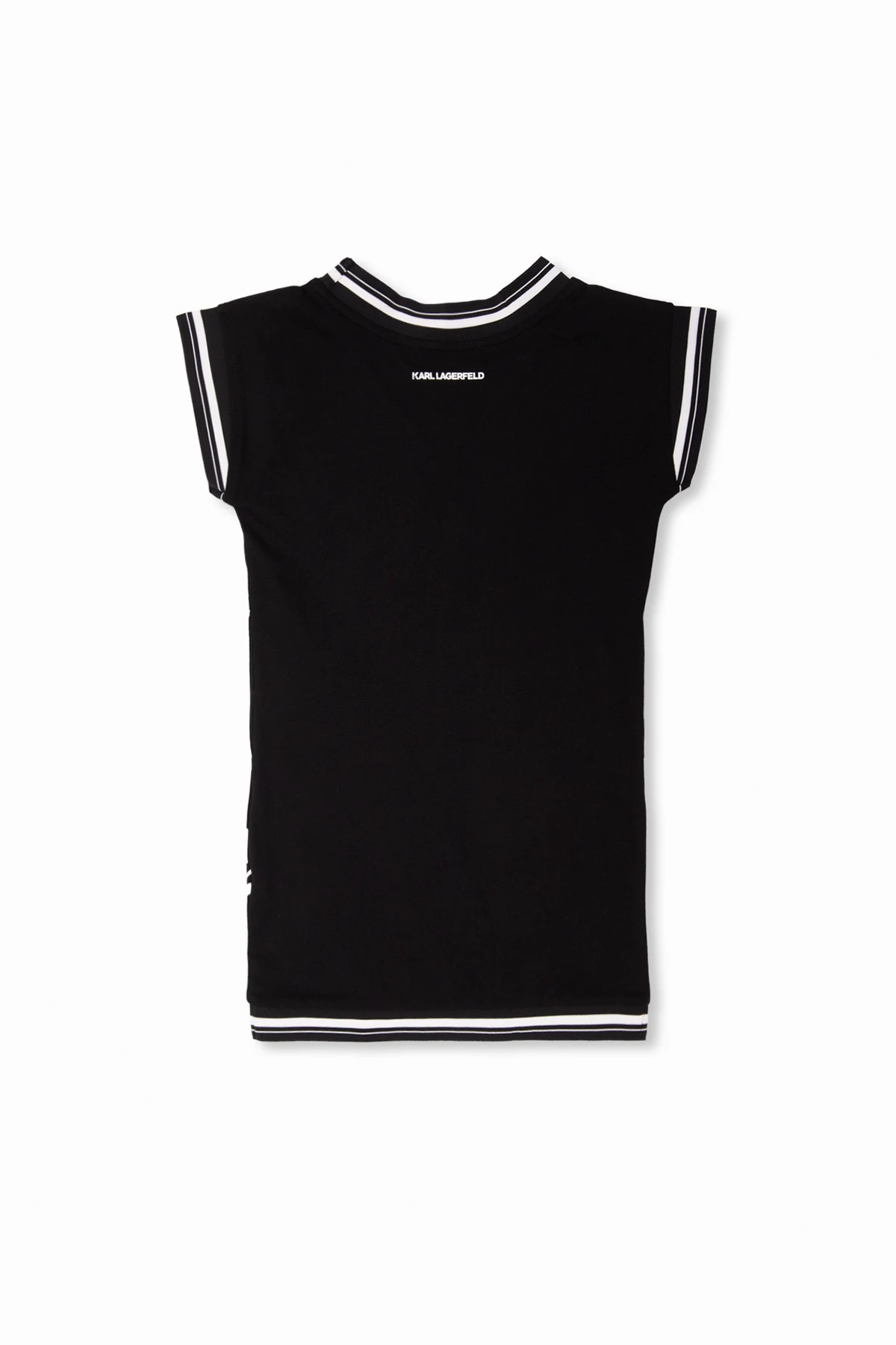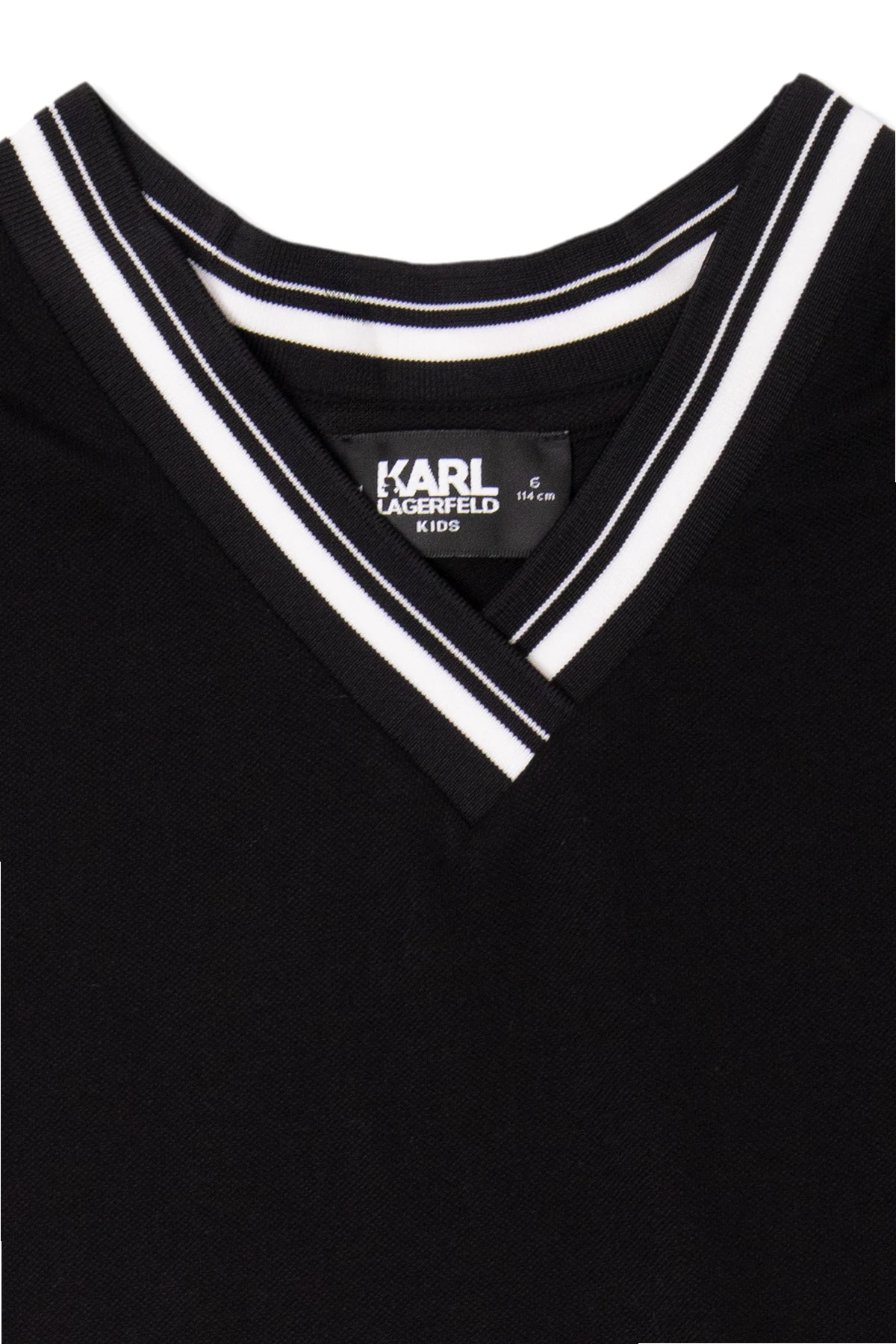 Black and white dress from Karl Lagerfeld Kids. Made of cotton, this design features a logo print and ribbed trims at the V-neck, hem and cuffs.