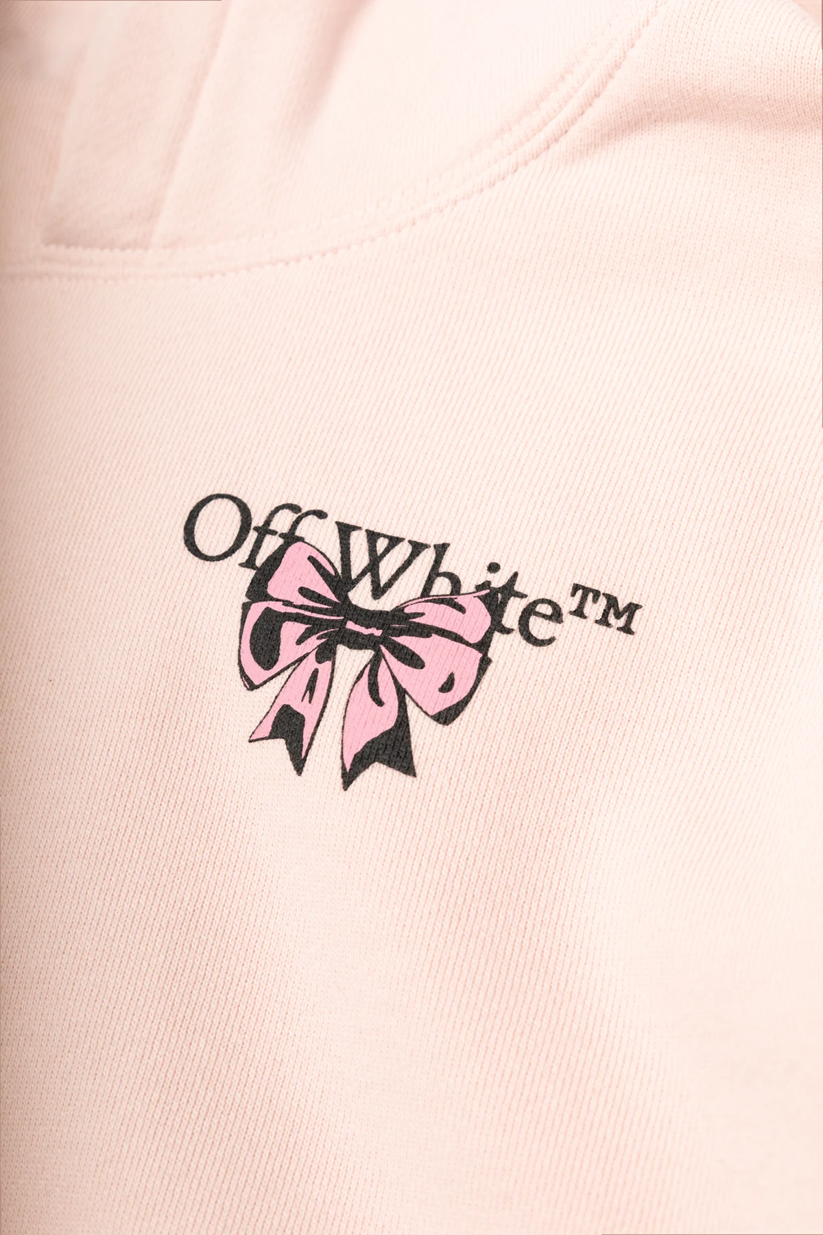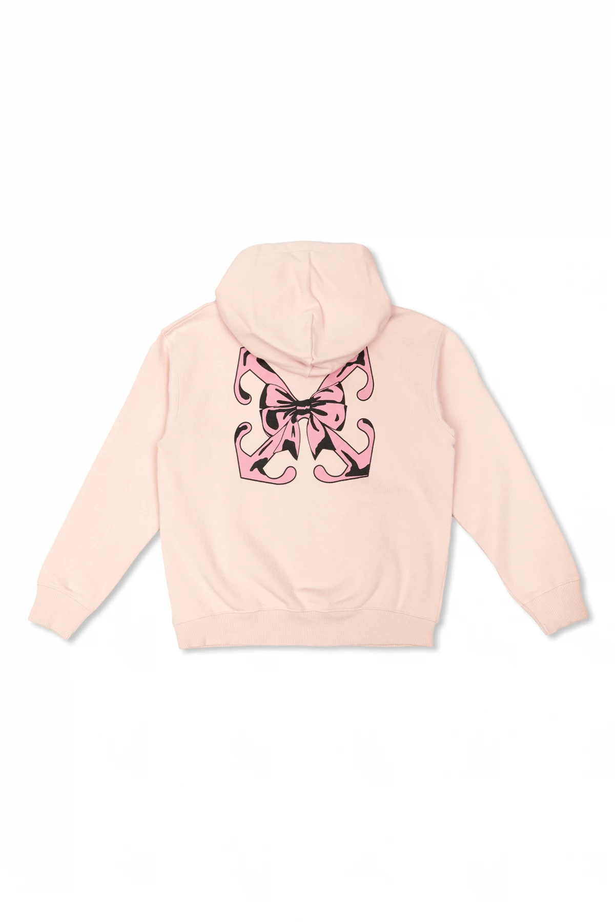 Introducing the exquisite Off-White Kids Hoodie, meticulously designed for young fashion aficionados aged 4-14 years. This elegant hoodie, bathed in a delicate pink hue, exudes a girlish charm that is both contemporary and timeless. Crafted from premium-quality cotton, the hoodie ensures unparalleled comfort and durability. Its classic silhouette, featuring a hood and long sleeves, is accentuated by ribbed cuffs and hem, providing a snug and tailored fit. The front of the hoodie showcases the iconic Off-White logo adorned with a charming pink bow motif, adding a touch of sophistication. A large kangaroo pocket at the center adds practicality and style, perfect for keeping little hands warm or storing small treasures. The back of the hoodie is adorned with a striking large pink bow print with black accents, making it a standout piece in any wardrobe. Why Choose This Product? Exquisite design with iconic Off-White branding Made from high-quality cotton for comfort and durability Classic fit with ribbed cuffs and hem for a tailored look Practical kangaroo pocket for added functionality Unique back print that adds a stylish flair