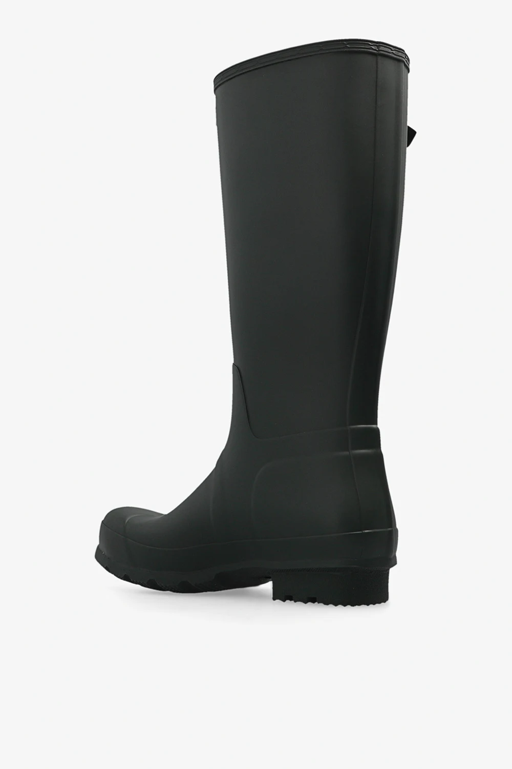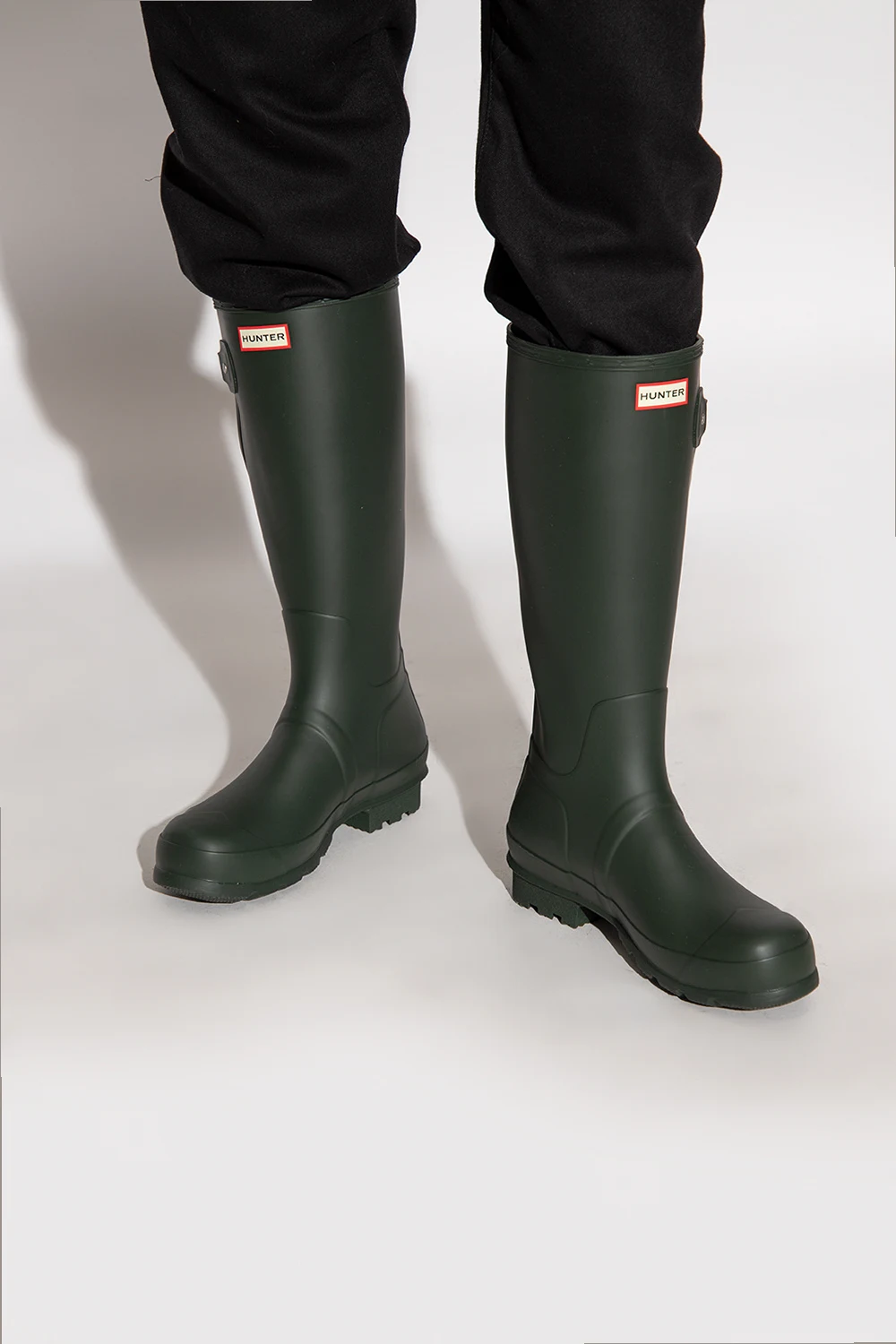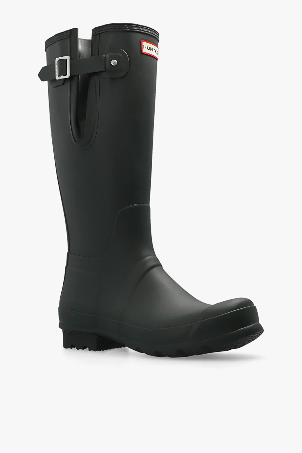 Dark green ‘Original Tall Side Adjustable’ rain boots from Hunter. Handcrafted from natural vulcanised rubber with a matte finish, this pair features a logo appliqué, adjustable buckle strap on the side and a rubber outsole with Hunter Original tread pattern.