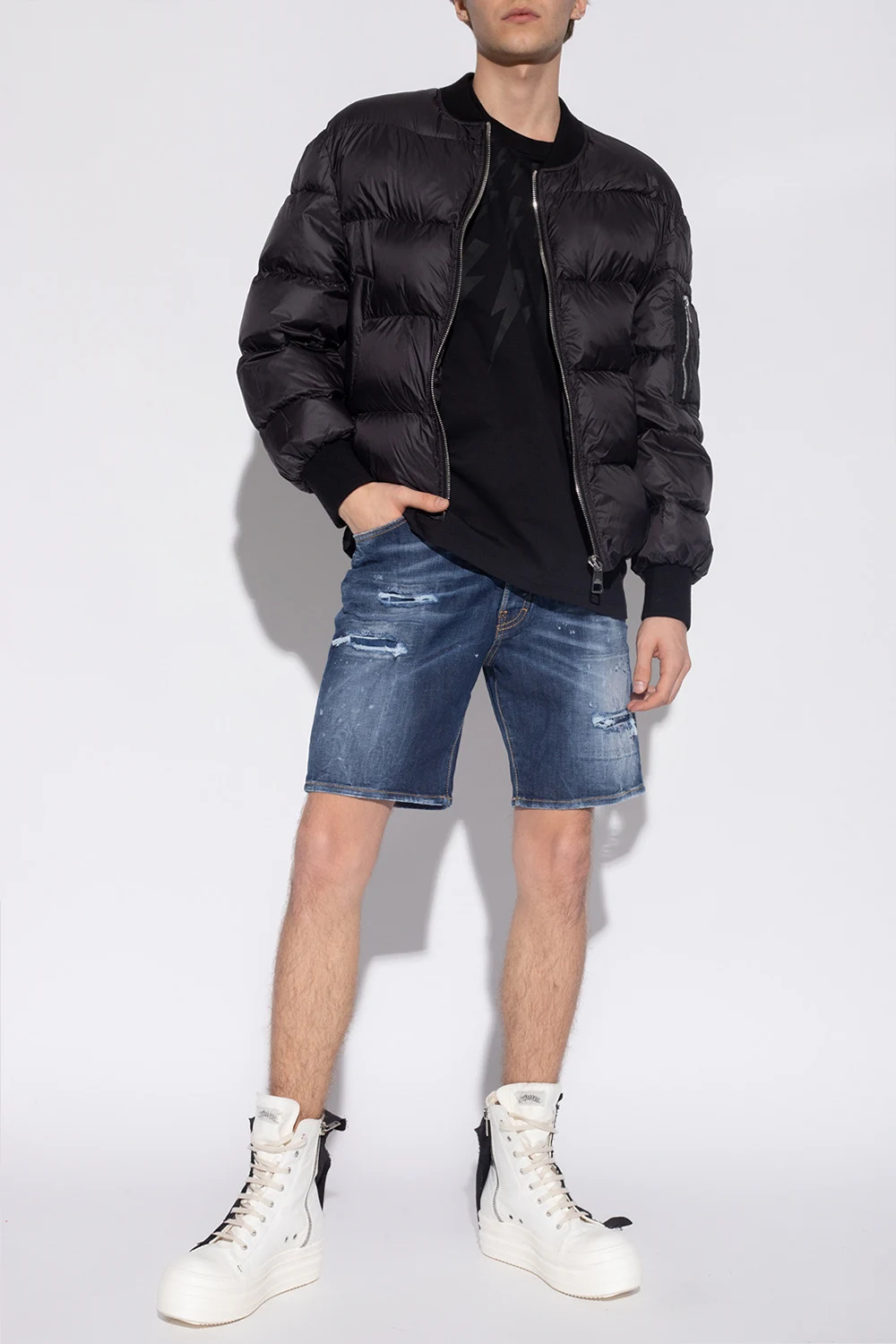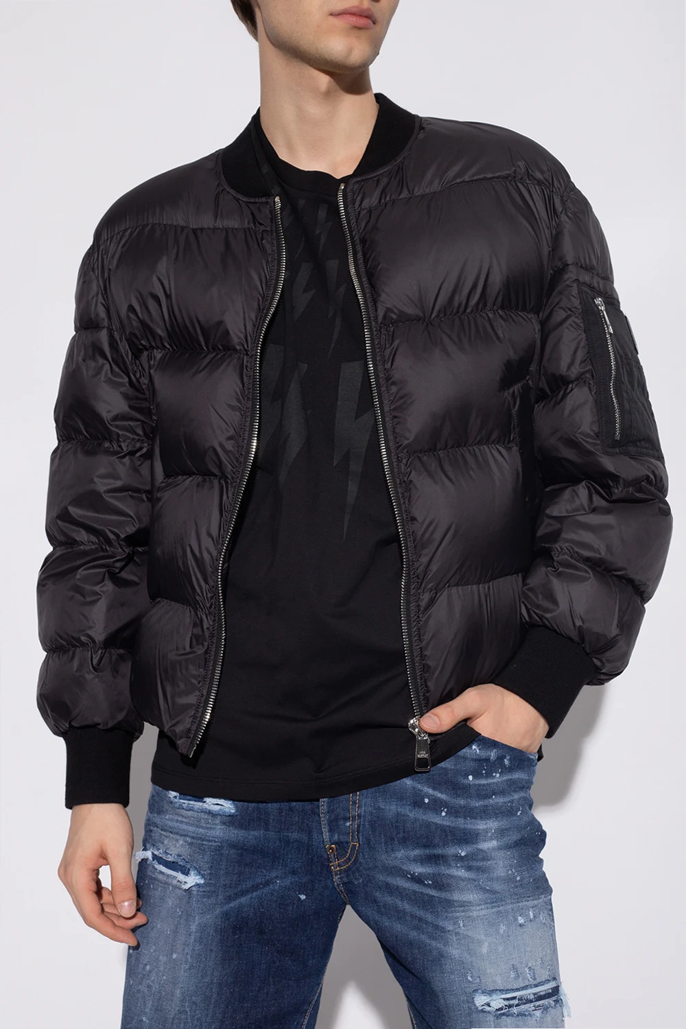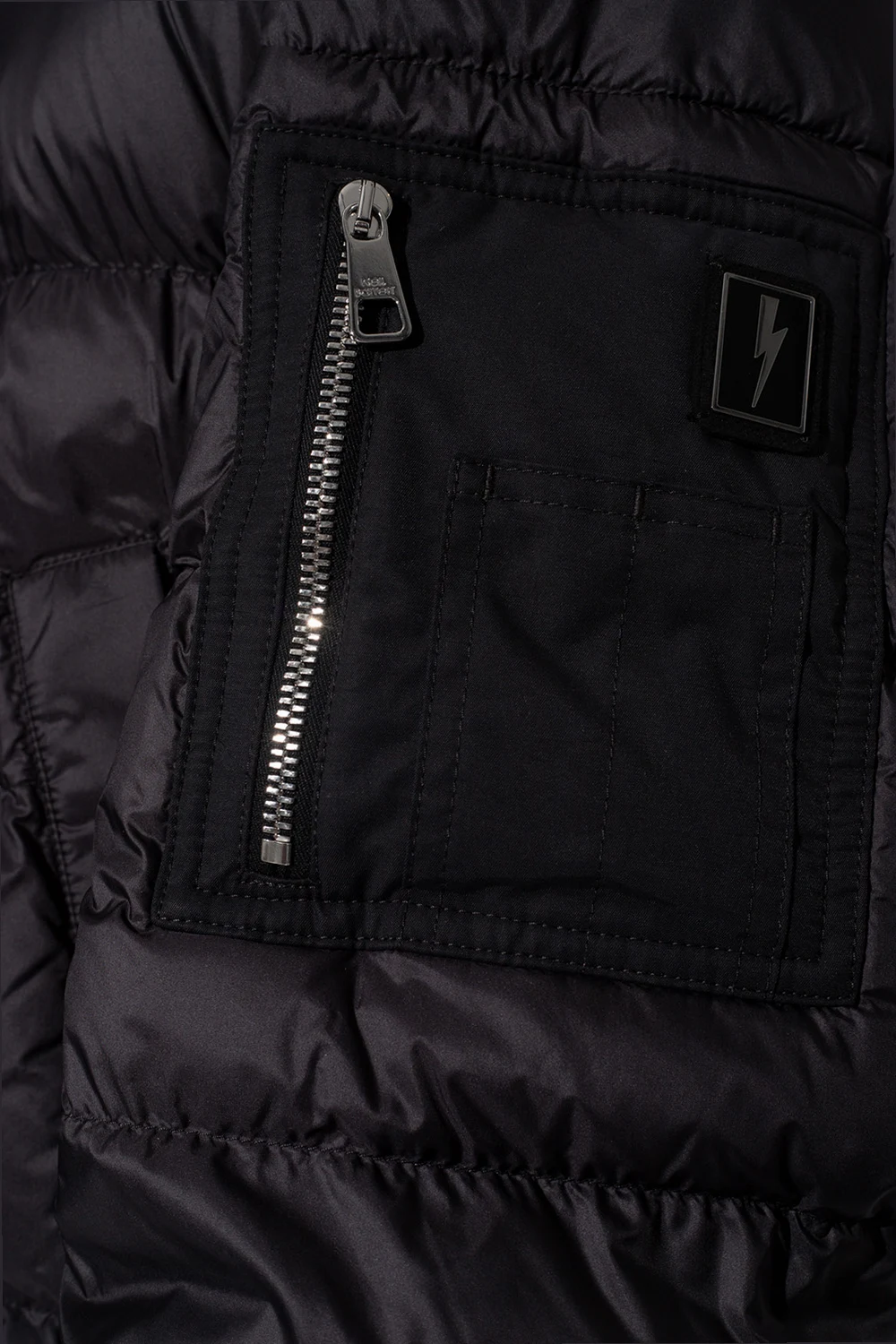Black quilted jacket from Neil Barrett. Fastened with a zip, this garment features two slip pockets, zipped sleeves and ribbed trims at the hem and cuffs.