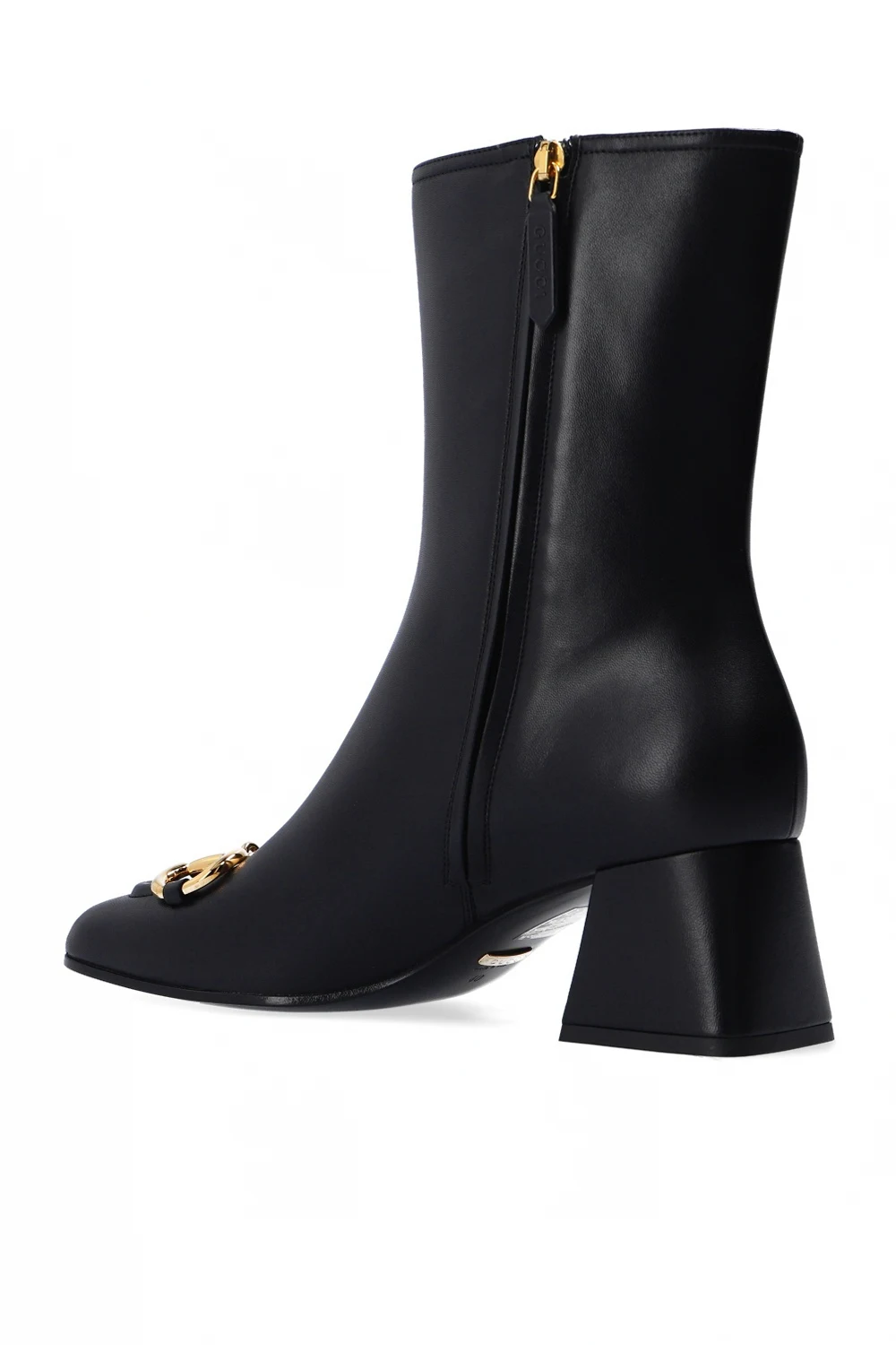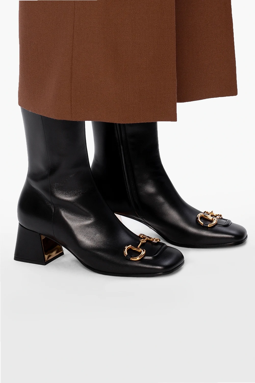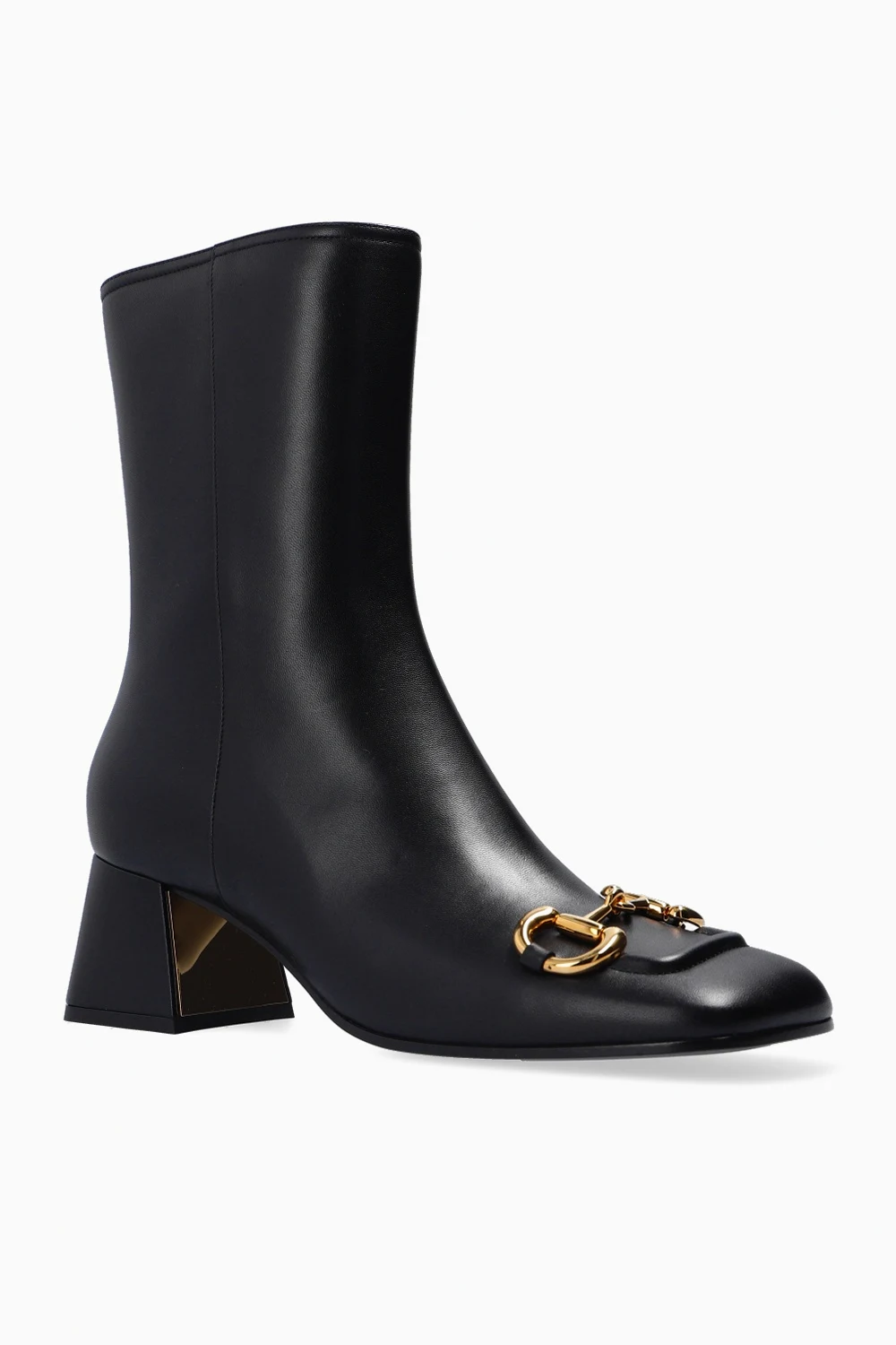 Black ankle boots from Gucci. Crafted from leather, this design is features a side zip, the iconic horsebit in gold-tone and a black leather sole.
