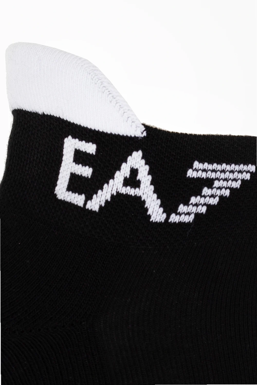 Black socks from EA7 Emporio Armani. Embroidered with the brand\'s logo in grey, this pair features ribbed cuffs.