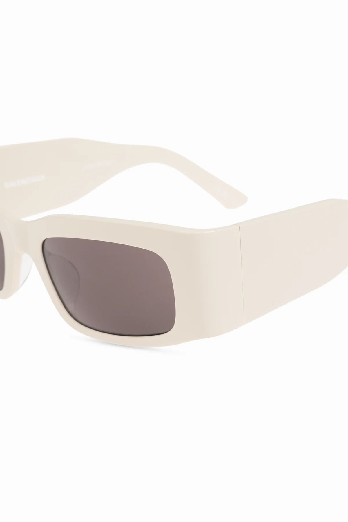 Introducing the epitome of sophistication, these Balenciaga Sunglasses are a testament to the brand\'s illustrious heritage and contemporary vision. Designed by the illustrious Cristóbal Balenciaga, revered as a visionary in haute couture, and now under the creative direction of Demna Gvasalia, these sunglasses seamlessly blend exquisite craftsmanship with modern trends. The sunglasses feature rectangular, slightly rounded lenses encased in robust, thick frames that exude a bold, modern aesthetic. The creamy hue of the frames adds an elegant and stylish flair, making them a versatile accessory for any wardrobe. The dark, gray-tinted lenses provide excellent protection from UV and UVB rays, ensuring both style and functionality. A hallmark of luxury, the brand\'s logo is subtly emblazoned on one of the temples, signifying prestige and quality. Crafted from high-quality acetate, these frames are both durable and lightweight, offering supreme comfort for all-day wear. Why Choose This Product? Exclusive design by the renowned Balenciaga brand. Unisex appeal, suitable for both men and women. High-quality acetate frames for durability and lightness. Elegant creamy color for a timeless look. Dark gray lenses providing superior sun protection. Comes with a sleek, black case for protection and convenience.