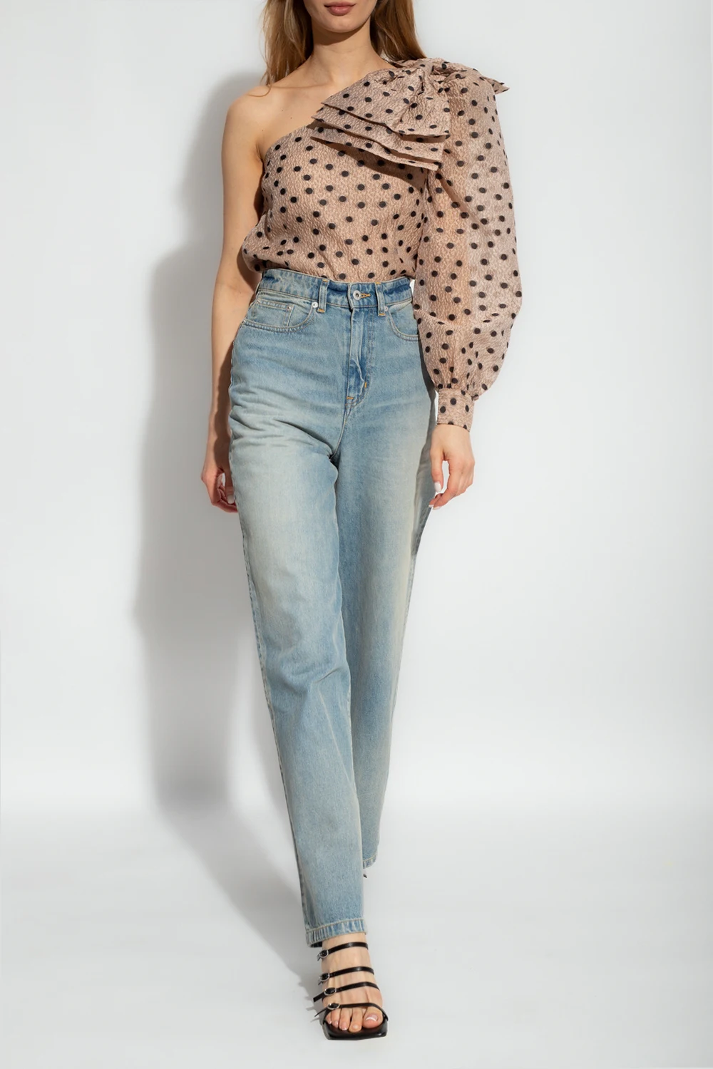 Off-White Puff-Sleeve Ruffle Crêpe De Chine Blouse