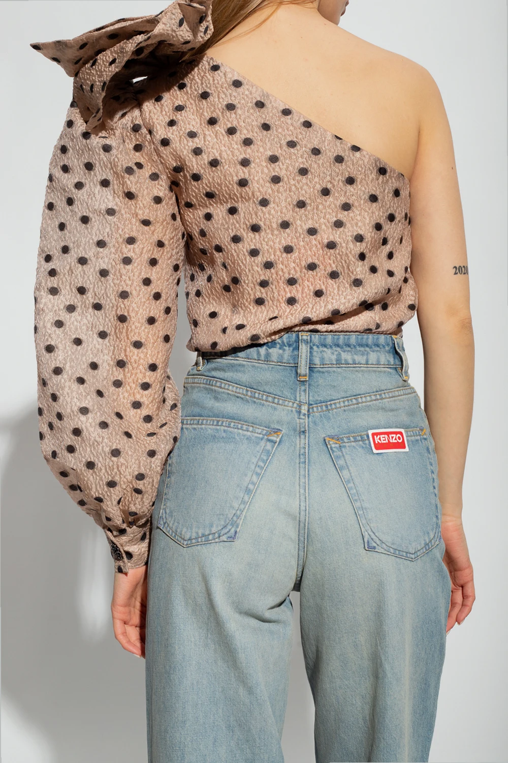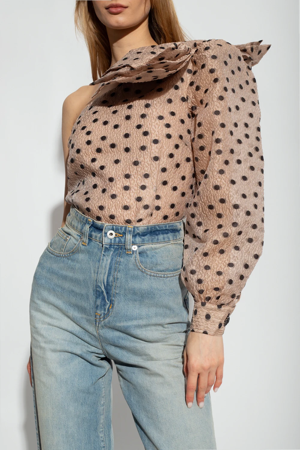 Brown ‘Scarlett’ shoulder bag from Custommade. This garment is decorated with a polka dot pattern and a decorative bow.