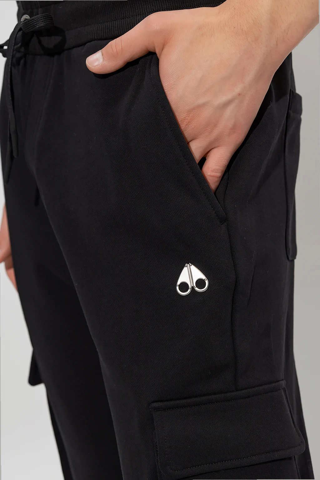 Black sweatpants from Moose Knuckles. Made of cotton, this pair features a drawstring waist, metal logo in silver-tone, two slip pockets on the front and back, flap pockets on the sides and ribbed cuffs.