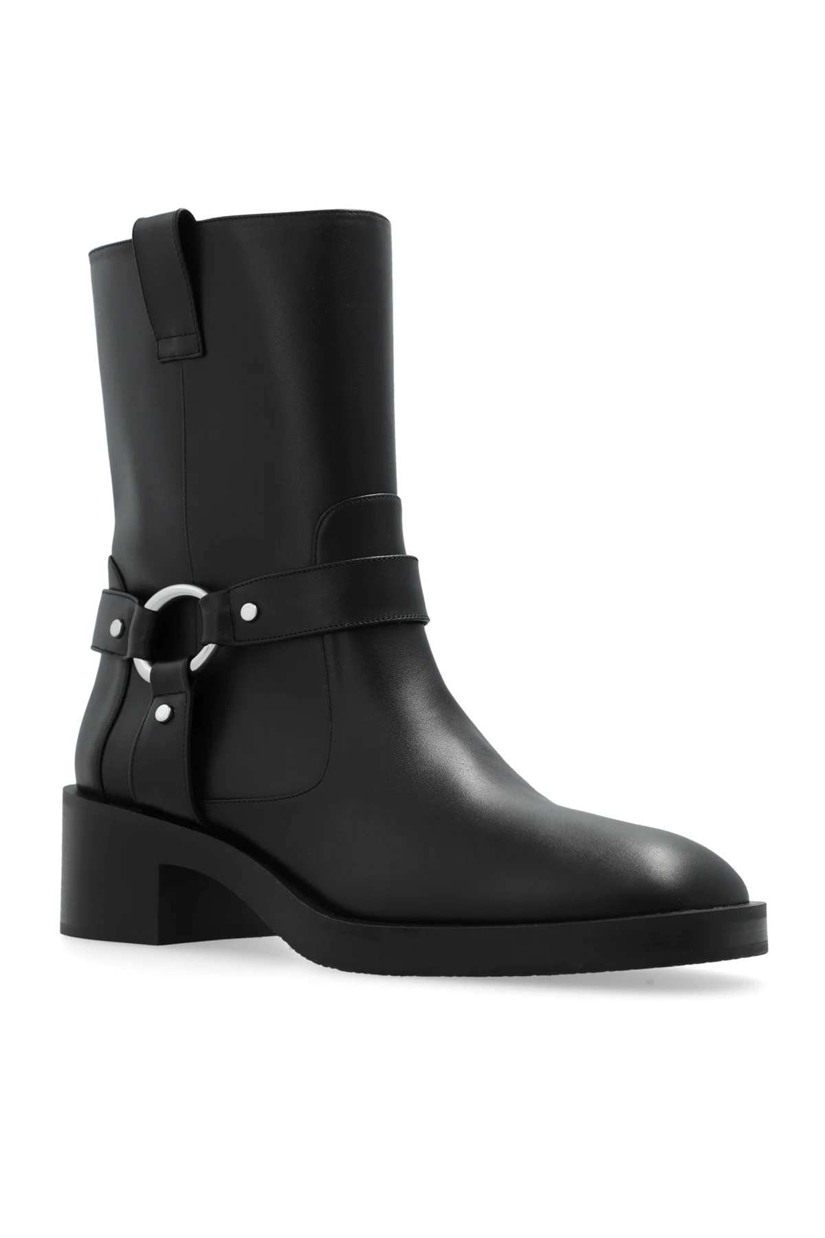 Introducing the epitome of sophistication and timeless style: the Leather \'Jax\' Booties by the renowned designer Stuart Weitzman. Crafted with meticulous attention to detail, these black leather booties boast a sleek silhouette, complemented by a rounded toe and a low, stable heel for unparalleled comfort and stability. The boots\' distinctive charm is accentuated by an ornamental strap encircling the ankle, complete with a buckle that not only adds an element of elegance but also offers adjustability. Ease of wear is thoughtfully ensured through a zipper on the inner side, facilitating effortless slipping on and off. Additionally, a pull loop at the back further streamlines the wearing process. Made from premium black leather both inside and out, these booties promise durability and a high-quality finish, typical of Stuart Weitzman\'s esteemed craftsmanship. Subtle yet significant, the designer\'s logo is discreetly placed inside the boot, serving as a hallmark of exclusivity and authenticity. Why Purchase These Booties? Elegant design with an adjustable ankle strap for a refined look Convenience and comfort with an easy slip-on feature and a supportive low heel Exquisite craftsmanship from high-quality leather ensuring longevity Subtle branding that underscores the luxury and authenticity of Stuart Weitzman