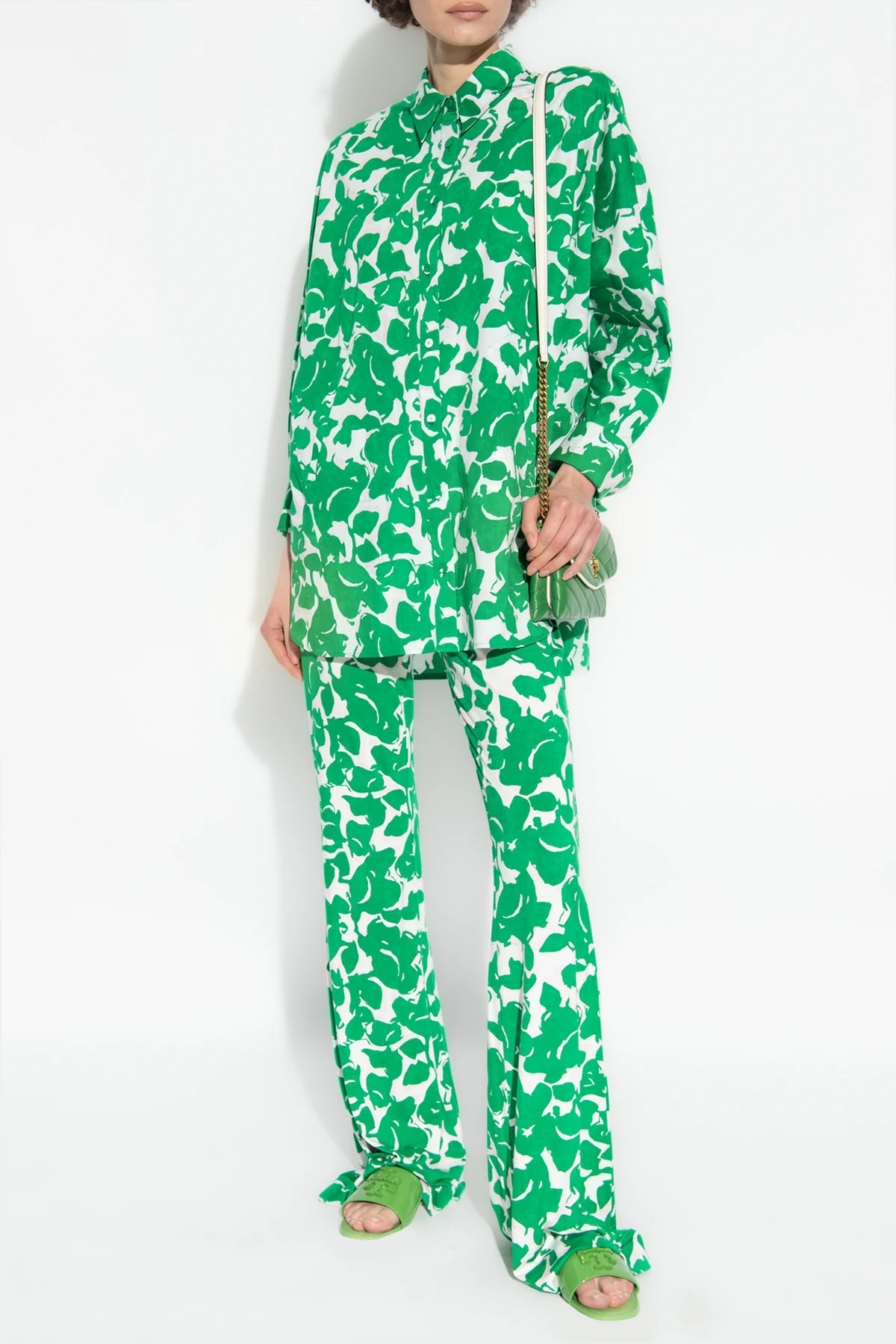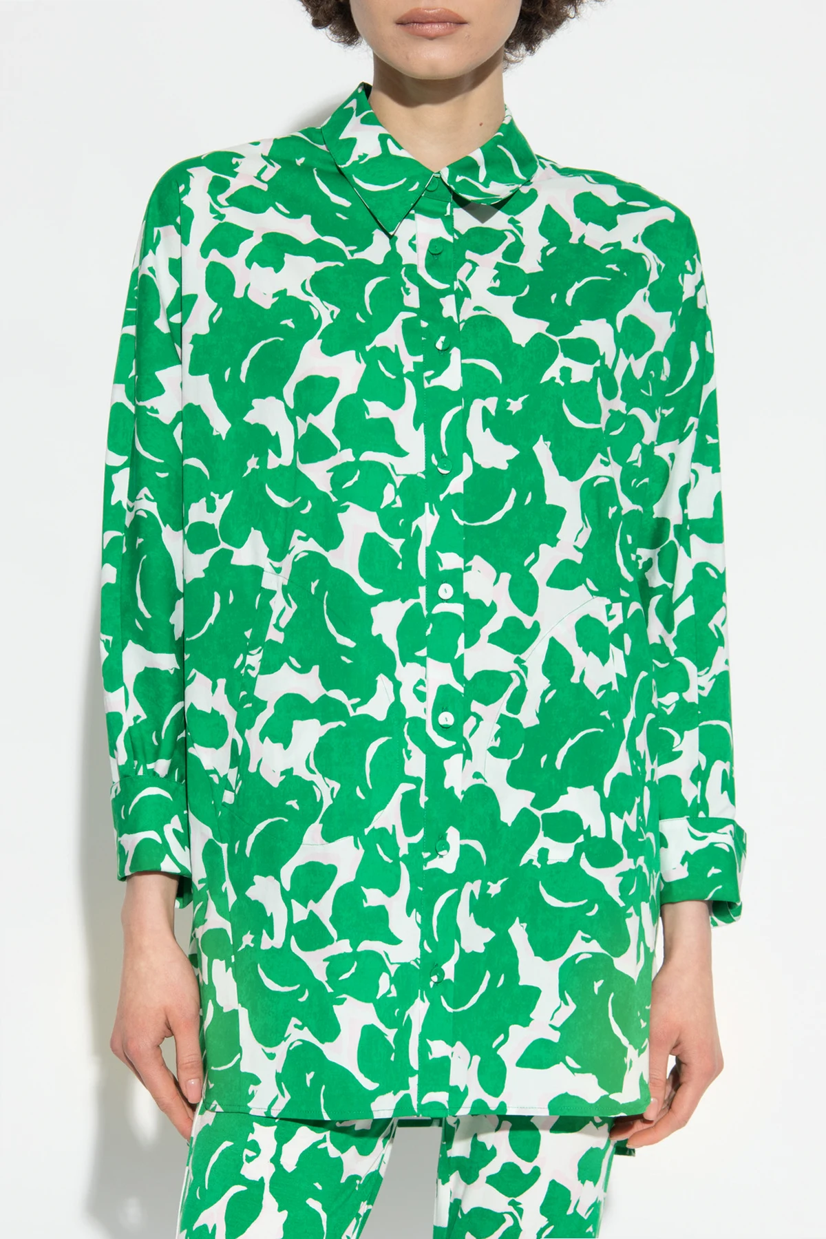 White, pink and green ‘Caleb’ shirt from Diane Von Furstenberg. Made of cotton, this style fastens with buttons and features a floral pattern, two slip pockets and long sleeves with cuffs.
