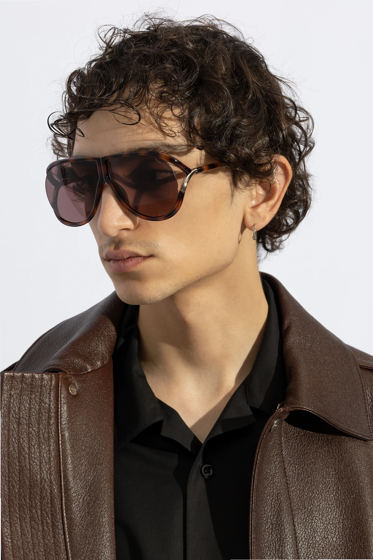 Unveil the epitome of sophistication with our exclusive Tom Ford Aviator Sunglasses. These exquisite sunglasses are a testament to opulent design and superior craftsmanship, crafted by none other than the illustrious Tom Ford, a visionary in the fashion industry. Featuring a bold aviator shape with large lenses, these sunglasses offer comprehensive eye coverage. The frames, adorned in a tortoiseshell pattern with shades of brown, exude a timeless allure. Crafted from lightweight acetate, they ensure unparalleled comfort, while the metallic accents at the temples add a touch of elegance. The subtle branding on the temples accentuates their luxurious appeal, complemented by the sophisticated gray lenses equipped with UV and UVB protection. Presented in a sleek black case embossed with the brand\'s logo, these sunglasses are the quintessential accessory for the discerning fashion enthusiast. Why Choose This Product? Iconic Design by Tom Ford Lightweight and Comfortable Acetate Frames UV and UVB Protection with Stylish Gray Lenses Includes an Elegant Branded Case Universal Appeal with Unisex Design