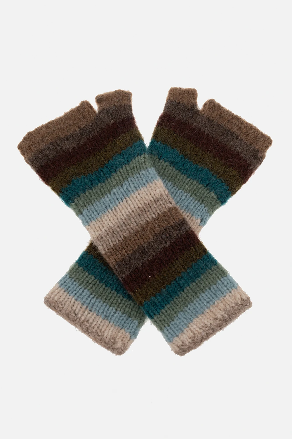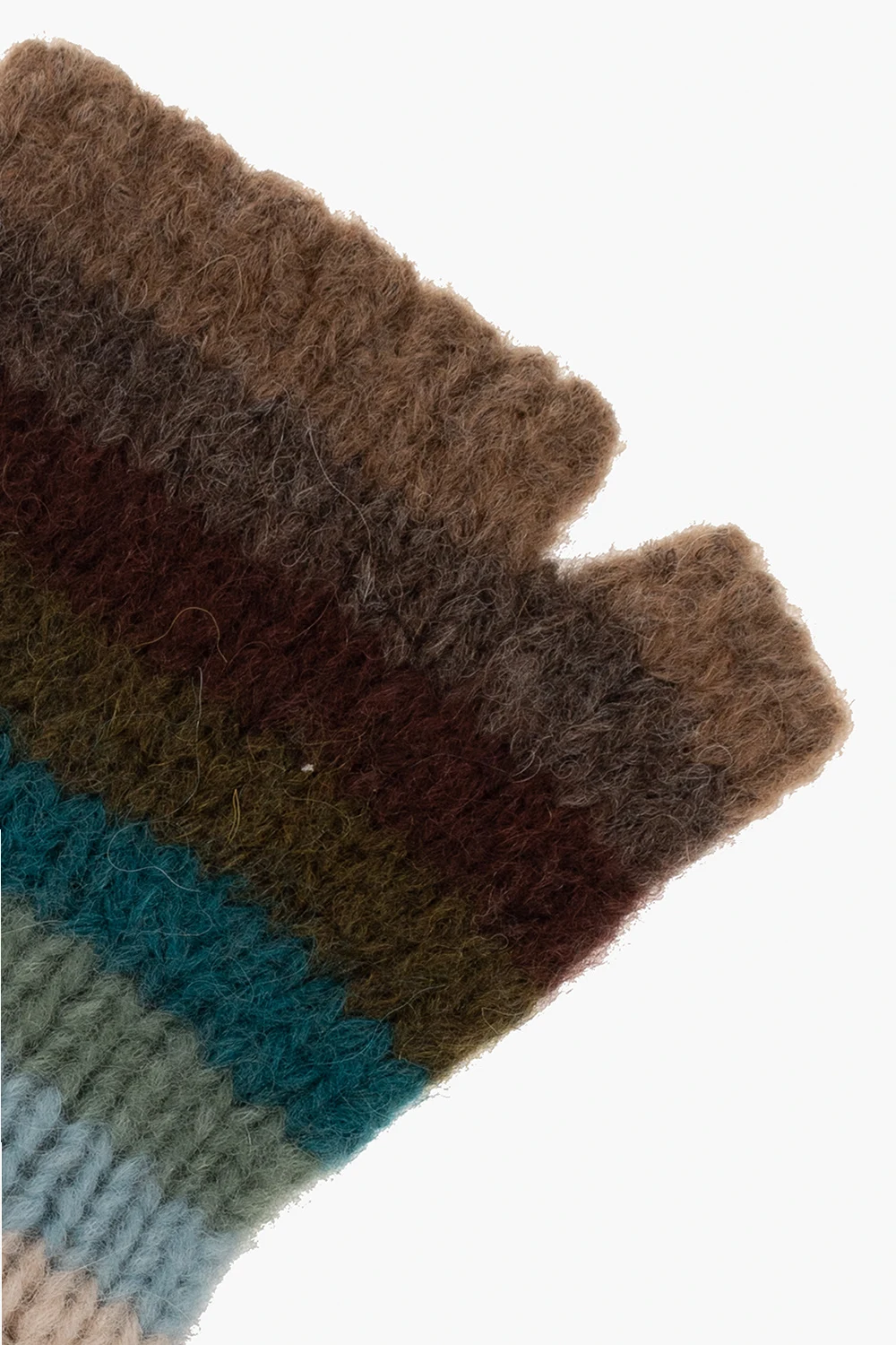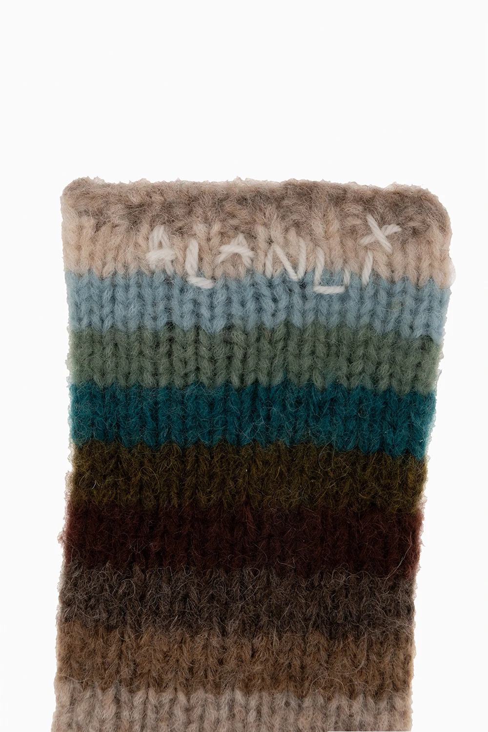 Multicoloured ‘Under The Nothern Sky’ fingerless gloves from Alanui. Crafted from a mohair and wool blend, this pair features a stripe pattern and red logo embroidery.