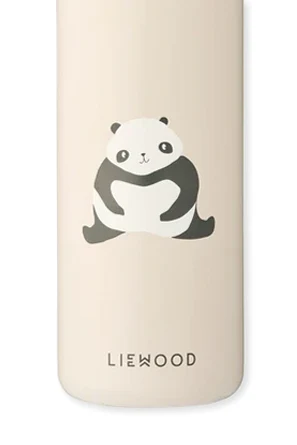 A whimsical, minimalist panda illustration adorns the front, lending charm while maintaining timeless appeal. The thoughtfully engineered screw-on lid integrates a secure, lift-up spout with an easy-grip handle, ensuring safe and effortless hydration on the go. Subtle designer branding from LIEWOOD graces the lower body, affirming exclusivity and impeccable taste.
