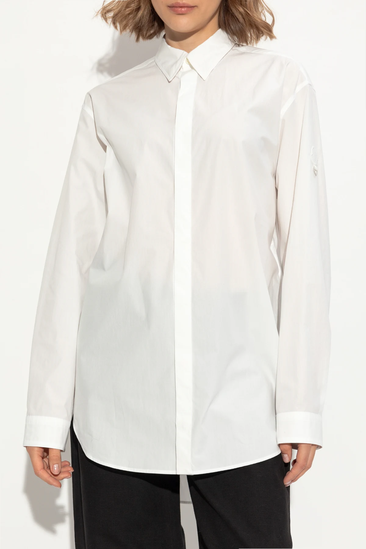 Introducing the 6 MONCLER WILLOW SMITH, a masterful synthesis of classic elegance and modern sophistication. This pristine white shirt with long sleeves is an exquisite piece from the exclusive Moncler Genius collection, designed to transcend the conventional boundaries of fashion. Crafted from the finest 100% cotton, this shirt features a classic straight cut with a standard collar and an extended, relaxed fit that exudes contemporary flair. The minimalist design is accentuated by the subtle designer logo patch on the sleeve and a distinctive metal ring detail, epitomizing the hallmark of luxury. The shirt\'s hidden button placket underscores a refined minimalistic aesthetic, ensuring versatility in any wardrobe. As part of the \'Art of Dreaming\' capsule, it draws inspiration from late \'90s streetwear, conceived in collaboration with Grammy Award-winning artist Alicia Keys. Why Choose This Product? Exclusive design by Moncler Genius Premium quality 100% cotton material Timeless elegance with a modern twist Unique designer details for added exclusivity Inspired by dynamic New York streetwear