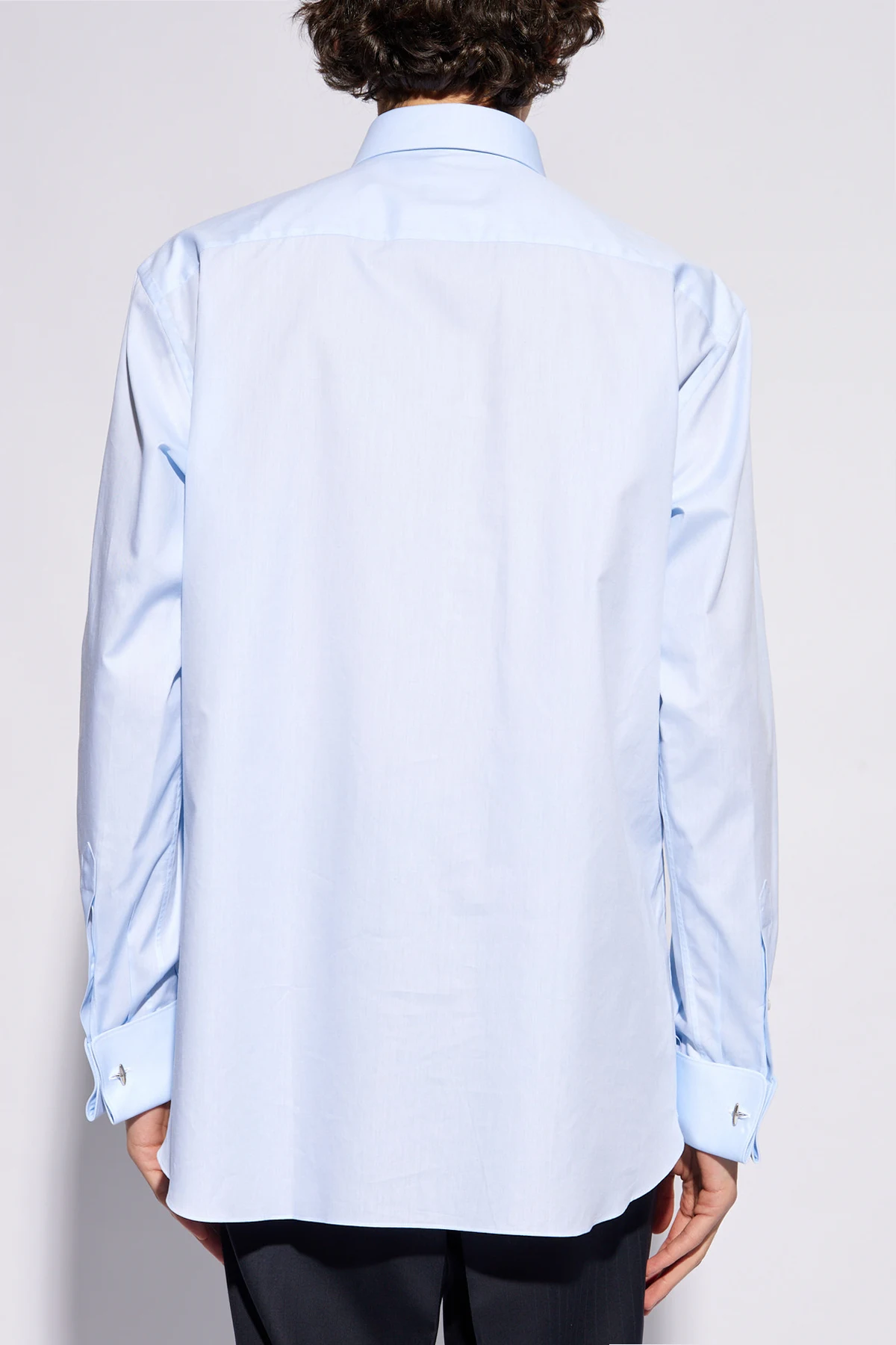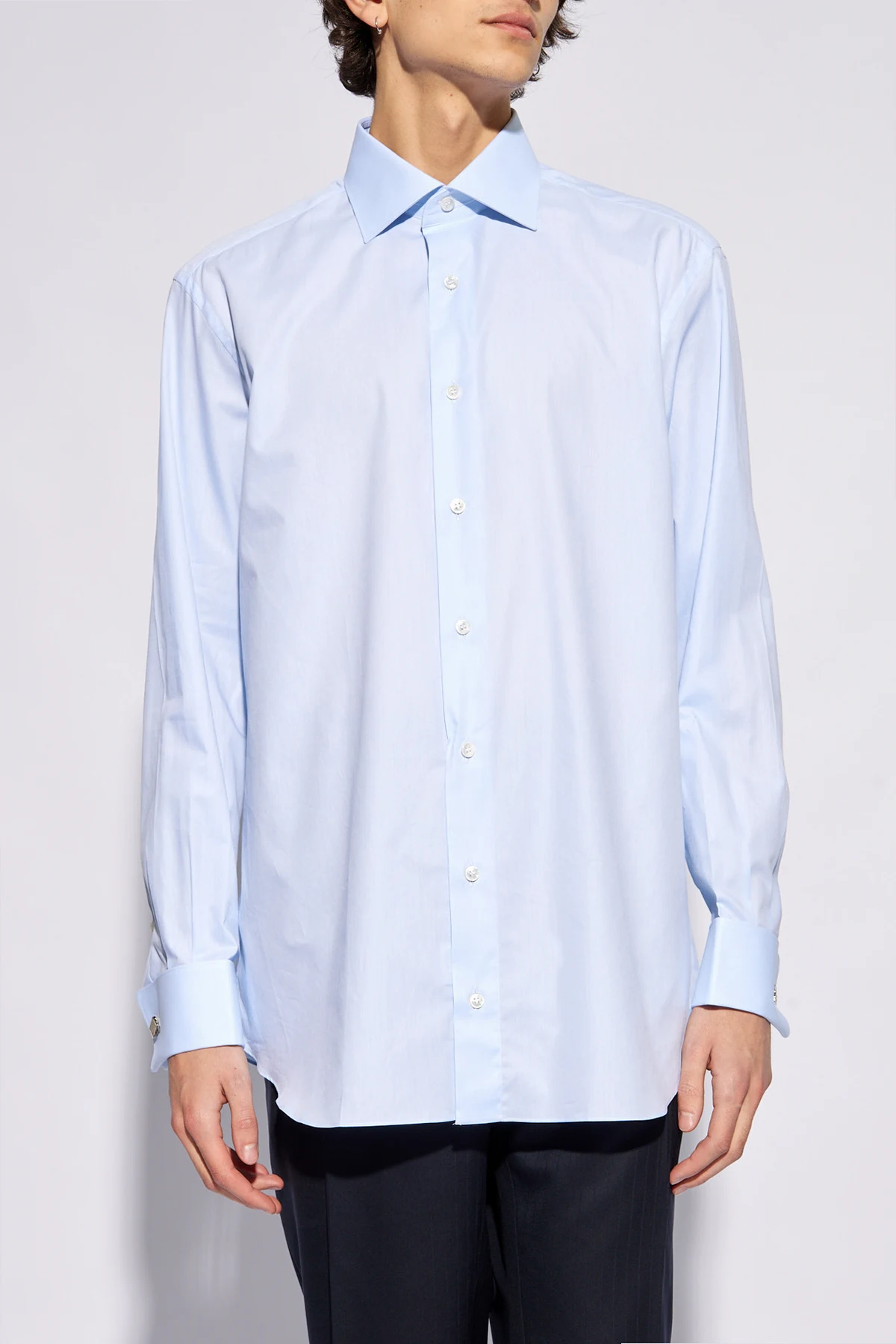 Classic shirt in light blue from Brioni. Made of cotton, this style features button fastenings and long sleeves with cuff link closures on the cuffs.