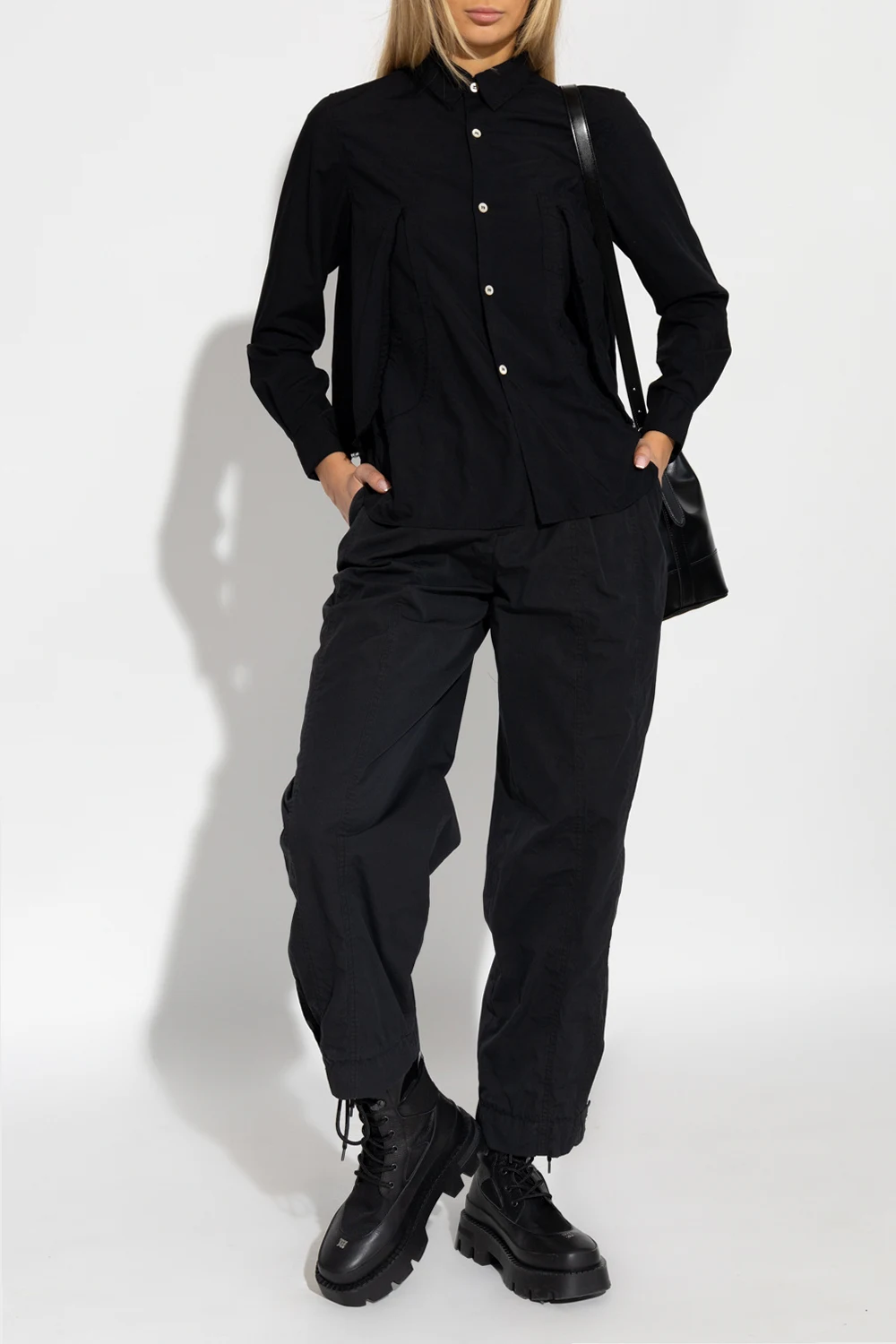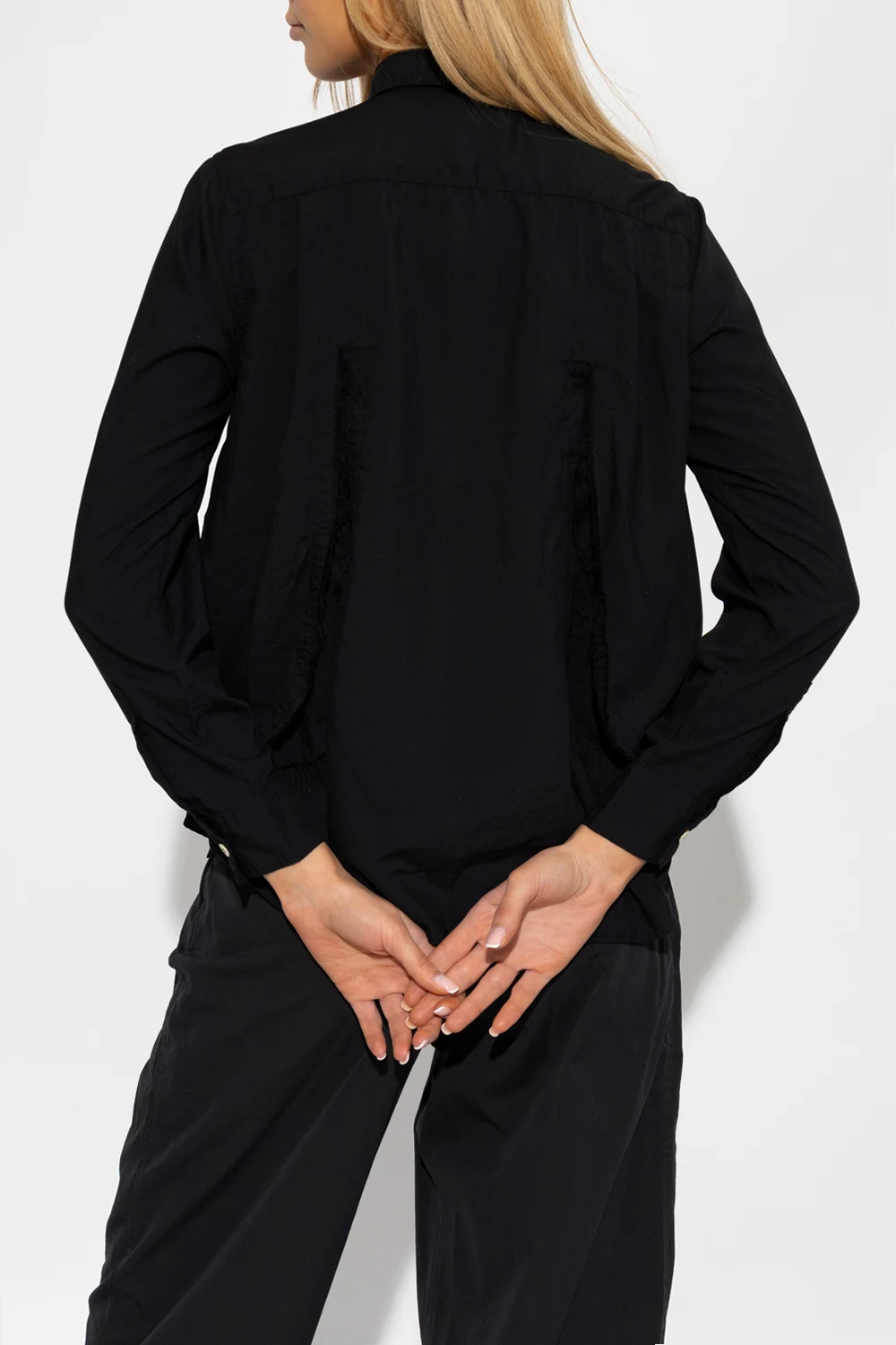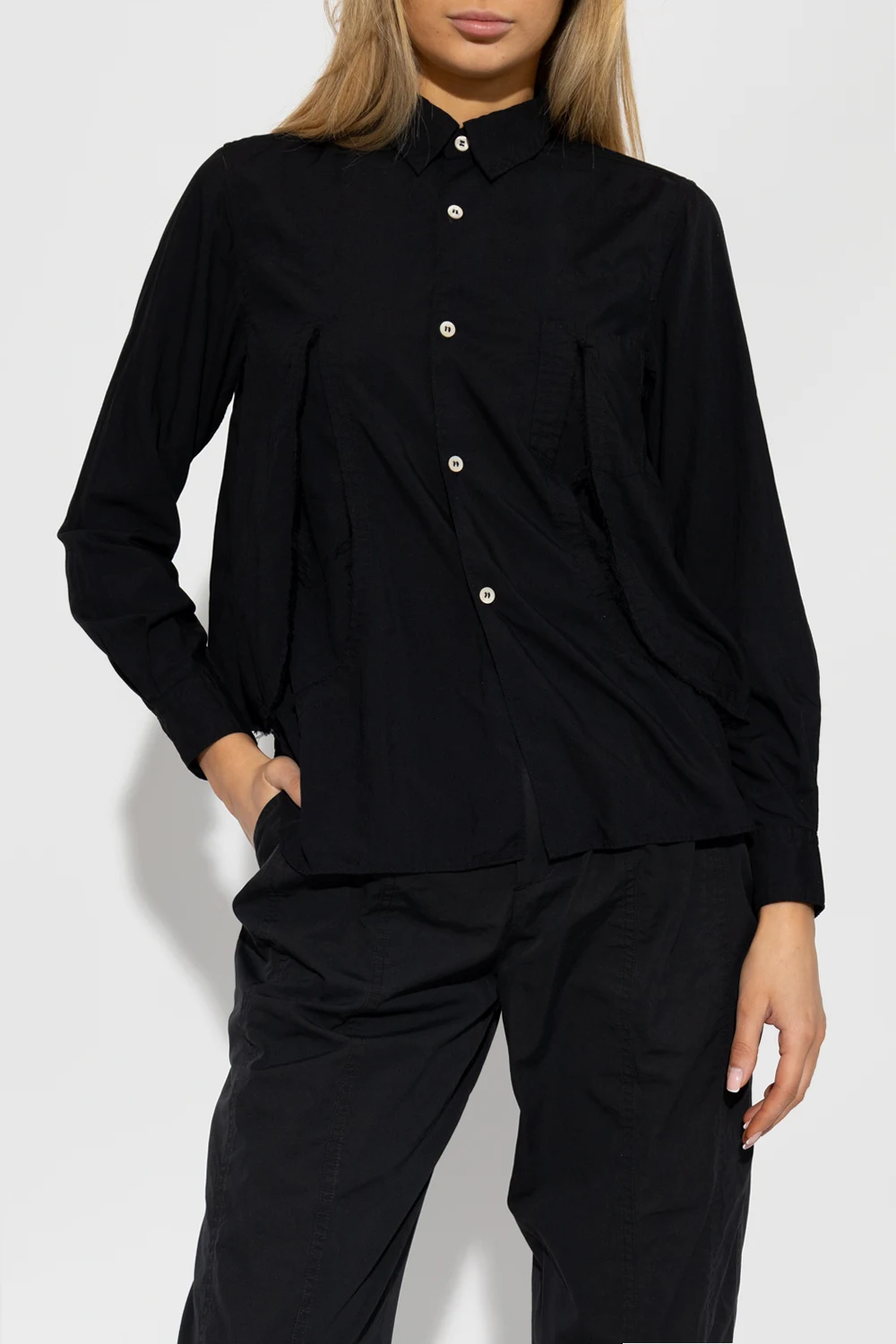 Black shirt with a classic collar from CDG by Comme Des Garçons. With a classic fit with raw cut-outs for added volume, this style features button fastenings, a slip chest pocket and long sleeves with button cuffs.