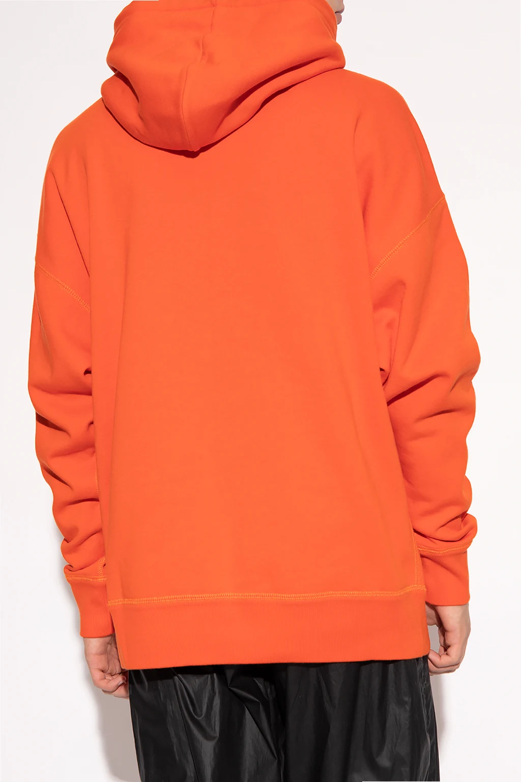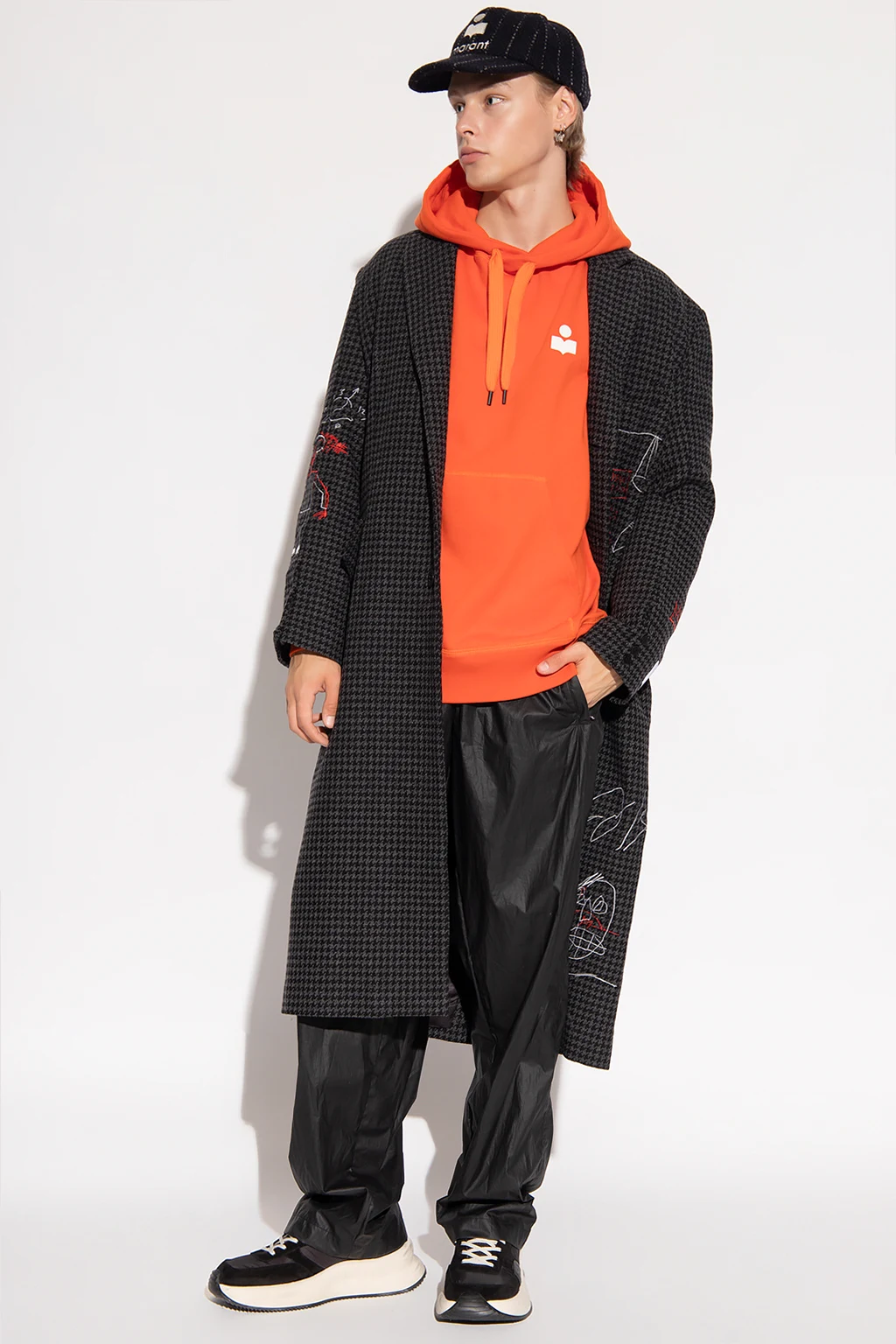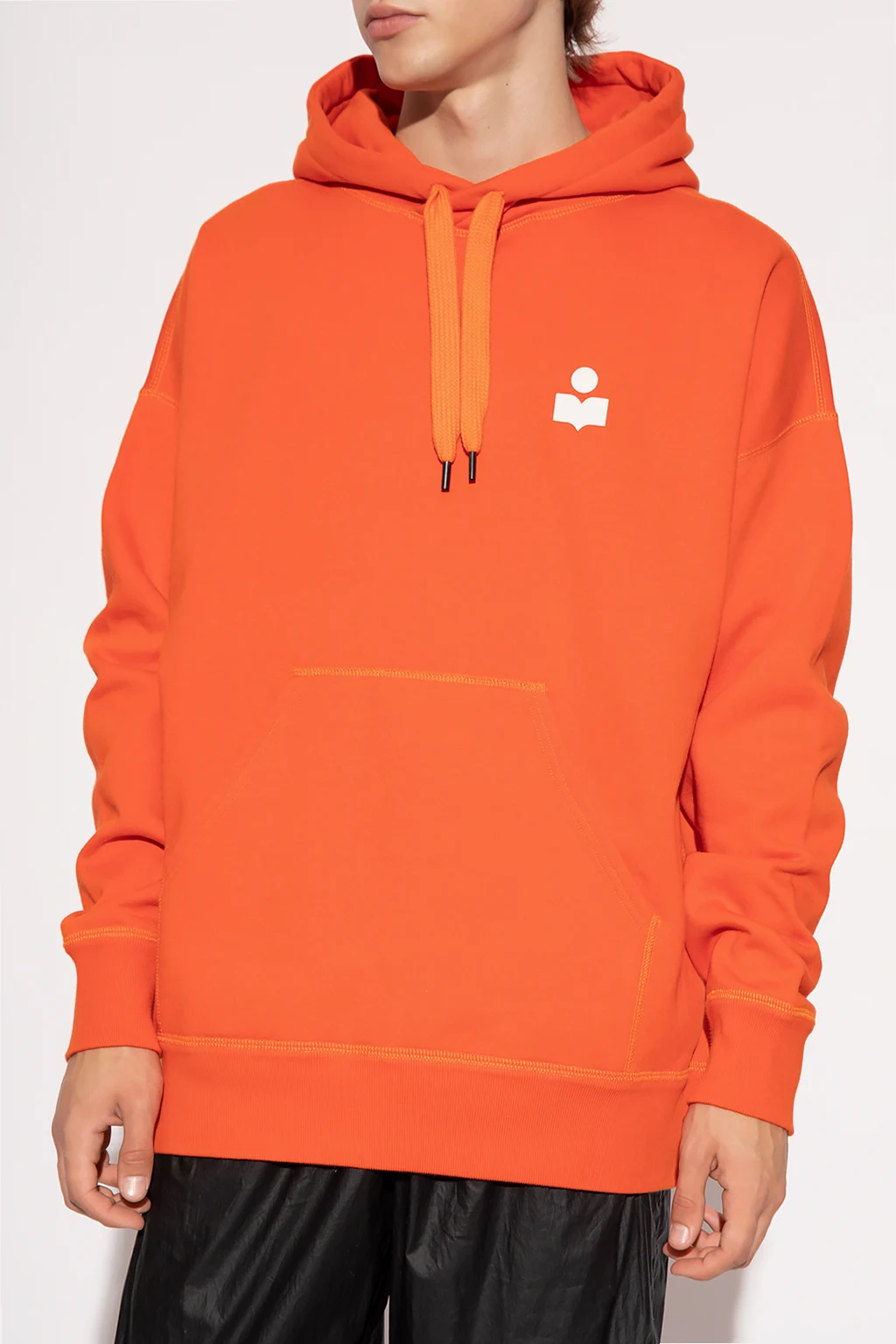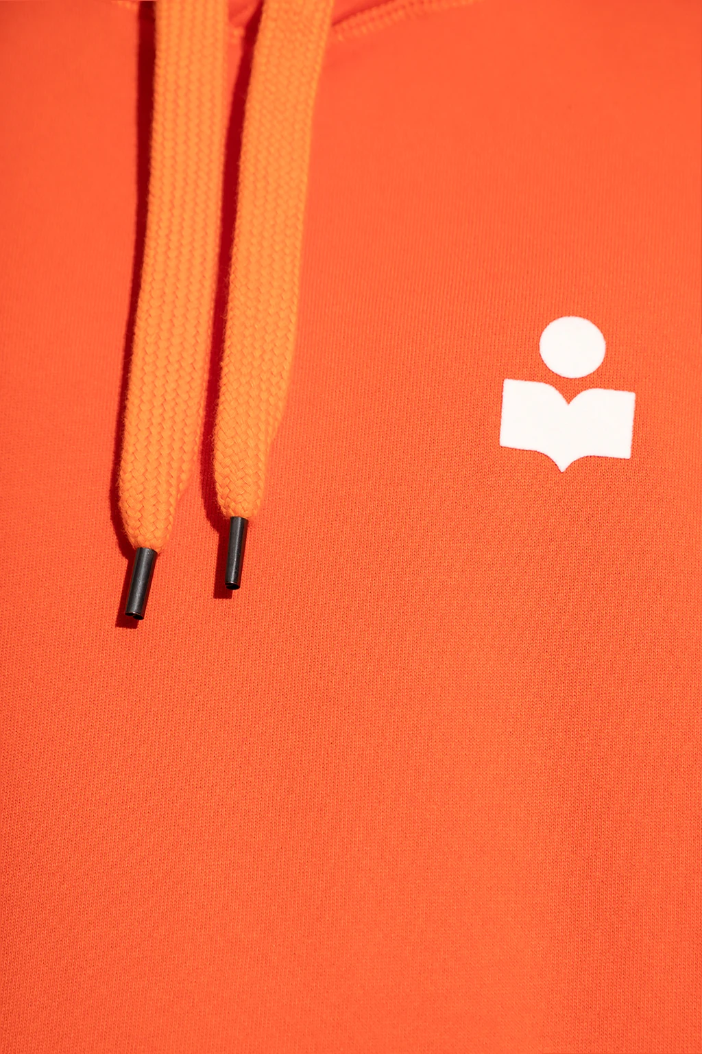 Orange ‘Malek’ sweatshirt with a drawcord-adjustable hood from Isabel Marant. Crafted from cotton jersey, this style features a velvet-flocked logo print on the front, a kangaroo pocket, long sleeves and an elasticated bottom hem and cuffs.