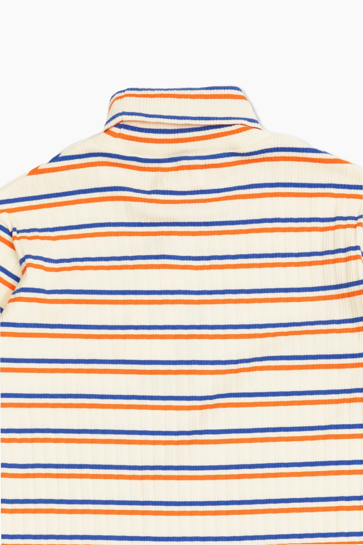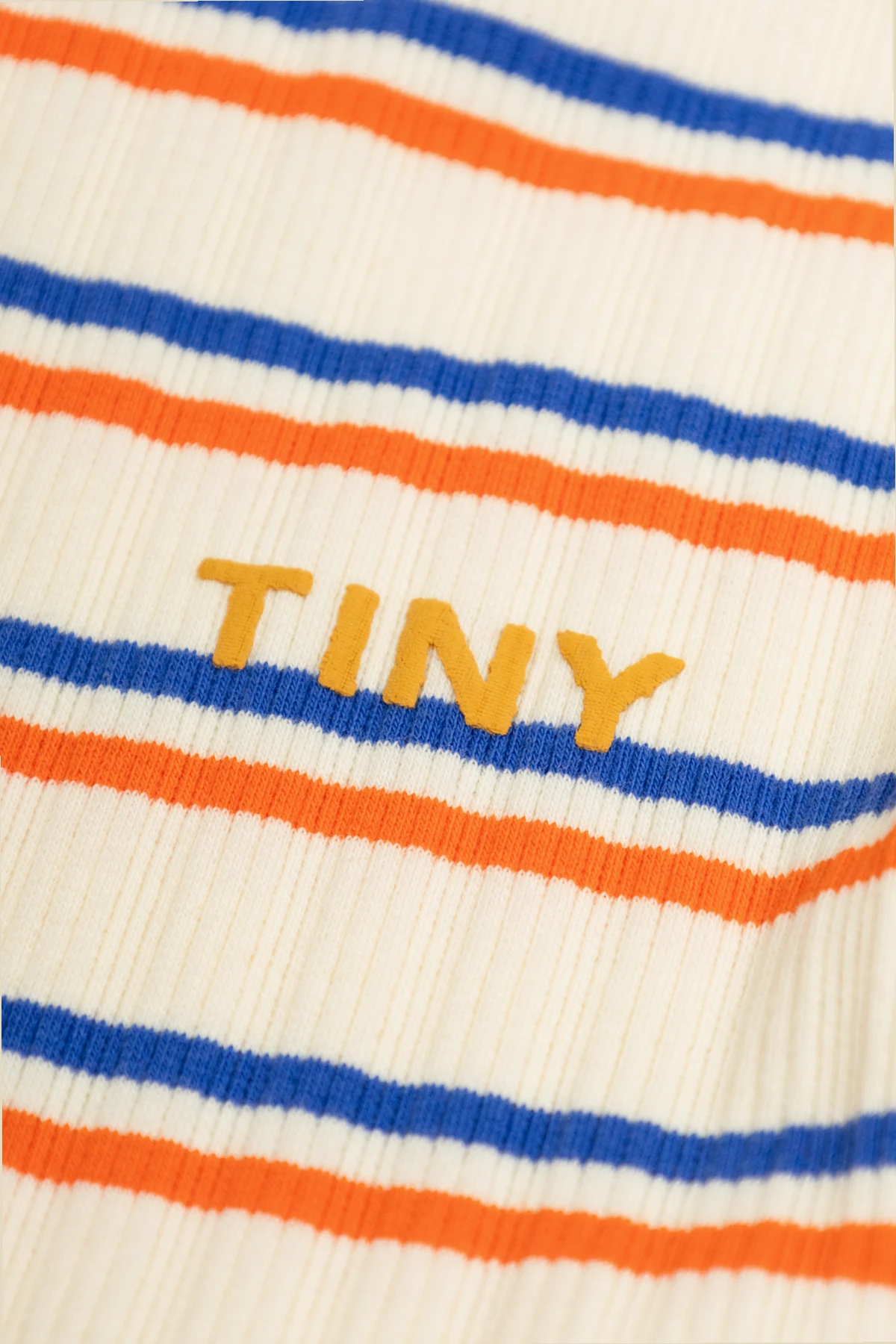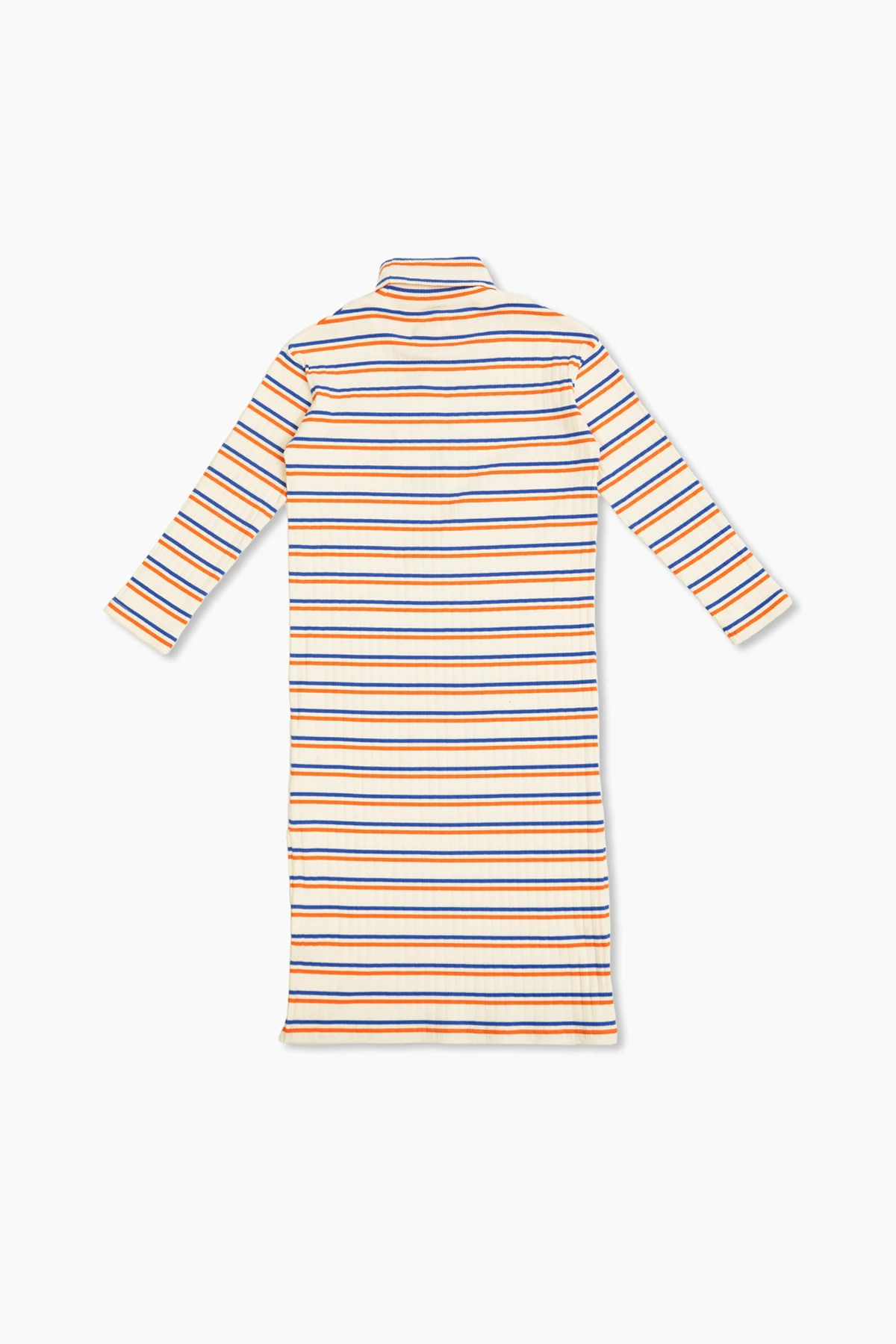 Tiny Cottons presents an exquisite piece from their exclusive children\'s collection: the Turtleneck Dress. This classic dress, crafted with a meticulous blend of cotton and elastane, offers both elegance and comfort, making it a quintessential addition to any young fashionista\'s wardrobe. The dress showcases a simple yet sophisticated silhouette, with its knee-length hem, long sleeves, and a refined turtleneck. Its creamy base is adorned with evenly spaced horizontal stripes in vibrant blue and orange, adding a playful yet chic touch. The left chest features the brand\'s signature \"TINY\" logo in a striking mustard hue, subtly accentuating its exclusive charm. Why Choose This Product? Elegant and timeless design suitable for various occasions. Soft and flexible material ensures all-day comfort. Perfect for cooler days thanks to its cozy turtleneck. Designed for girls aged 4 to 14, offering versatility and practicality. A unique blend of classic style and modern details.