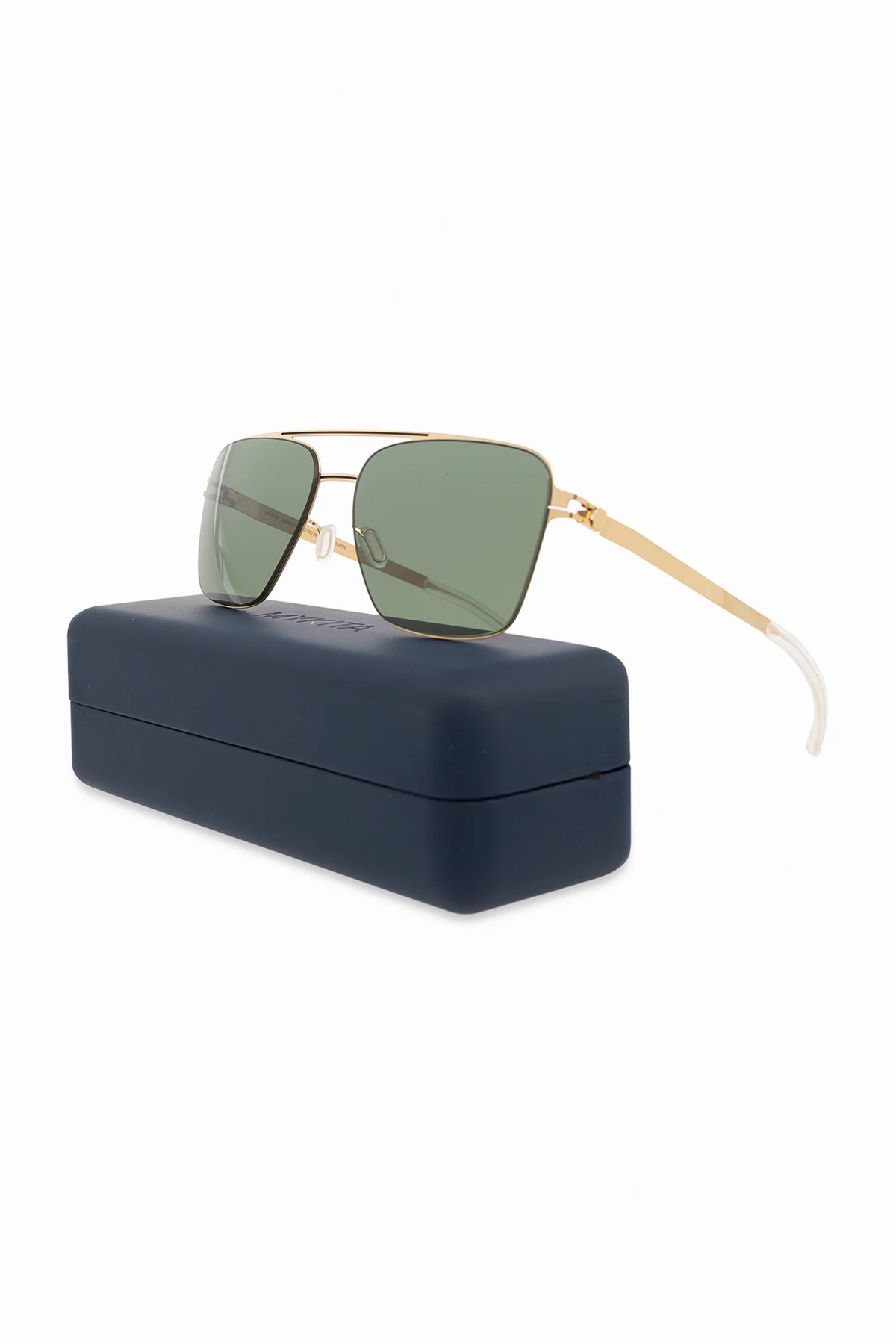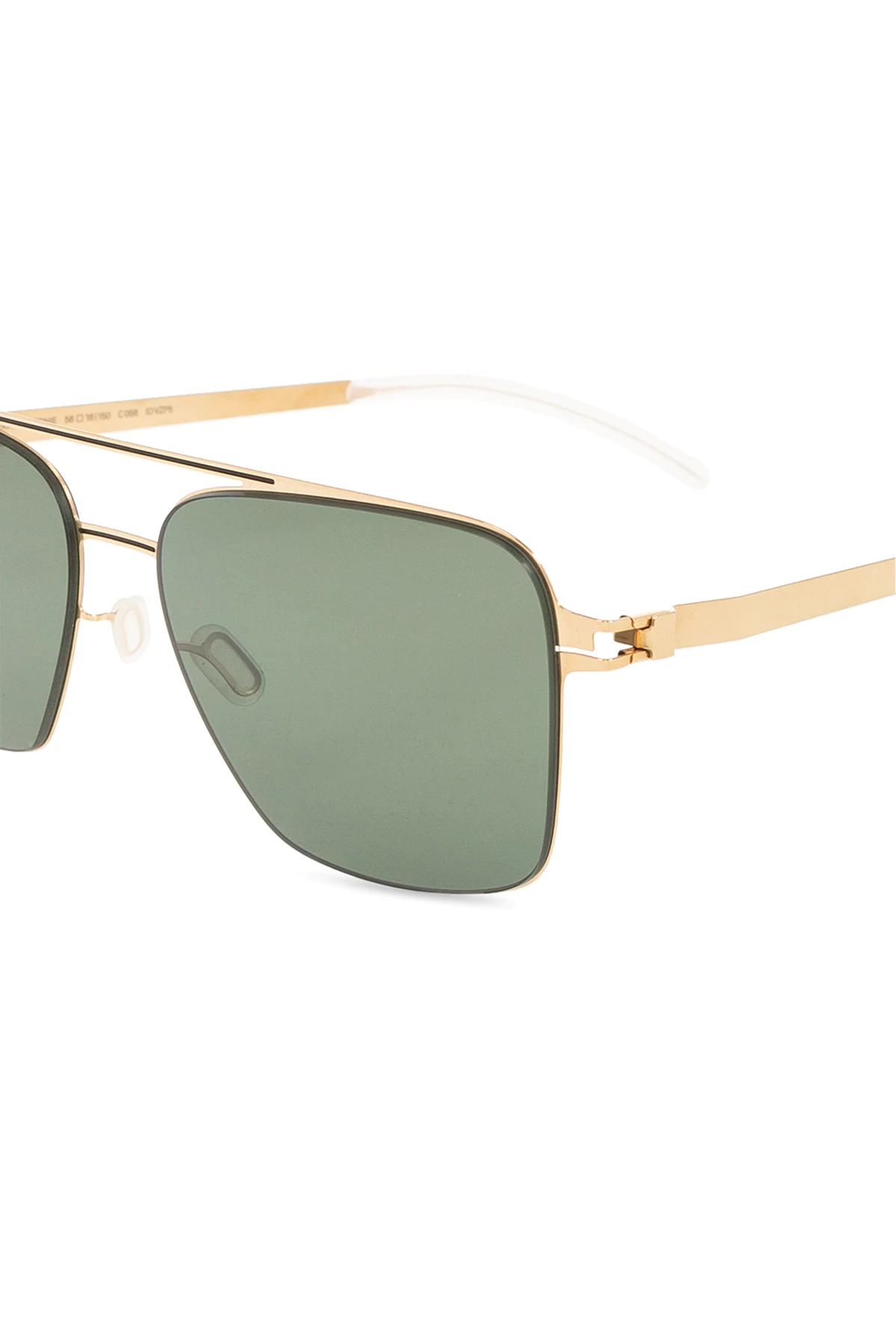 Gold-tone ‘Bernie’ sunglasses from Mykita. Made from light stainless steel, this aviator pair features patented spiral hinges and green POLARIZED PRO lenses, which deliver high definition colour contrast in a 9-layer lens with 100% protection against UVA/UVB rays. Handmade in Berlin. Case included.