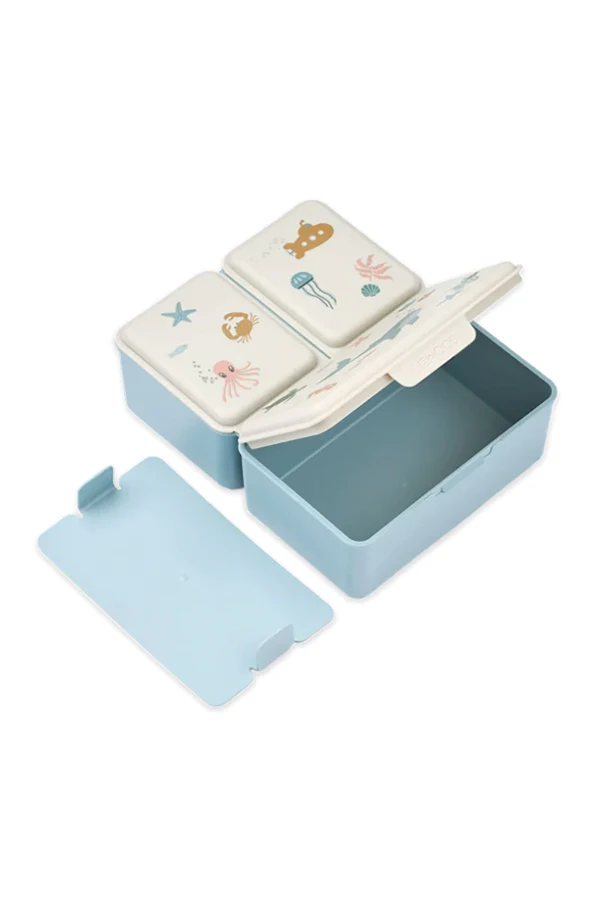 Immerse your child’s lunchtime in refined elegance with the Driss Lunchbox by Liewood. This exclusive creation features three rectangular, segmental containers—two smaller and one larger—neatly arranged side by side beneath a unified lid, delivering both compactness and exceptional functionality.