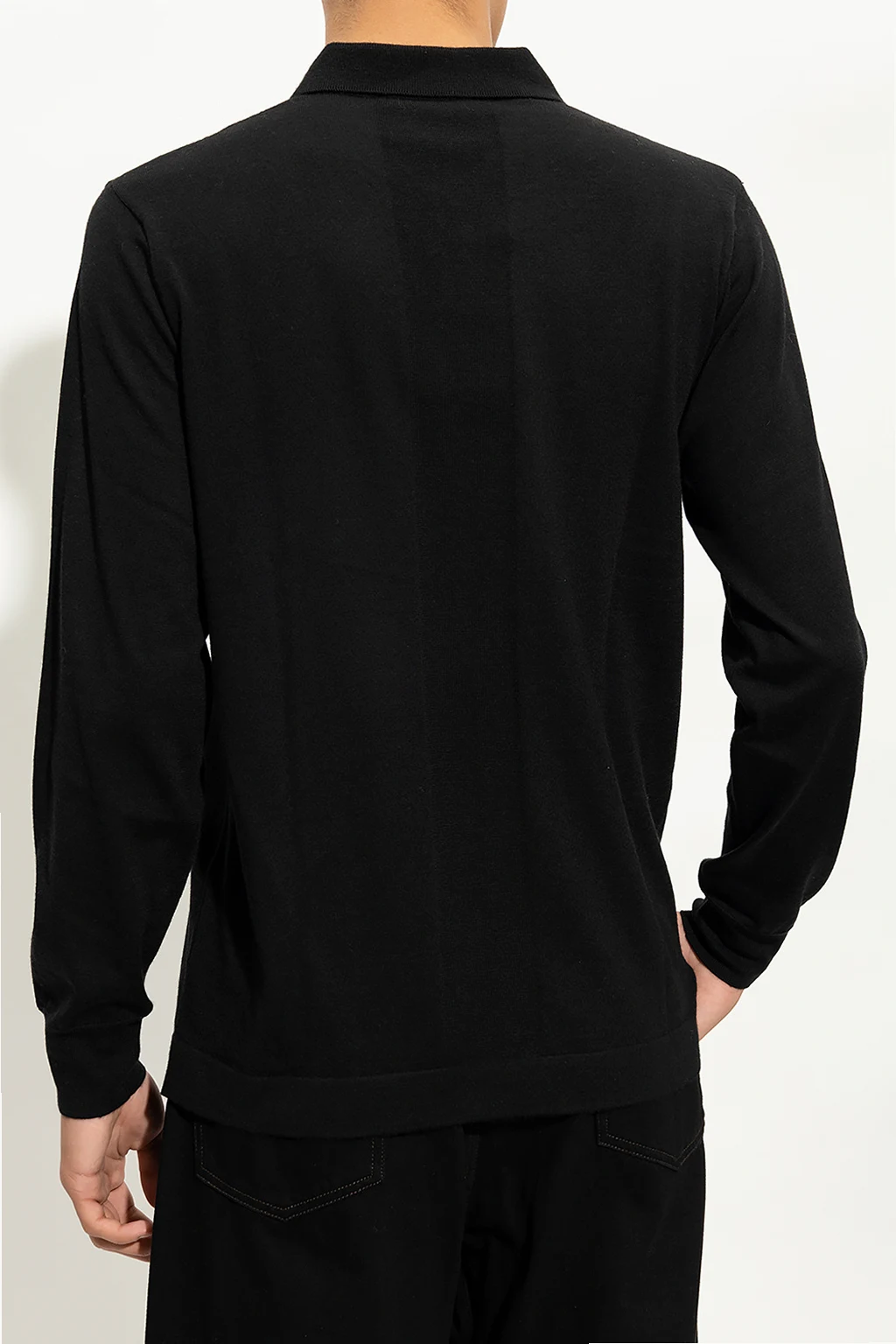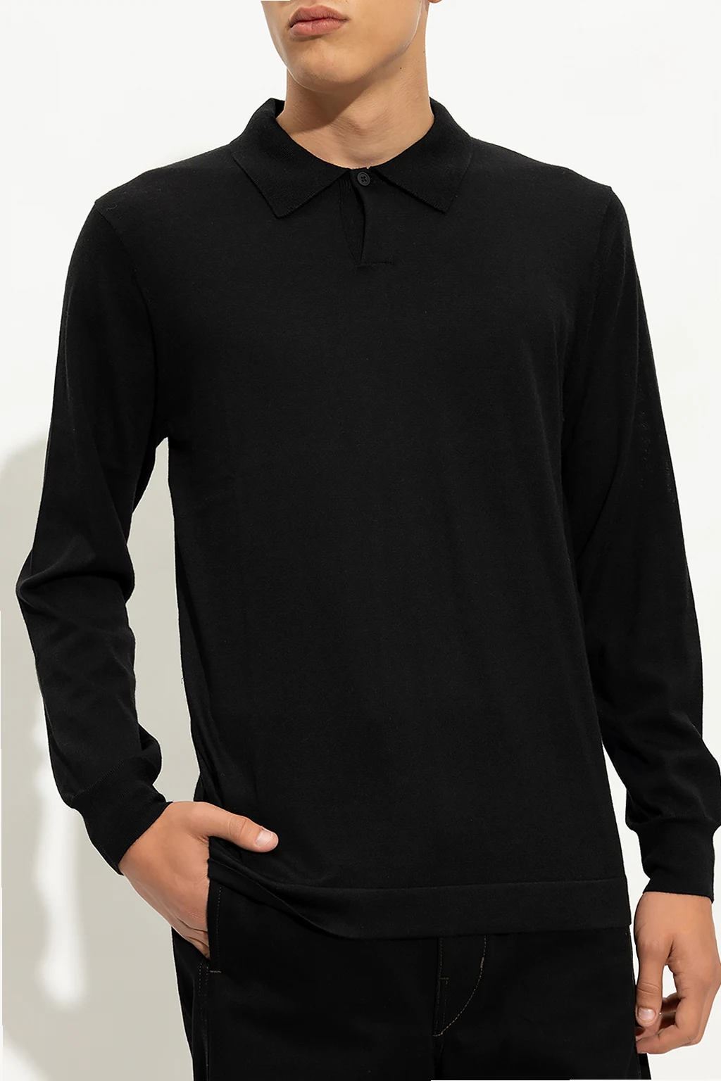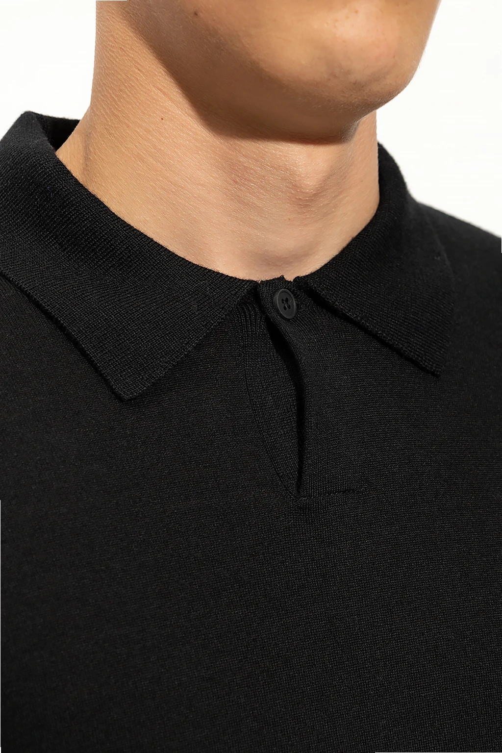 Black polo shirt from Norse Projects ARKTISK. Knitted in a blend of extra fine merino wool with innovative 37.5® technology, this style features a collar with a button placket and long sleeves.