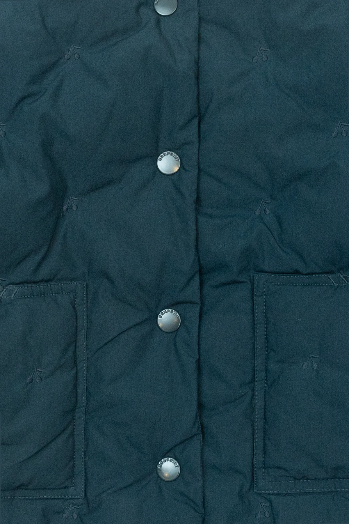 Dark green ‘Baila’ insulated jacket from Bonpoint. Made from cotton, this style fastens with snaps and showcases a round neck, logo embroidery, two slip pockets and long sleeves.